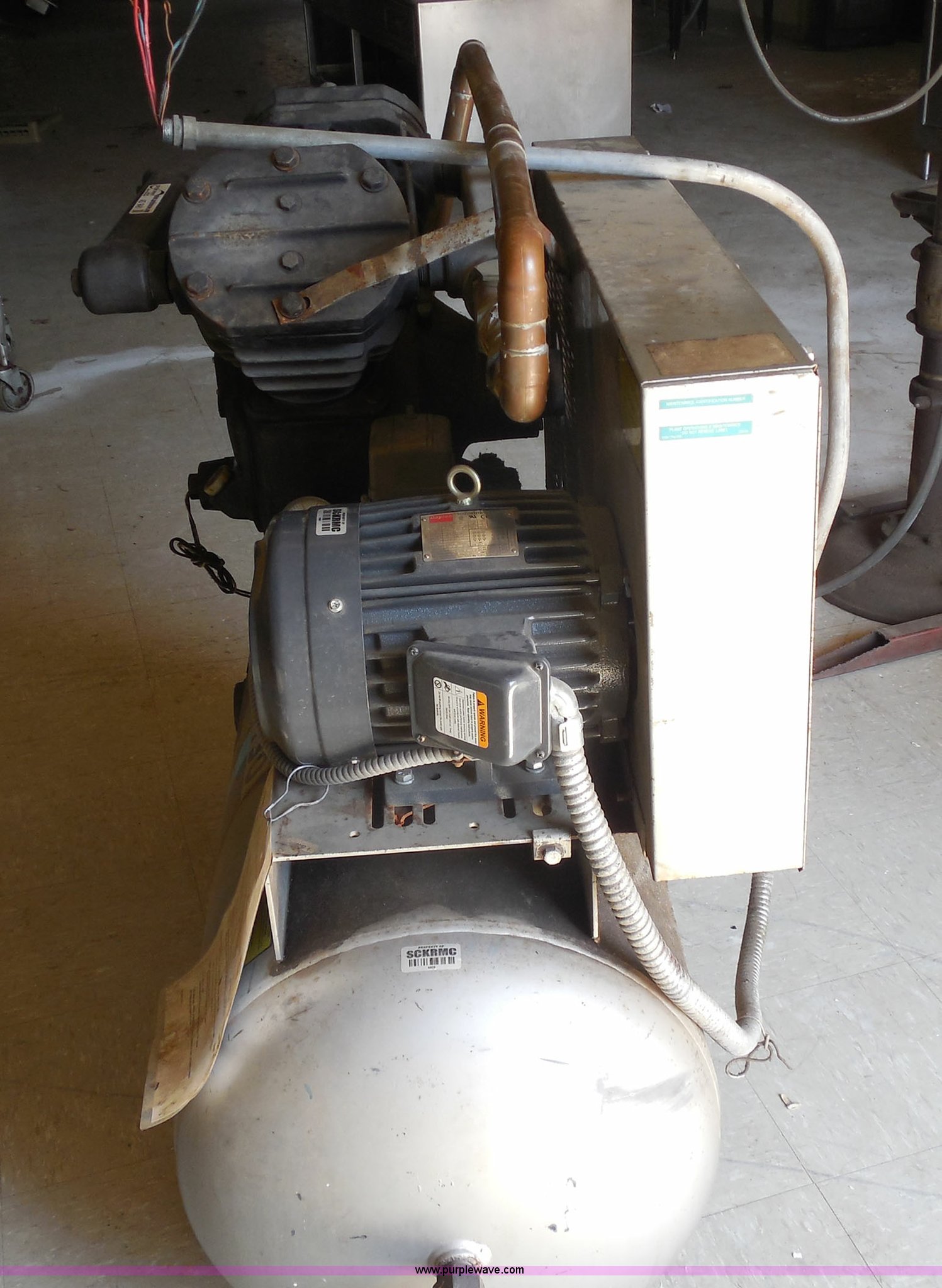 Purple Wave is selling a used Air Compressor in Kansas. This item is a Ingersoll Rand T30 air compressor with the following: Model V255, Dayton 5 HP electric motor, Model 3KV80G, 3.7 kW, 60 Hz, 208-230/460V, Serial 4032268
