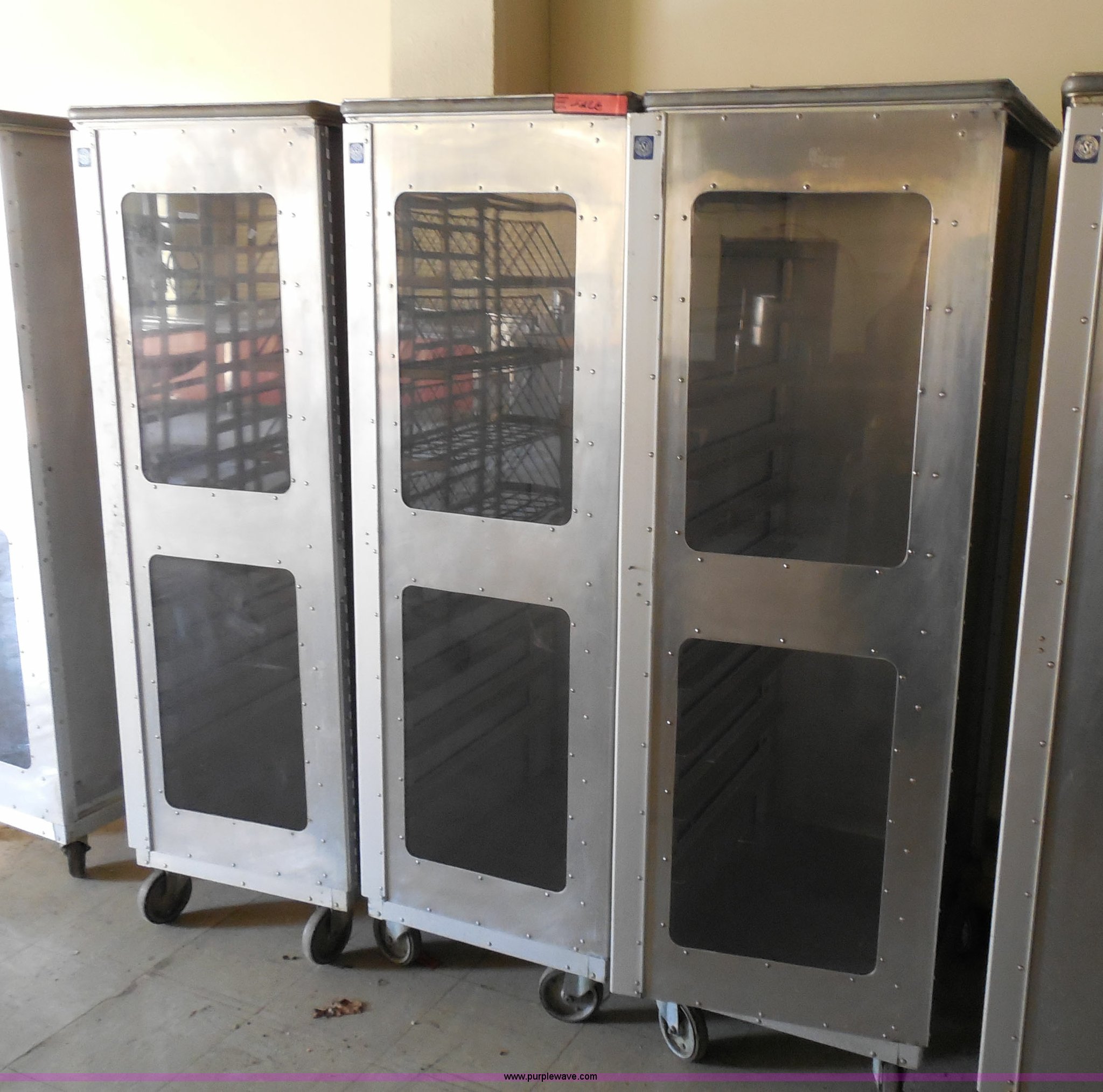 Purple Wave is selling a used Restaurant Equip. in Kansas. This item is a (5) Precision metal food storage carts with the following: (4) 29" x 22" x 64", Plastic doors, One without doors, Casters