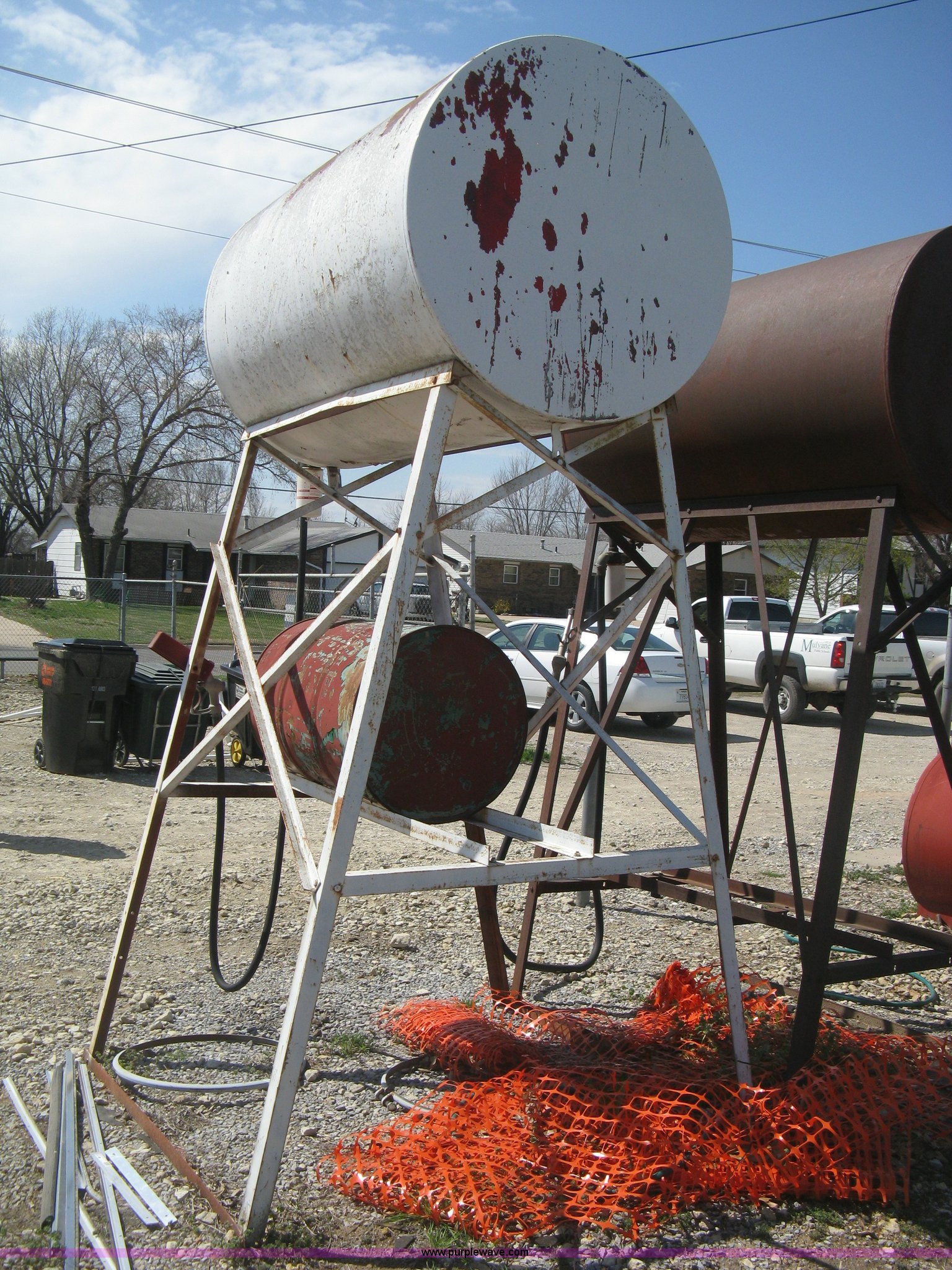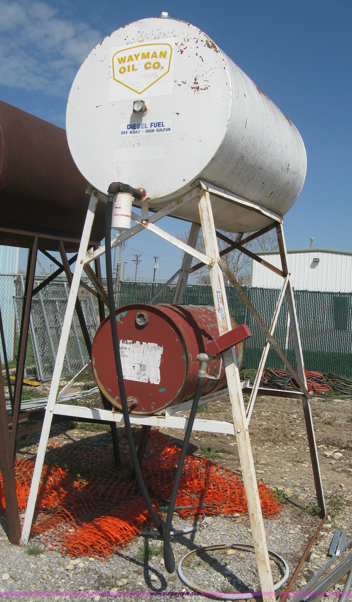 Gravity flow fuel tank. Approximately 300 gallon capacity, Fill hose and nozzle, Stand, Previously used for diesel, Oil barrel is not included. Shipping quotes available. USD 263. 628 E Mulvane. Mulvane, KS 67110