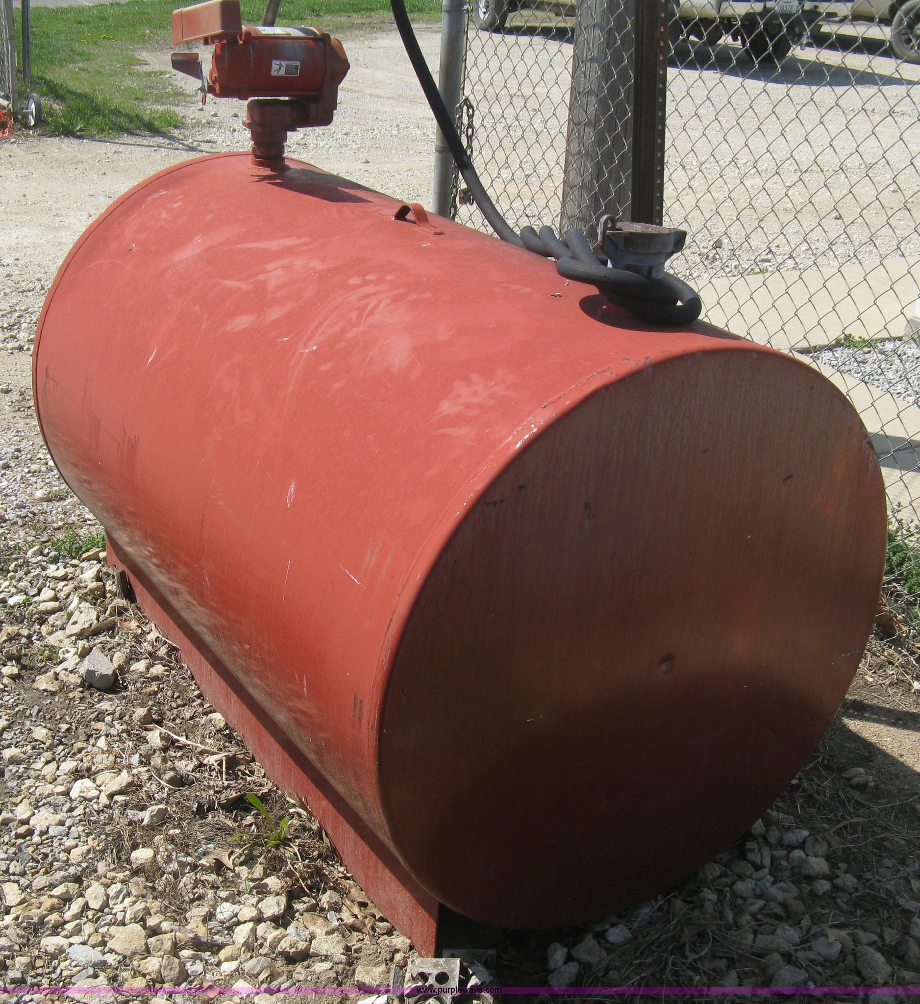 Purple Wave is selling a used Fuel and Lube in Kansas. This item is a Skid mounted fuel tank with the following: Tuthill FR700 electric fuel pump, 1/3 HP single phase electric motor, Approximately 300 gallon capacity, Fill hose and nozzle, Not wired, Previously used for unleaded fuel
