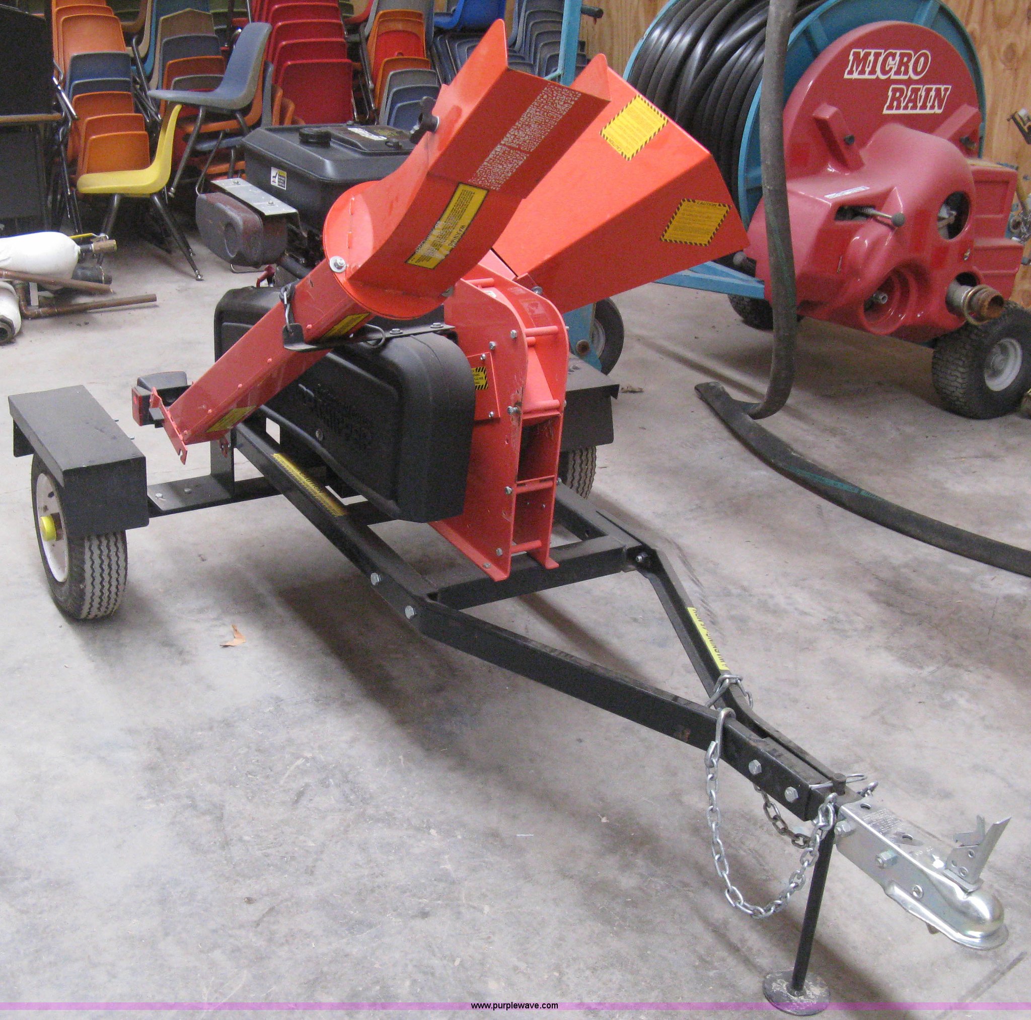 Purple Wave is selling a used Wood Chipper or Stump Grinder in Kansas. This item is a DR chipper with the following: Vanguard V-twin 18 HP gas engine, Key start, (2) feeder housings, Trailer mounted, 2" ball, Tail lights, 4.80/4.00-8 tires