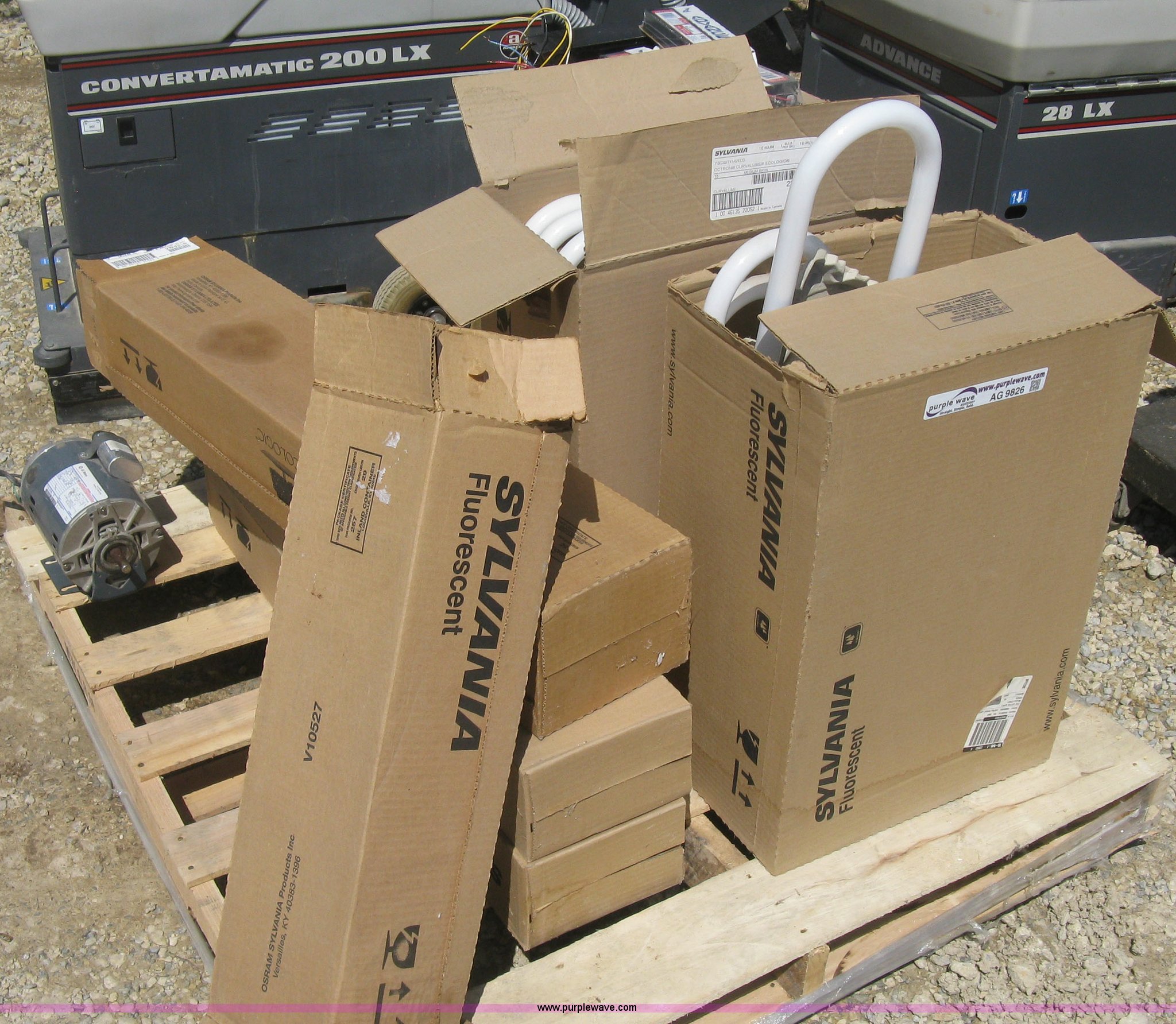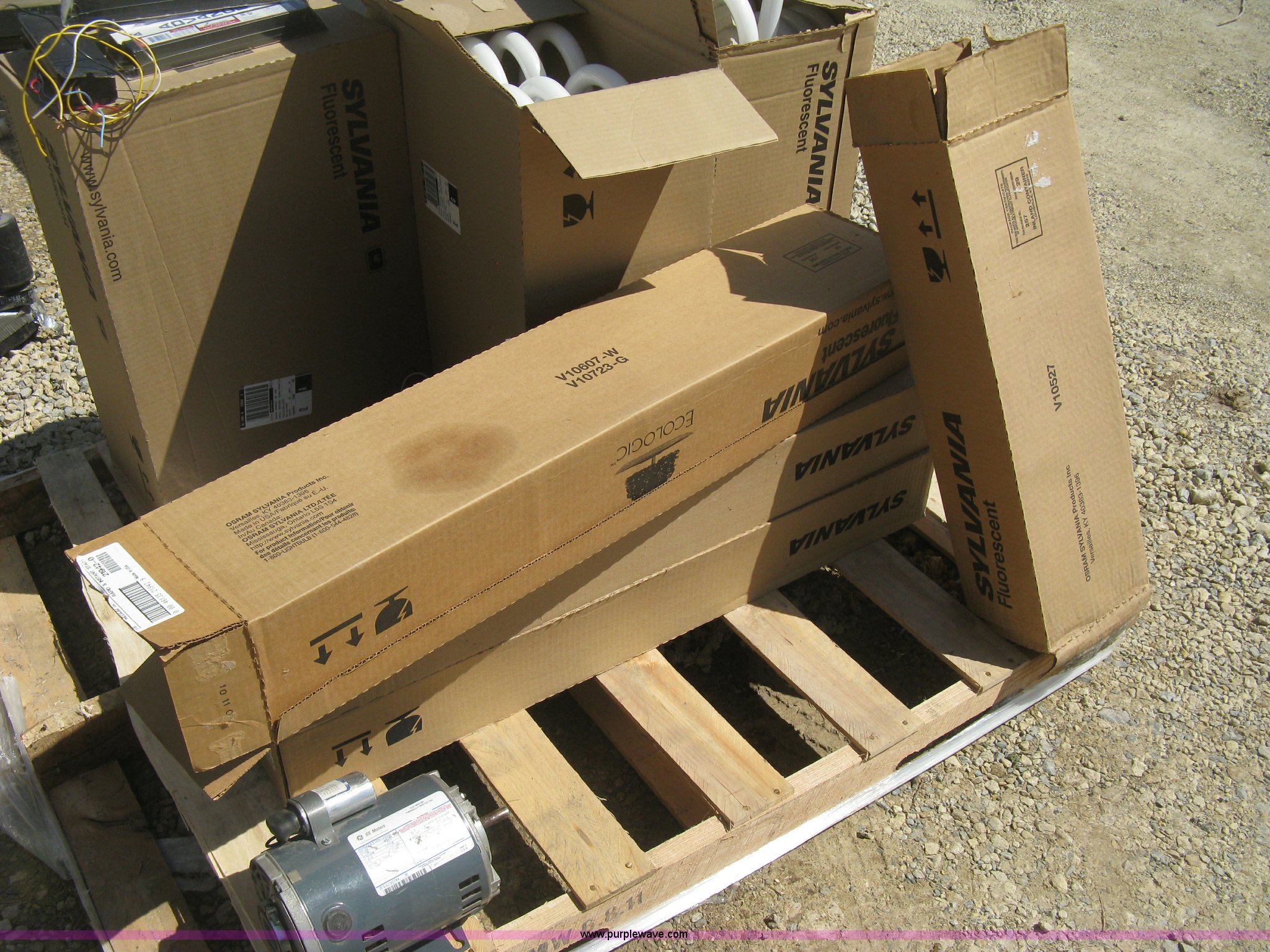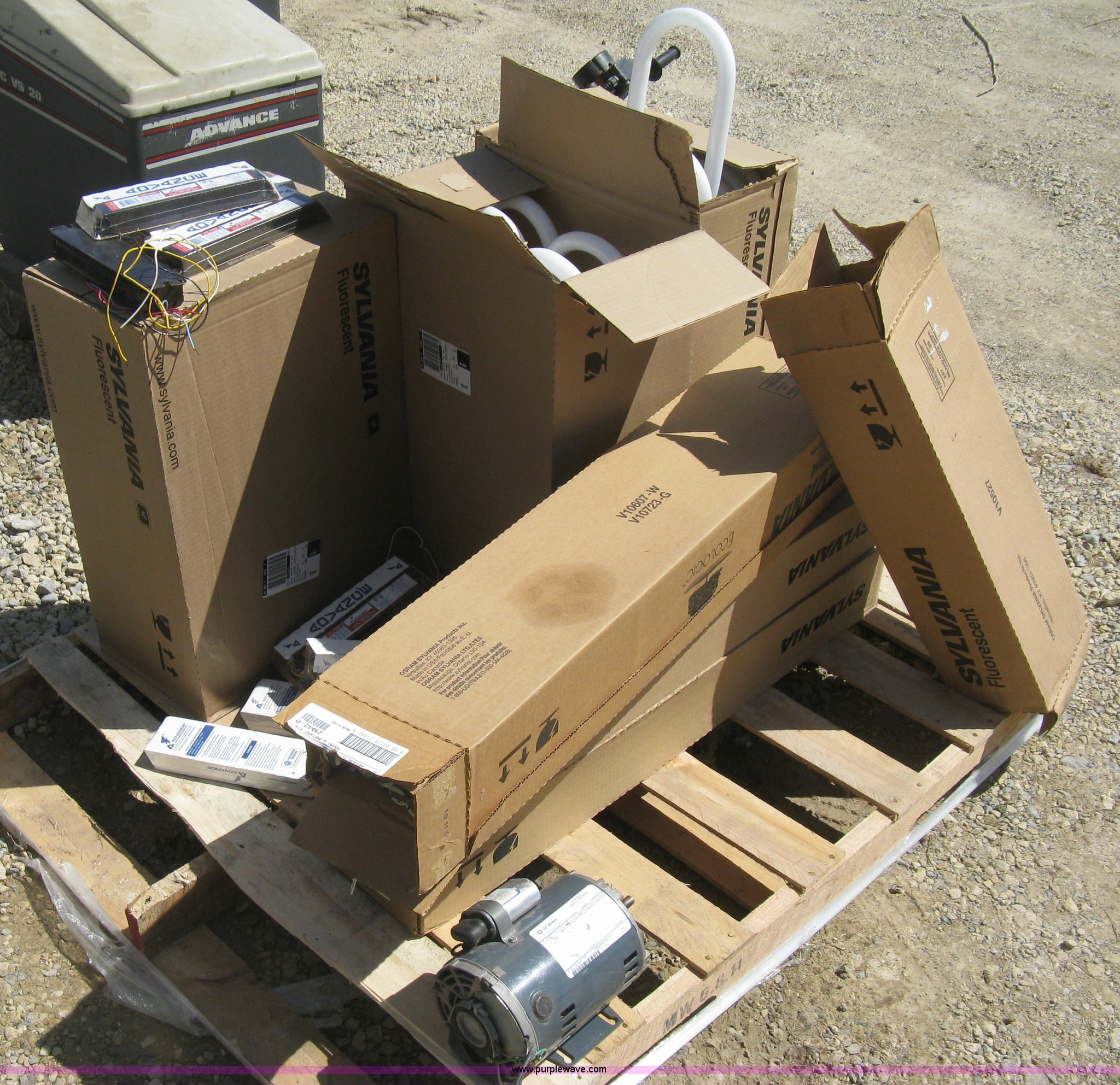 Purple Wave is selling a used Home Improvement in Kansas. This item is a Commercial lighting supplies with the following: Ballast, Unused, Assorted fluorescent light fixtures, Unused, GE 1/4 HP electric motor