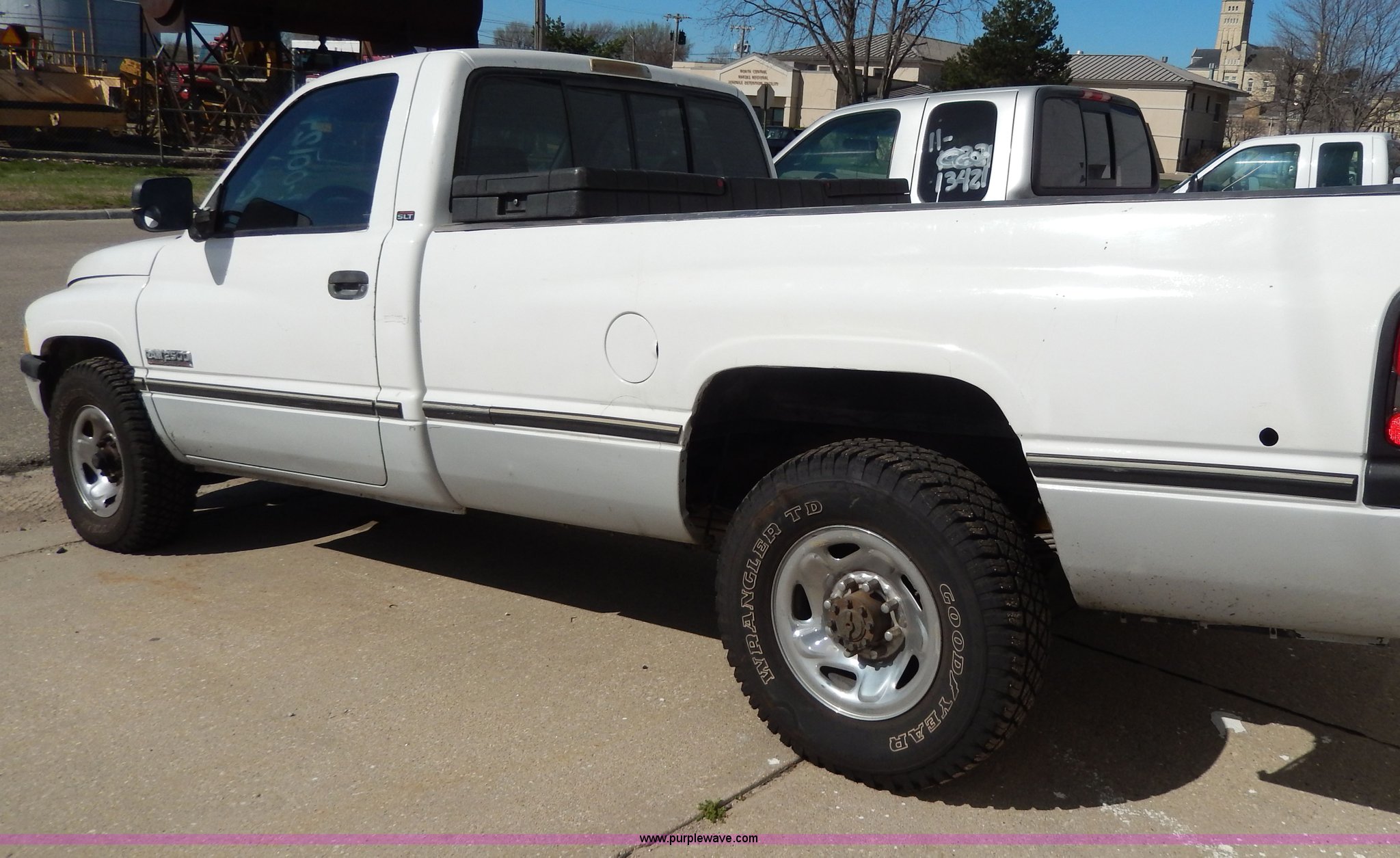 Purple Wave is selling a used Passenger Vehicle in Kansas. This item is a 1995 Dodge Ram 2500 HD Laramie SLT pickup truck with the following: 203,580 miles on odometer, Cummins 5.9L L6 OHV 20V turbo diesel engine, Automatic transmission, AC and heat, Tilt, Cruise, AM/FM, Power windows and locks, Cloth interior, Long bed, Toolbox, Rear sliding window, 265/75R16 tires, Interior/exterior cosmetic damage, Dents and scratches, Headliner needs repaired, Dead battery
