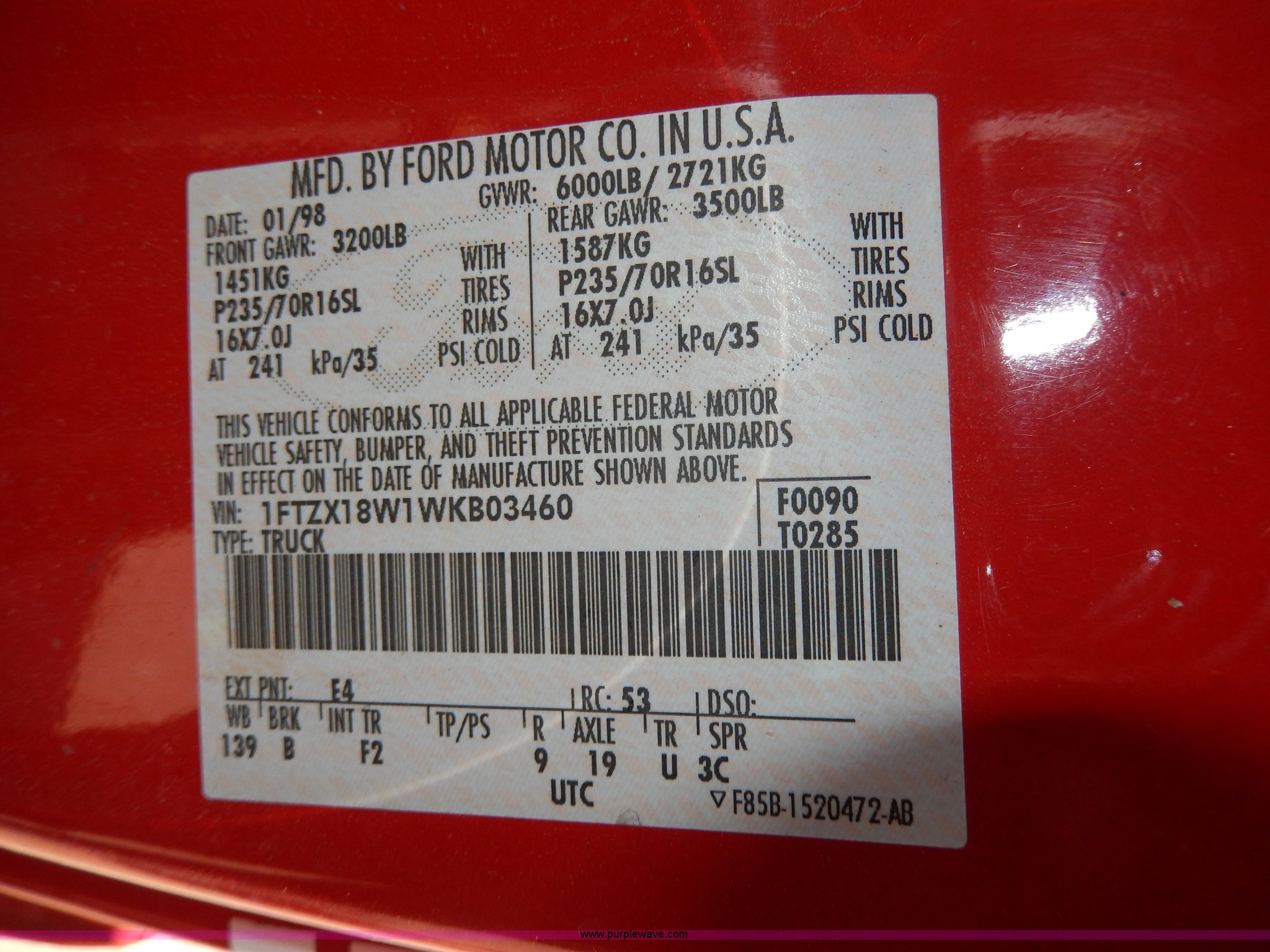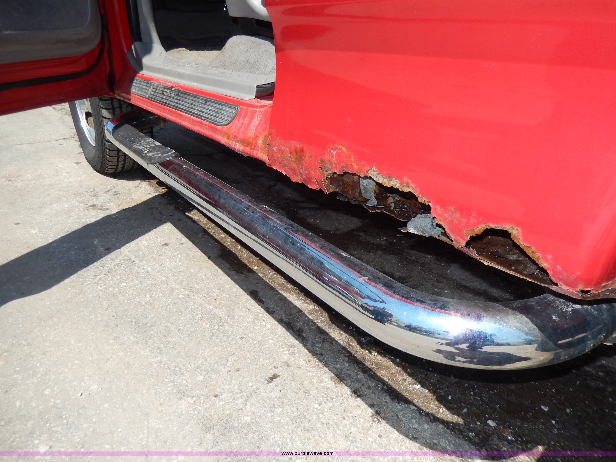 Purple Wave is selling a used Passenger Vehicle in Kansas. This item is a 1998 Ford F150 XLT SuperCab pickup truck with the following: 104,872 miles on odometer, 4.6L V8 SOHC 16V gas engine, Automatic transmission, Four wheel drive, AC and heat, Tilt, AM/FM, Power windows, locks, and mirrors, Cloth interior, Westin step rails, Front tow hooks, Bed mats, Receiver hitch, Trailer wiring, 255/70R16 tires, Heat coil leaks, Body rust