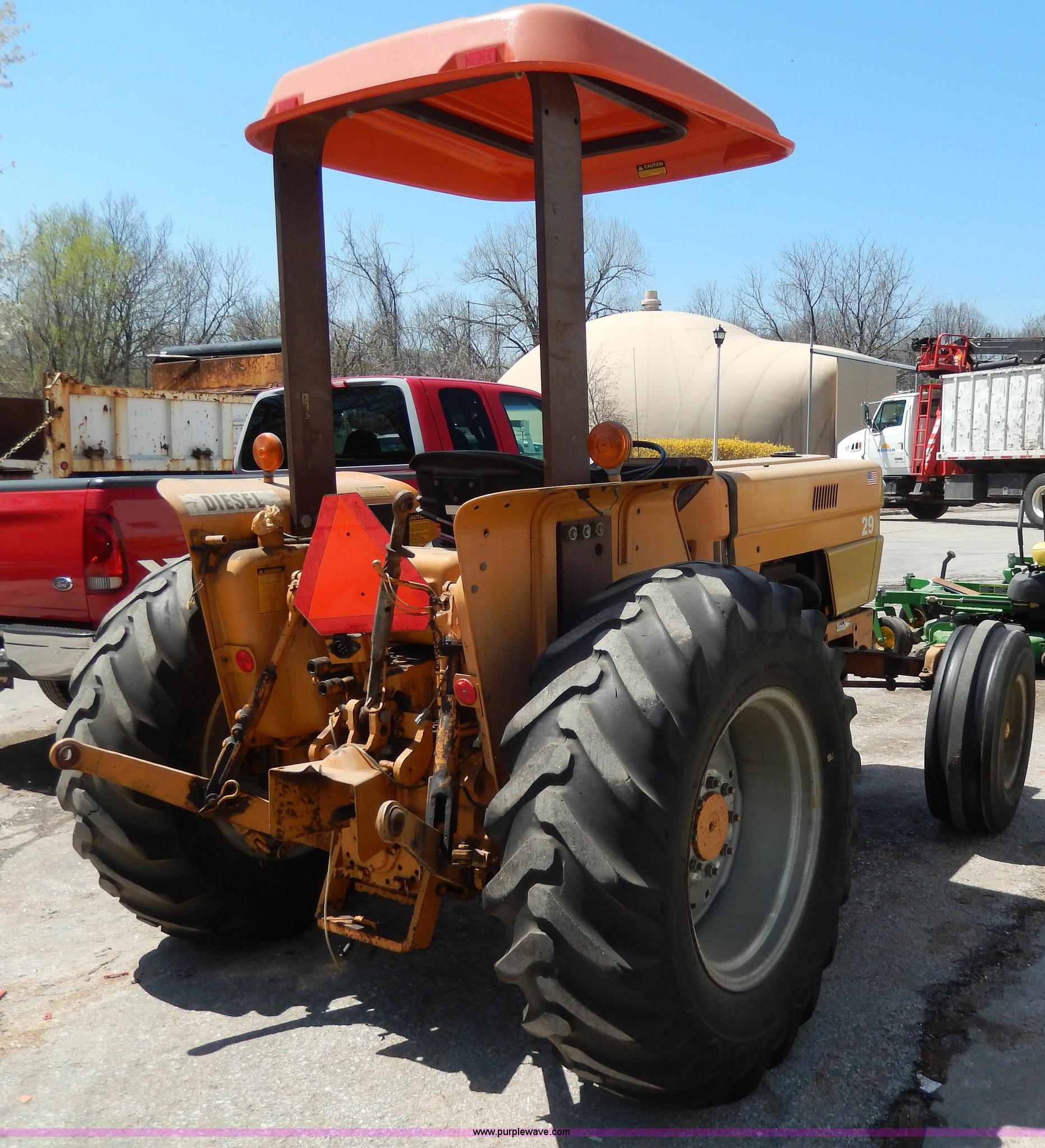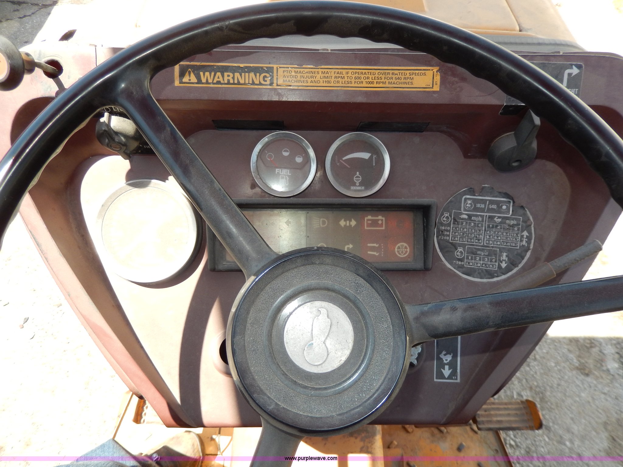 Purple Wave is selling a used Tractor in Kansas. This item is a 1988 Case 485-380B tractor with the following: 1,450 hours on meter, Three cylinder diesel engine, Engine serial 1790T2T425492, 8F-2R gears, Hi-Lo, Canopy, Three point, 540 PTO, Rear hydraulic remotes, 9.5-15 front tires, 14.9-24 rear tires, Front steering cylinder leaks, Clutch release is high, Seat has cosmetic damage, Serial B690015B018402