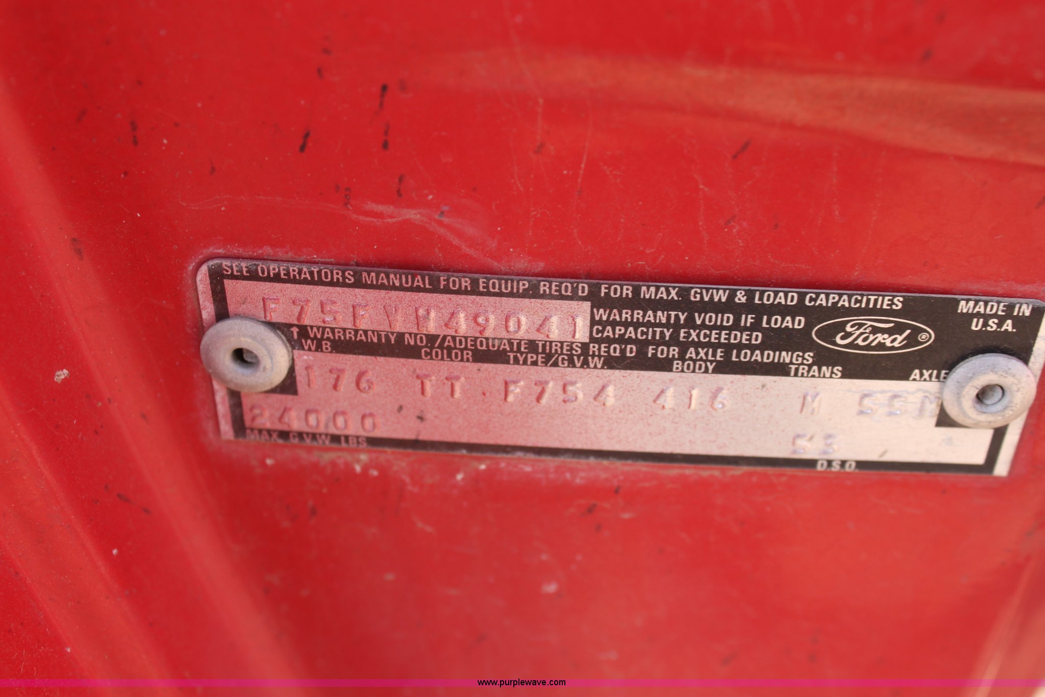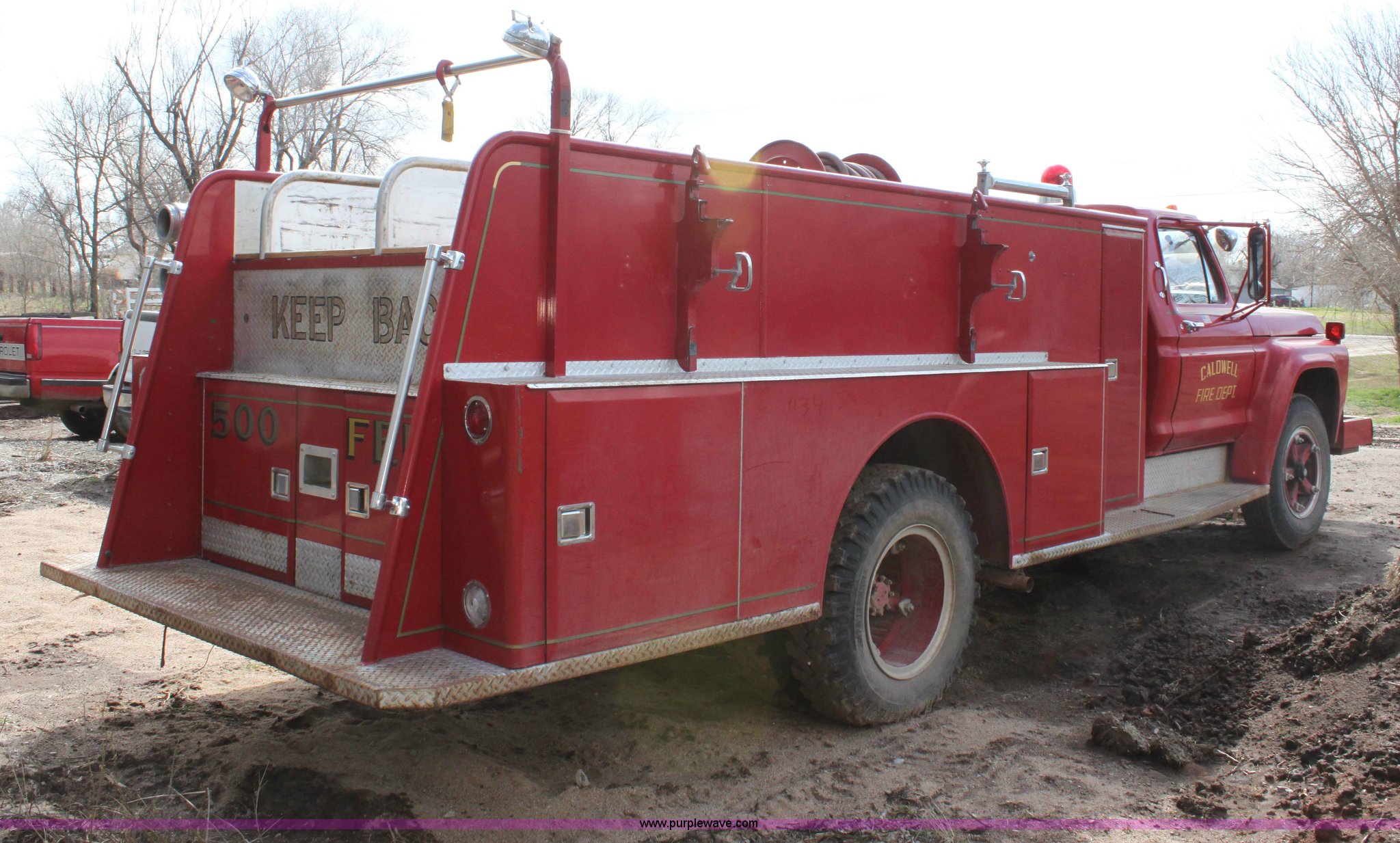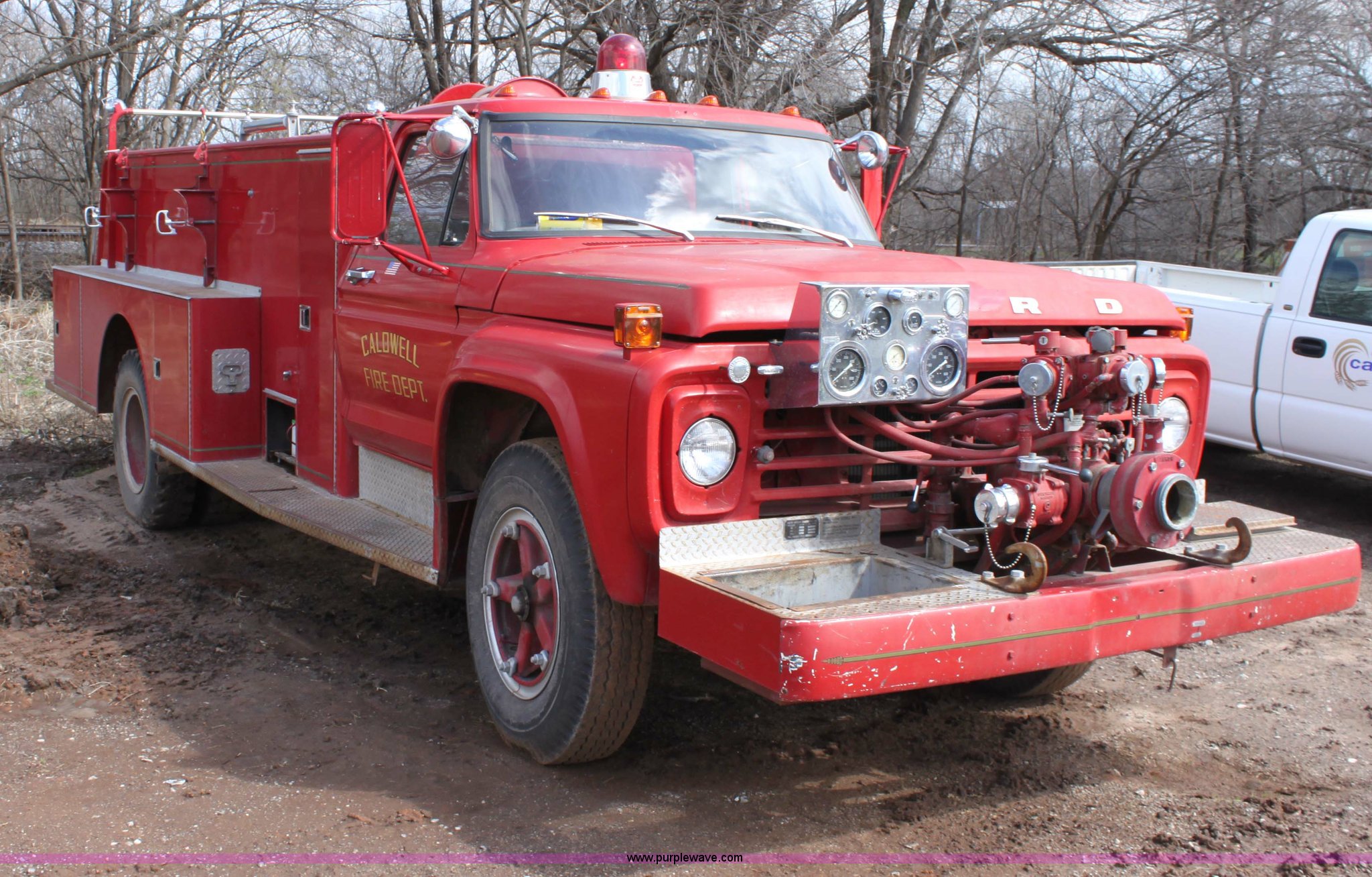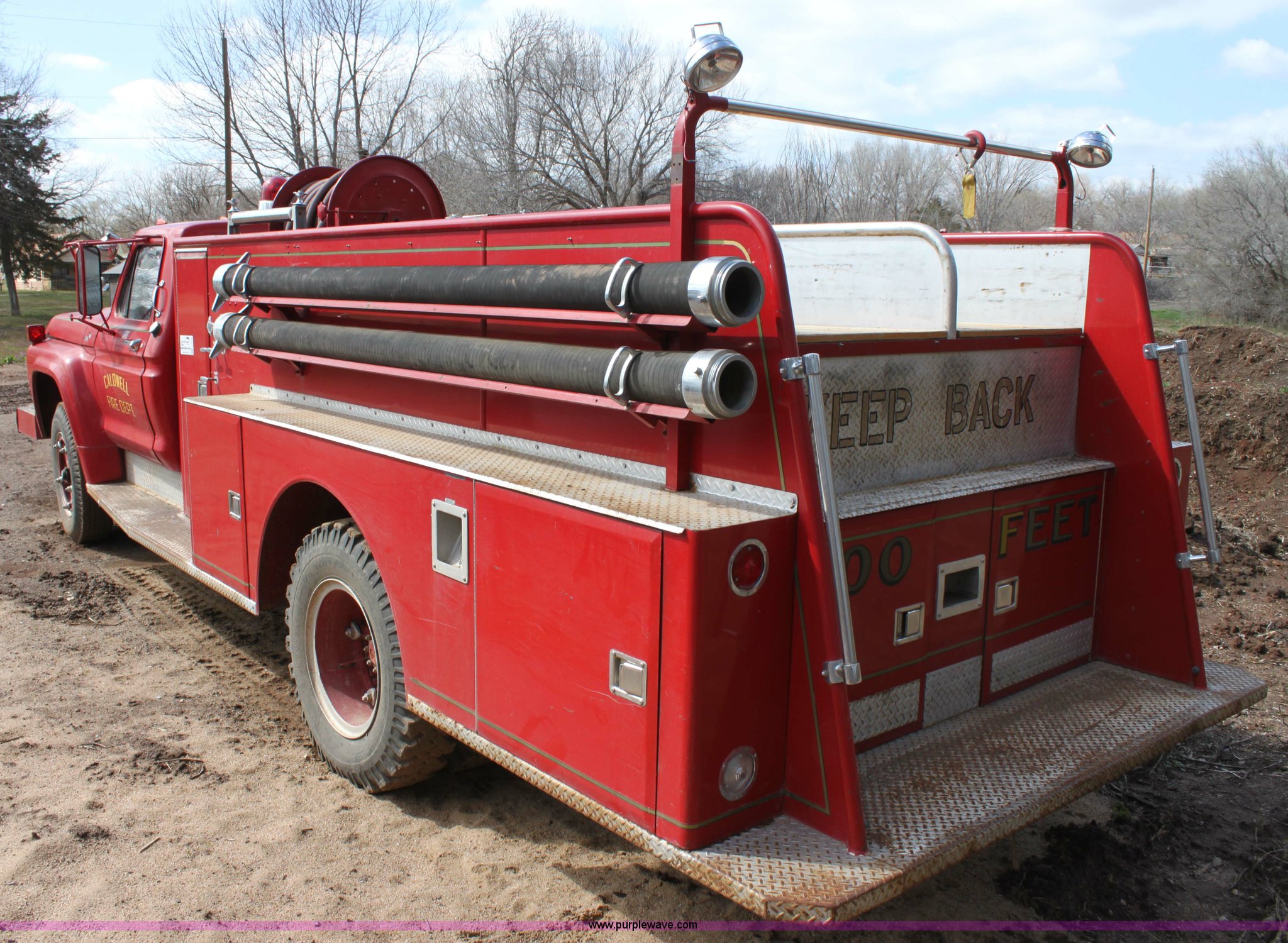 1976 Ford fire engine. 4,024 miles on odometer, Ford 389 CID V8 gas engine, Five speed manual transmission Two speed rear end, 750 gallon tank, Hose reel, (2) hard suction lines 6", Front mount pump, 9.80-20 tires. F75FVW49041. Shipping quotes available. City of Caldwell. Caldwell, KS 67022
