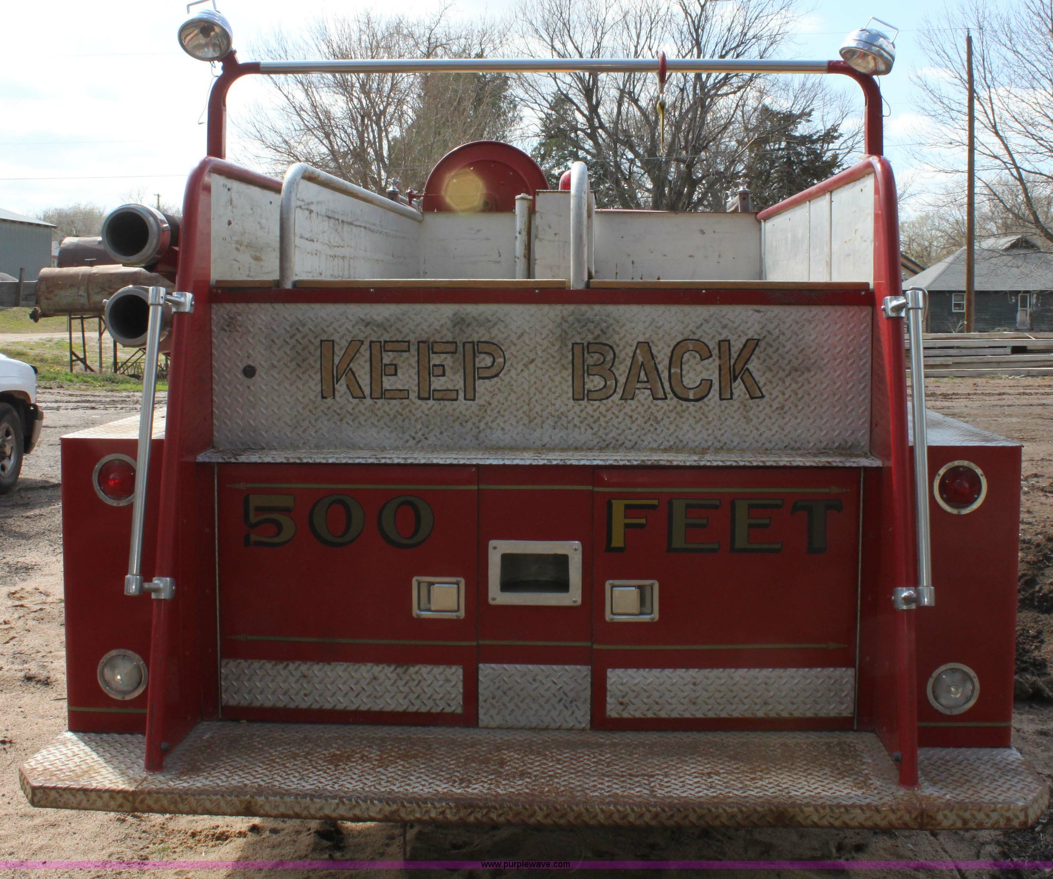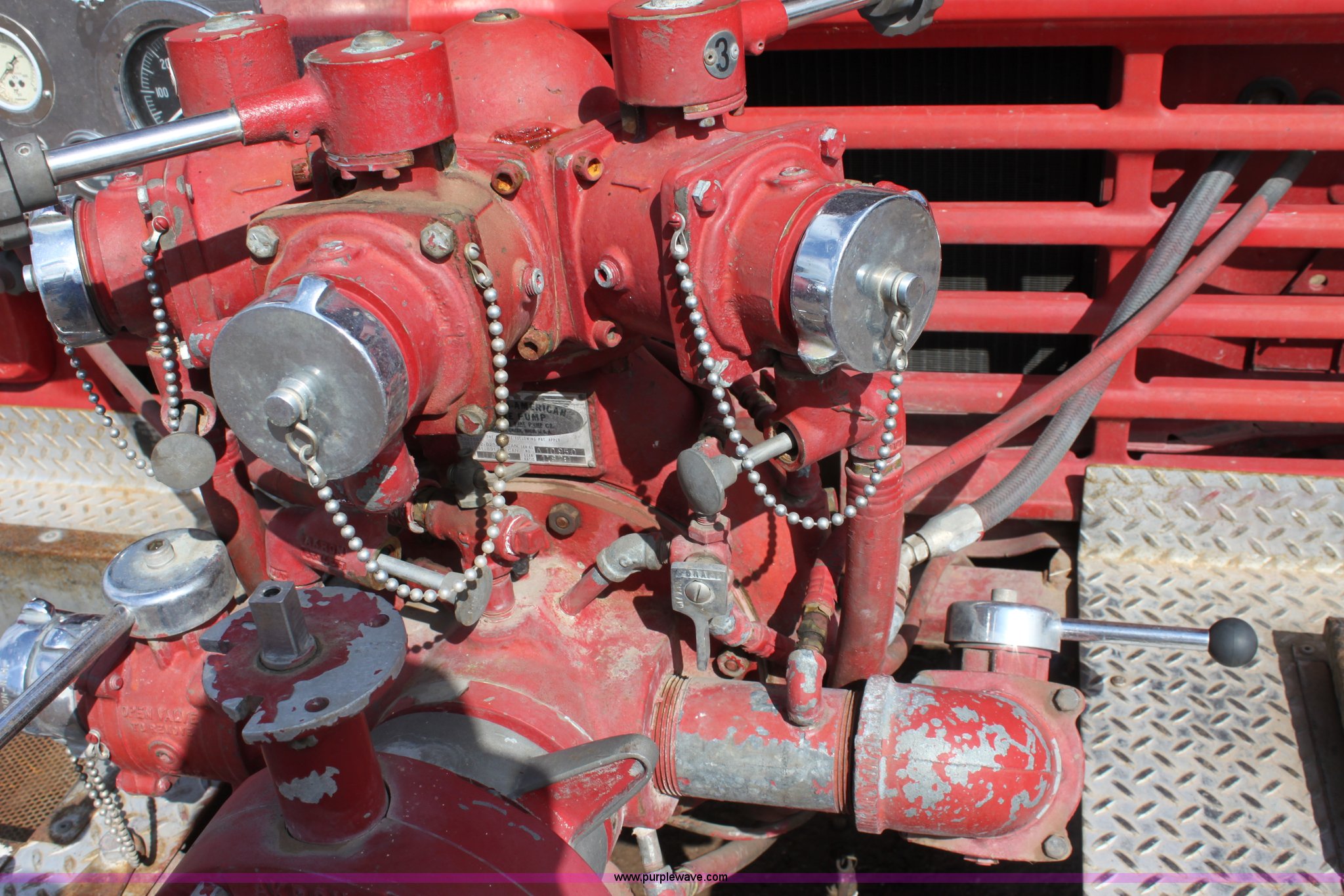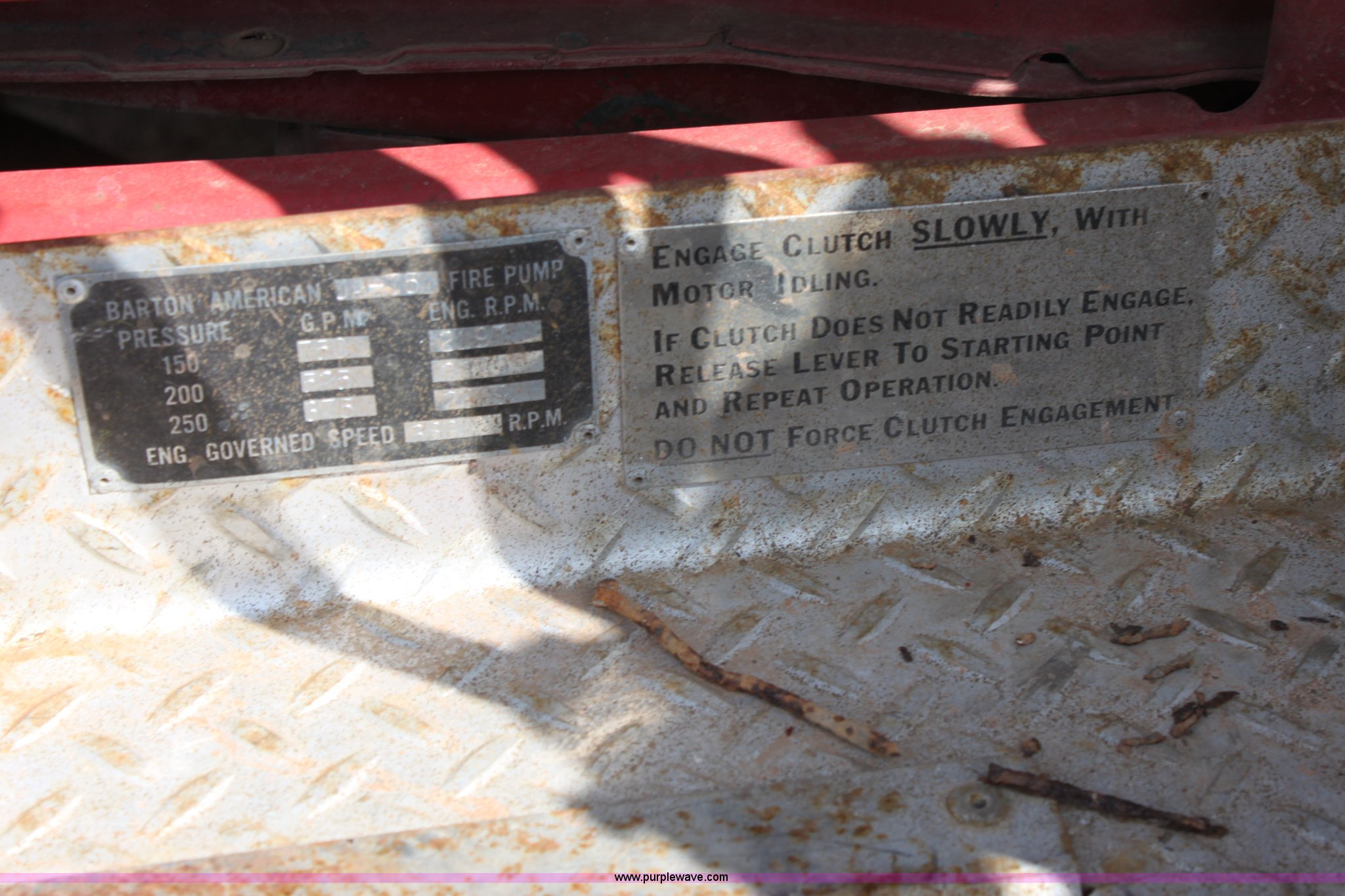 Purple Wave is selling a used Fire Truck or Emergency Vehicle in Kansas. This item is a 1976 Ford fire engine with the following: 4,024 miles on odometer, Ford 389 CID V8 gas engine, Five speed manual transmission, Two speed rear end, 750 gallon tank, Hose reel, (2) hard suction lines, 6", Front mount pump, 9.80-20 tires