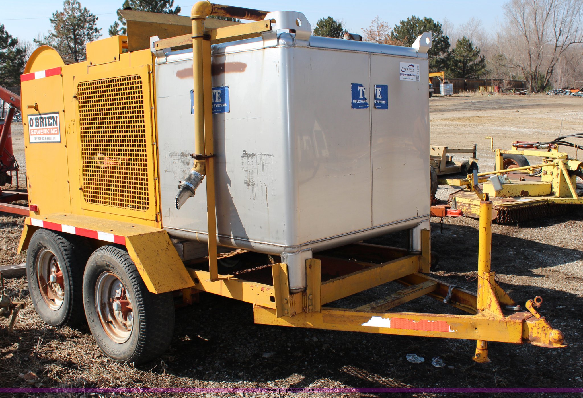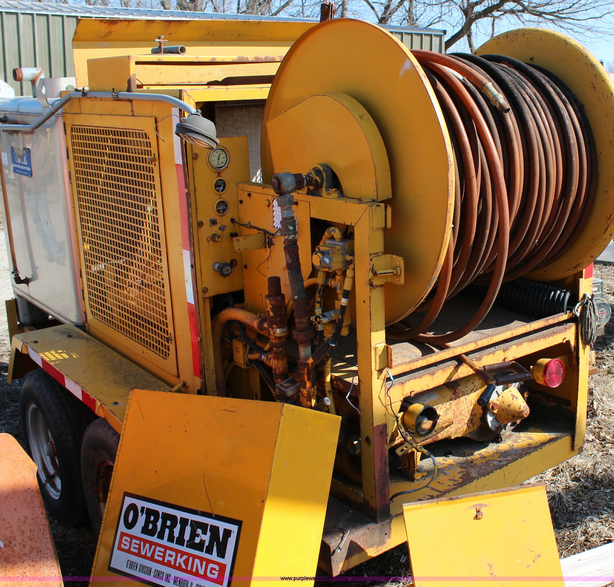 Purple Wave is selling a used Tools in Kansas. This item is a Obrian Sewer Jetter with the following: Wisconsin four cylinder gas engine, 345 gallon capacity, Approximately 500' spool of hose