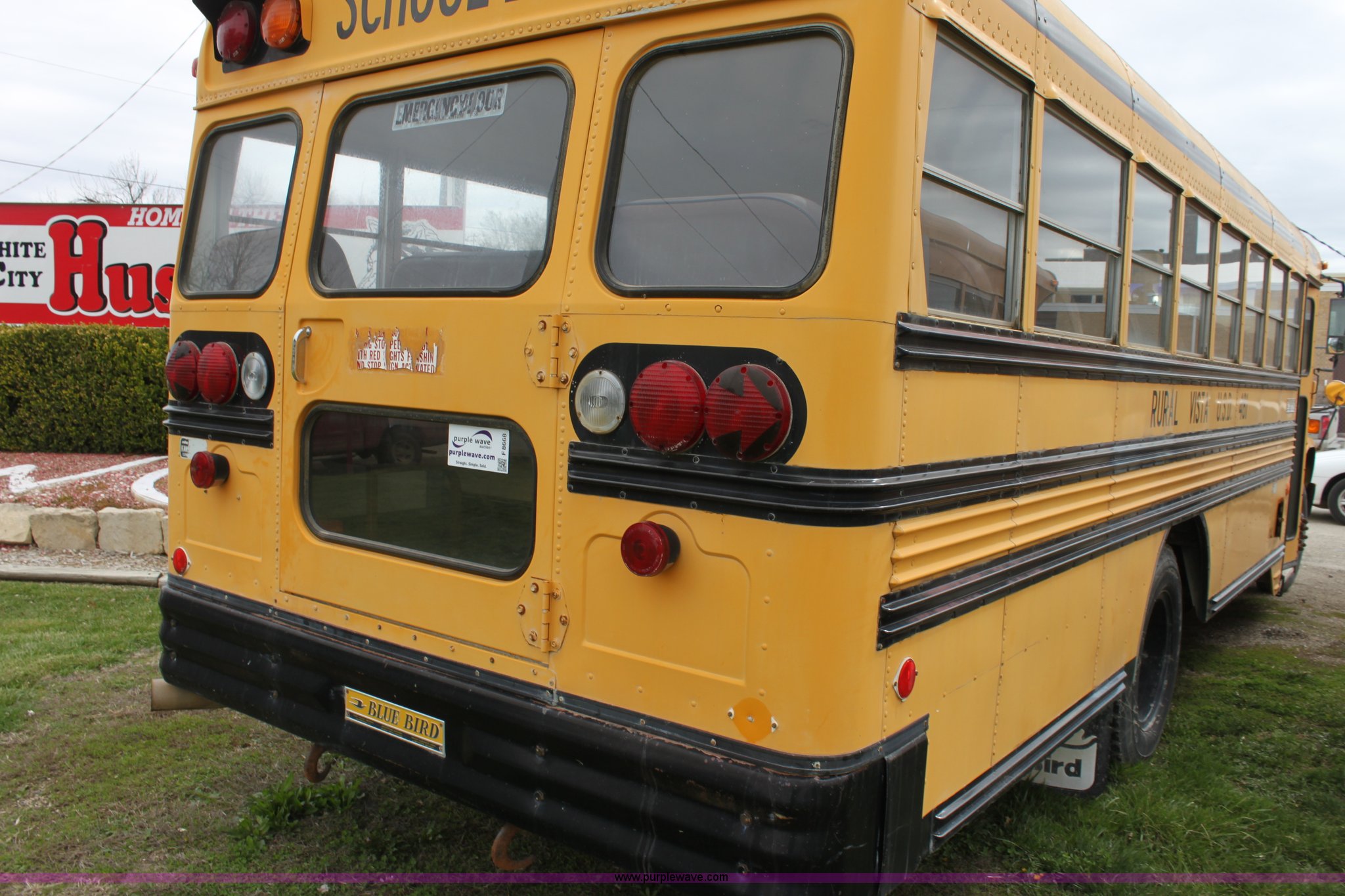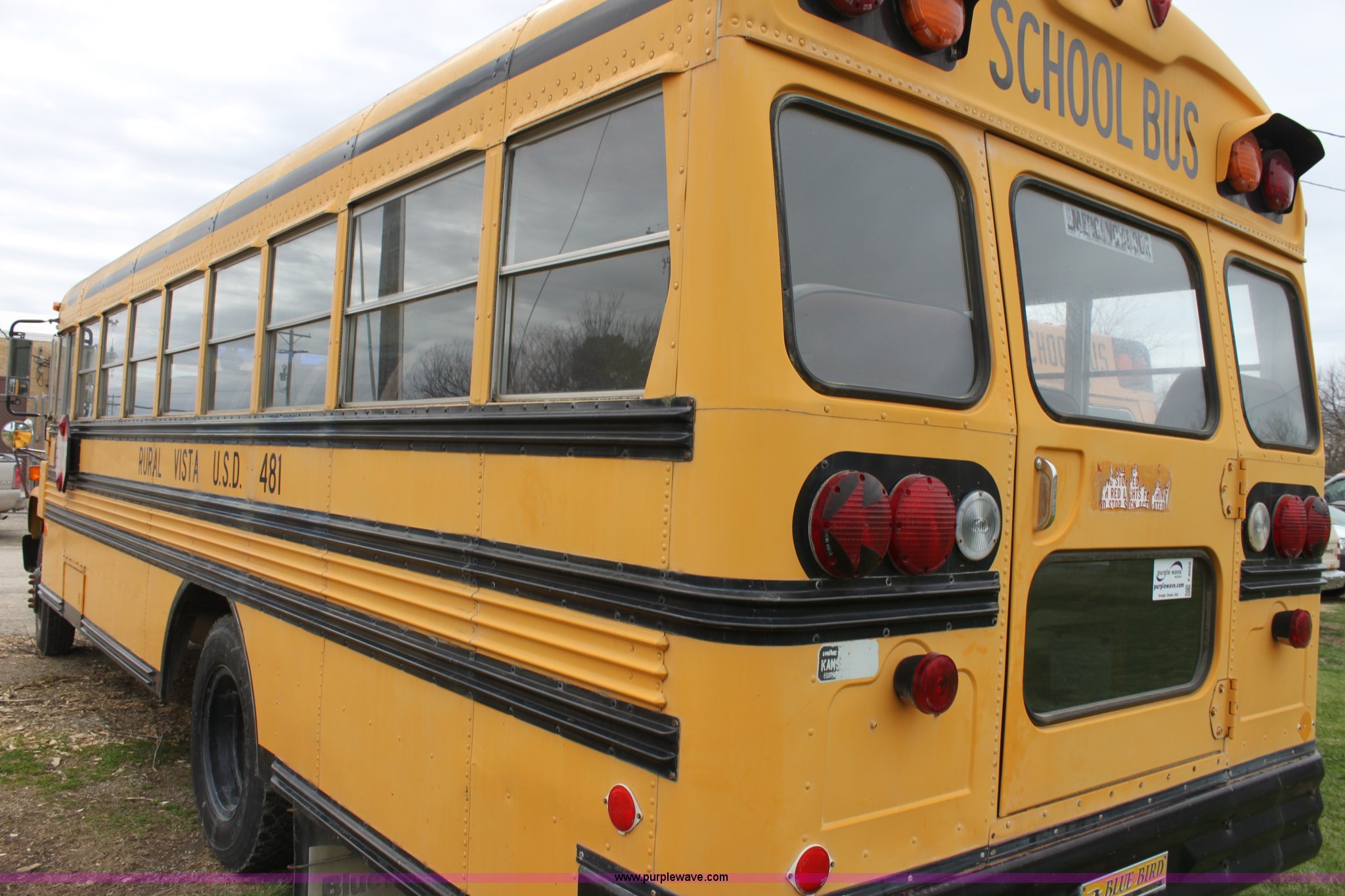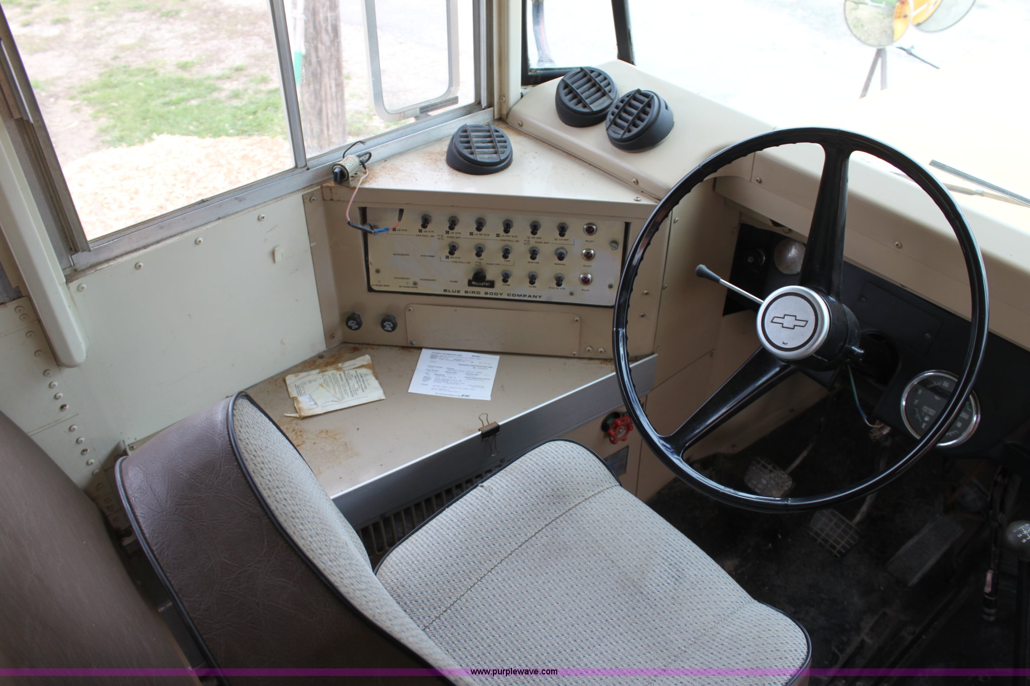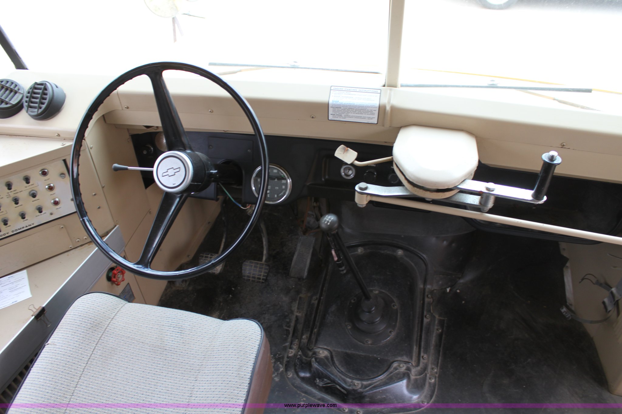 Purple Wave is selling a used Bus in Kansas. This item is a 1990 Chevrolet school bus with the following: 66,429 miles on odometer, 6.0L V8 gas engine, Five speed manual transmission, Heat, AM/FM, 8.25R20 tires