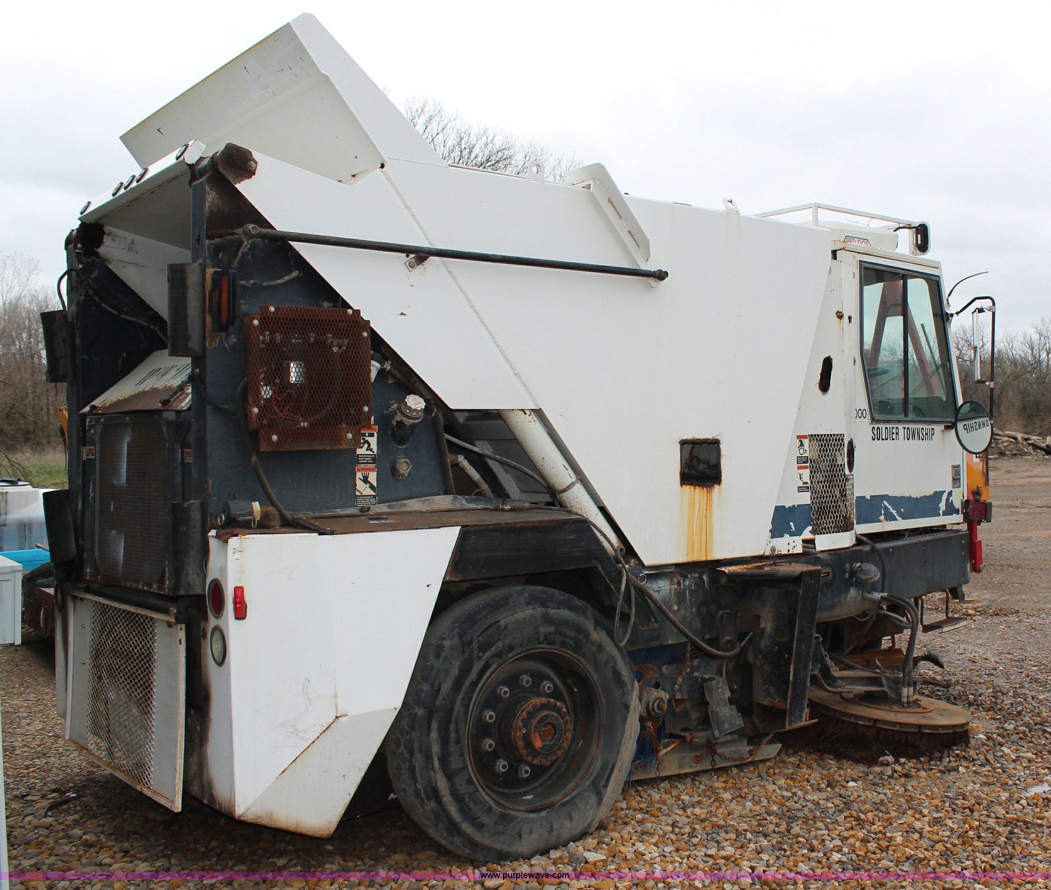 Purple Wave is selling a used Sweeper in Kansas. This item is a Johnson J3000 street sweeper with the following: 7,695 hours on meter, 195,950 miles on odometer, Four cylinder diesel engine, Engine inoperable, Automatic transmission, AC and heat, AM/FM, Tow hitch, 11R22.5 tires