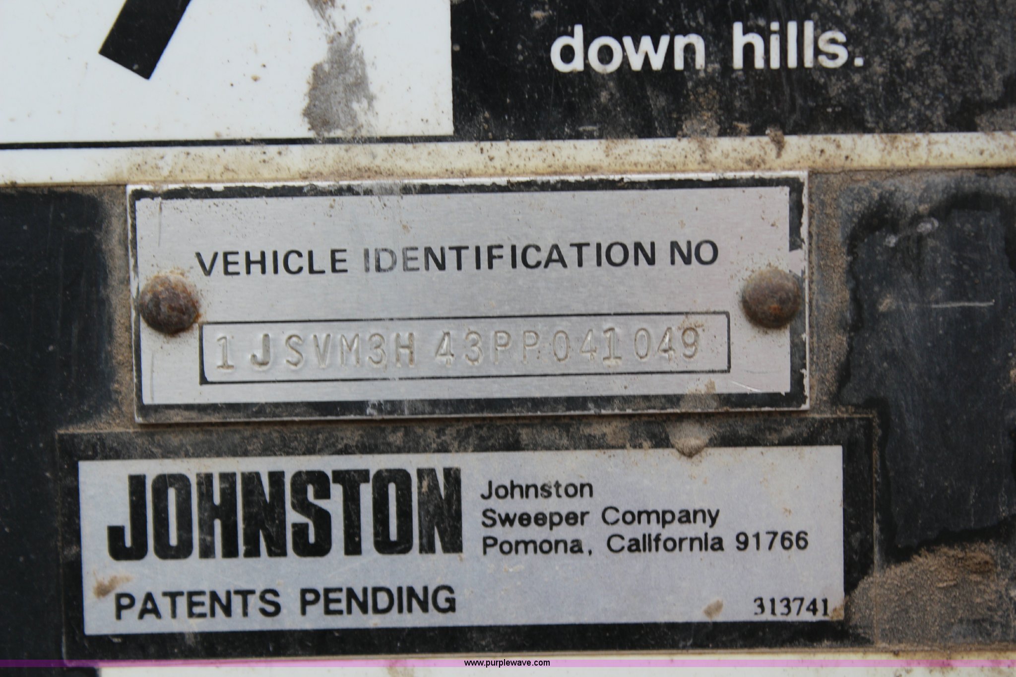 Johnson J3000 street sweeper. 7,695 hours on meter, 195,950 miles on odometer, Four cylinder diesel engine Engine inoperable, Automatic transmission, AC and heat, AM/FM, Tow hitch, 11R22.5 tires. 1JSVM3H43PP041049. Shipping quotes available. Soldier Township. 600 NW 46th. Topeka, KS 66617