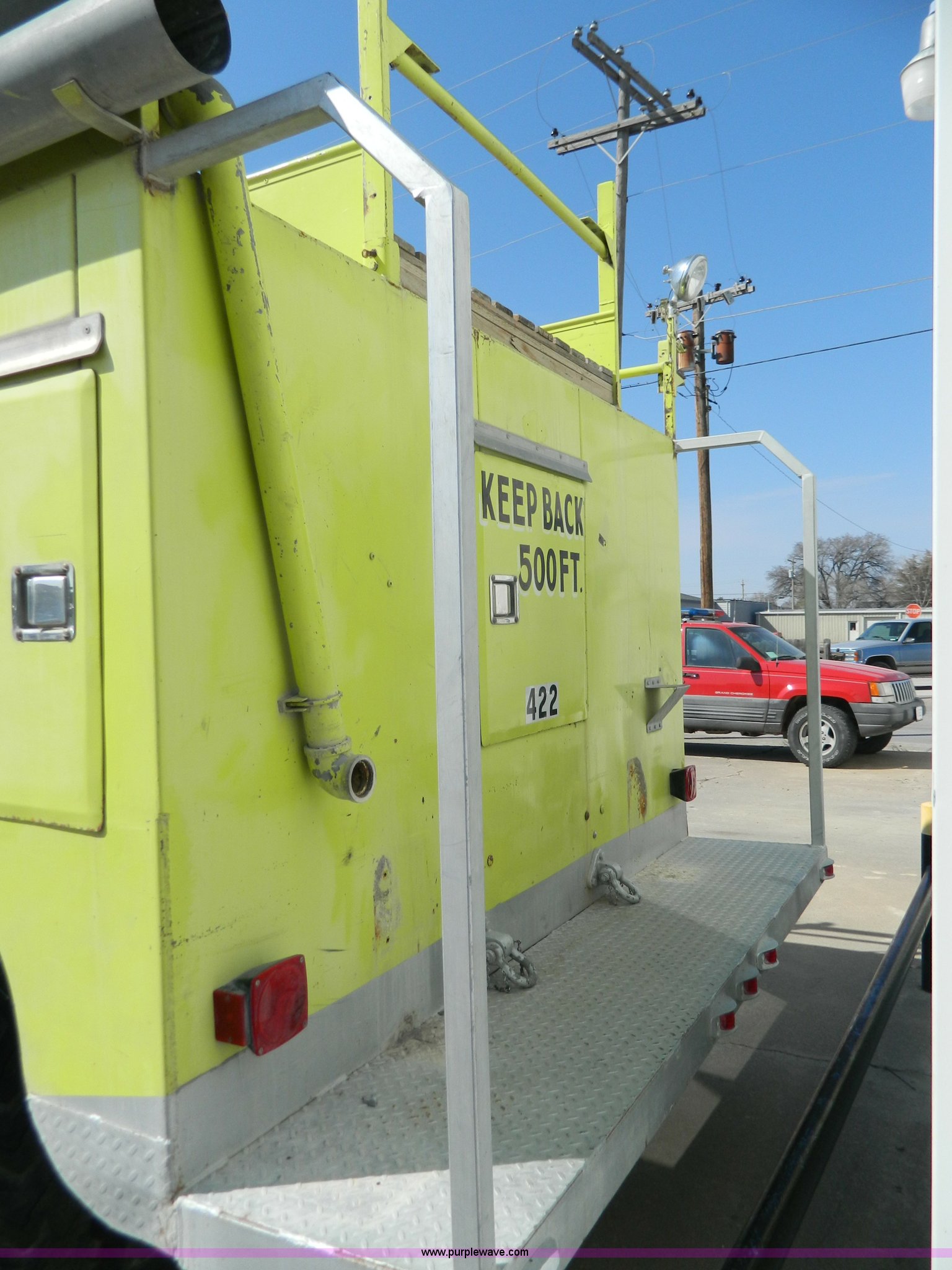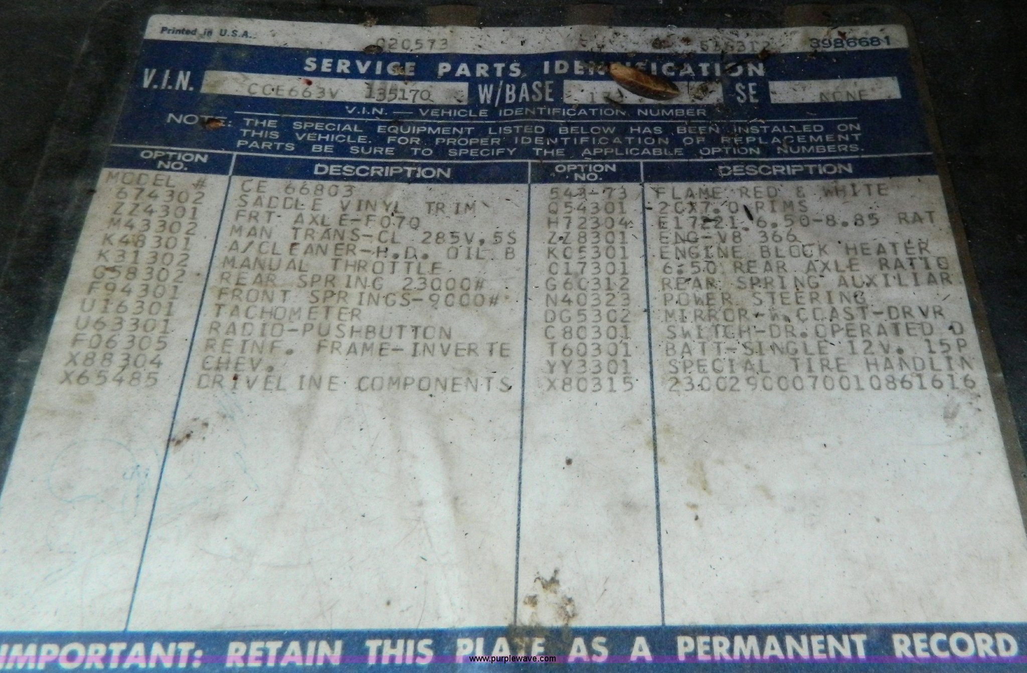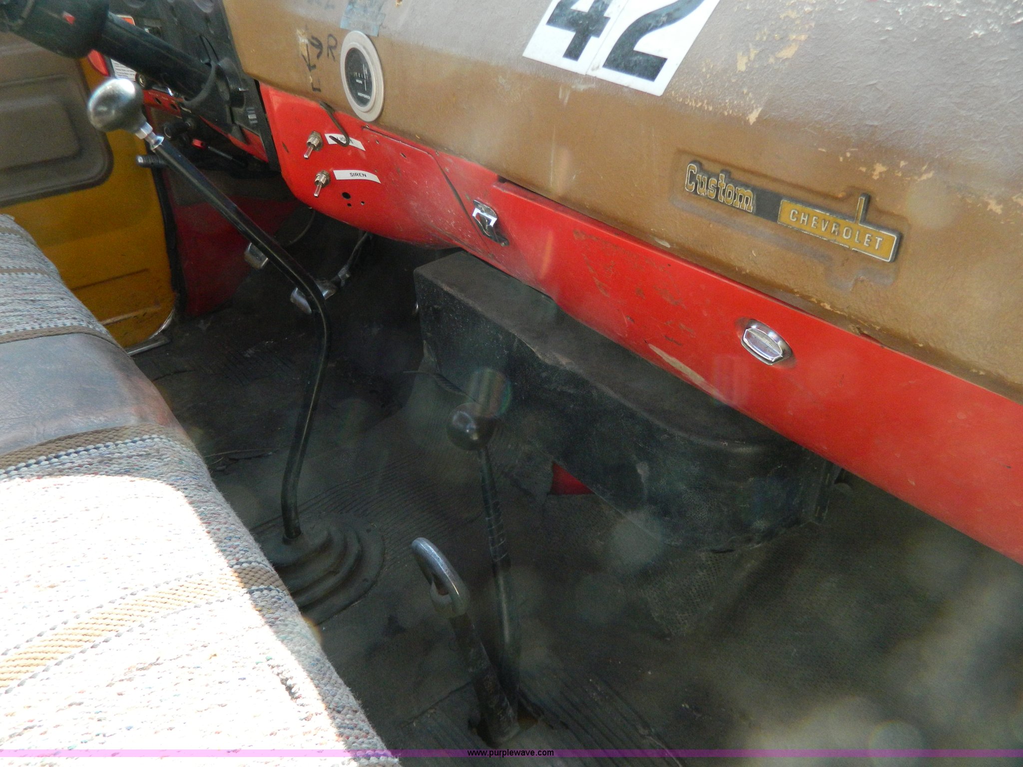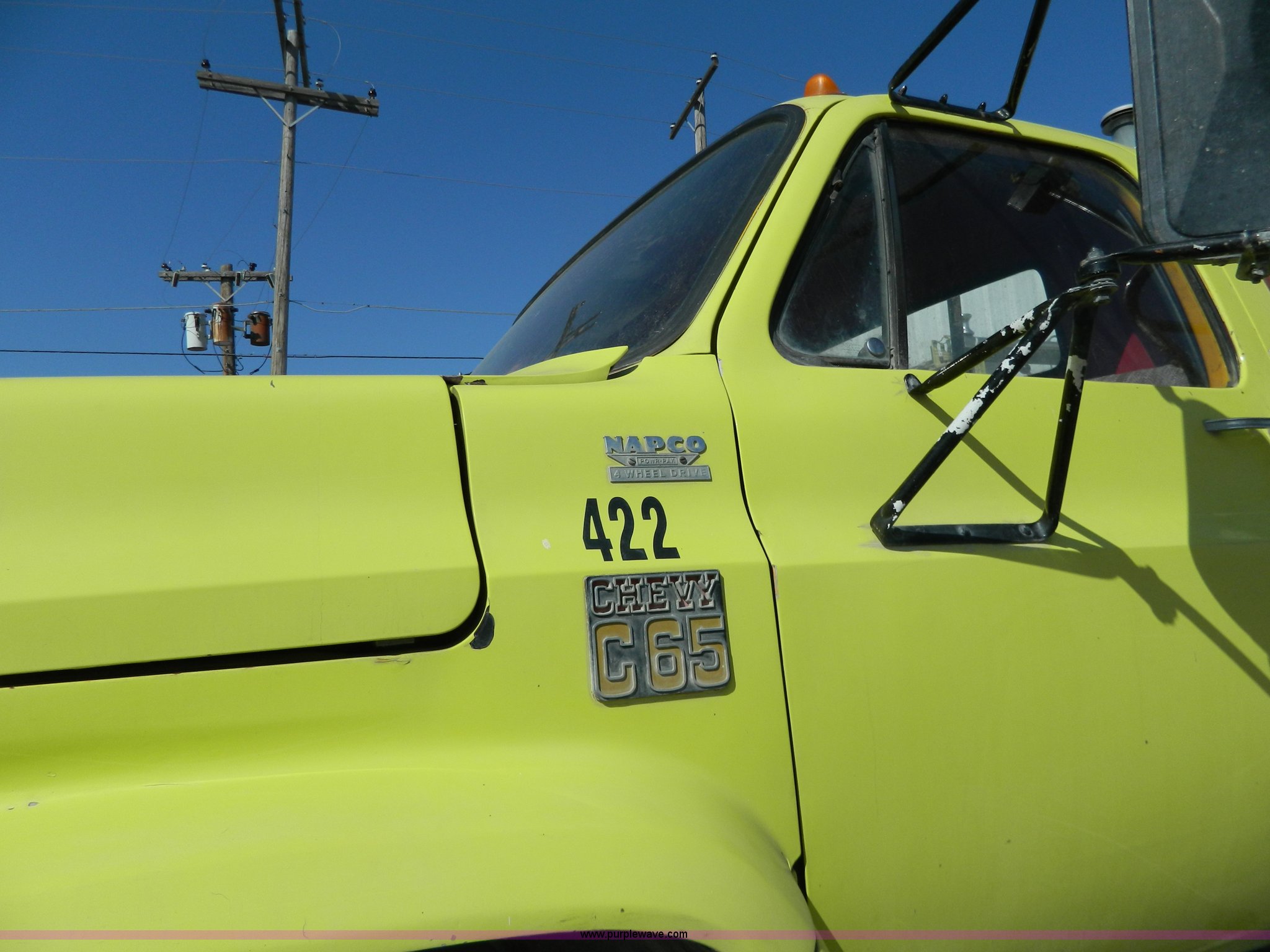Purple Wave is selling a used Fire Truck or Emergency Vehicle in Kansas. This item is a 1973 Chevrolet C65 fire truck with the following: 3,600 miles on odometer, Not Actual Mileage, 5,018 hours on meter, Chevrolet V8 gas engine, Four wheel drive, Hale 250 gpm pump, 1,000 gallon water tank, Electric hose reel, 10.00-20 tires, Cosmetic damage, Rust