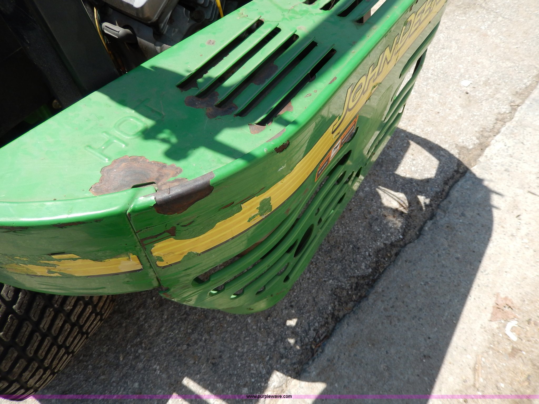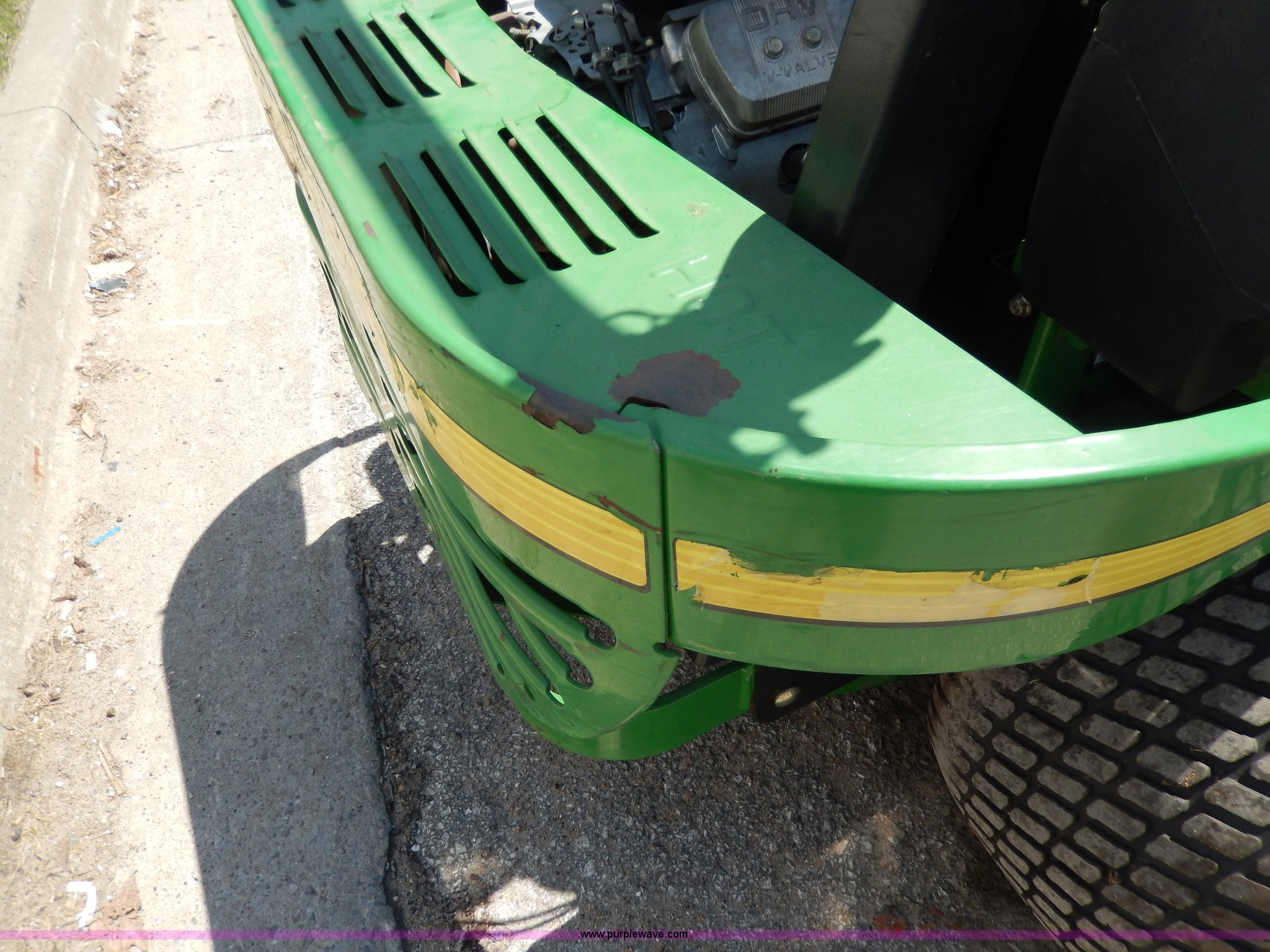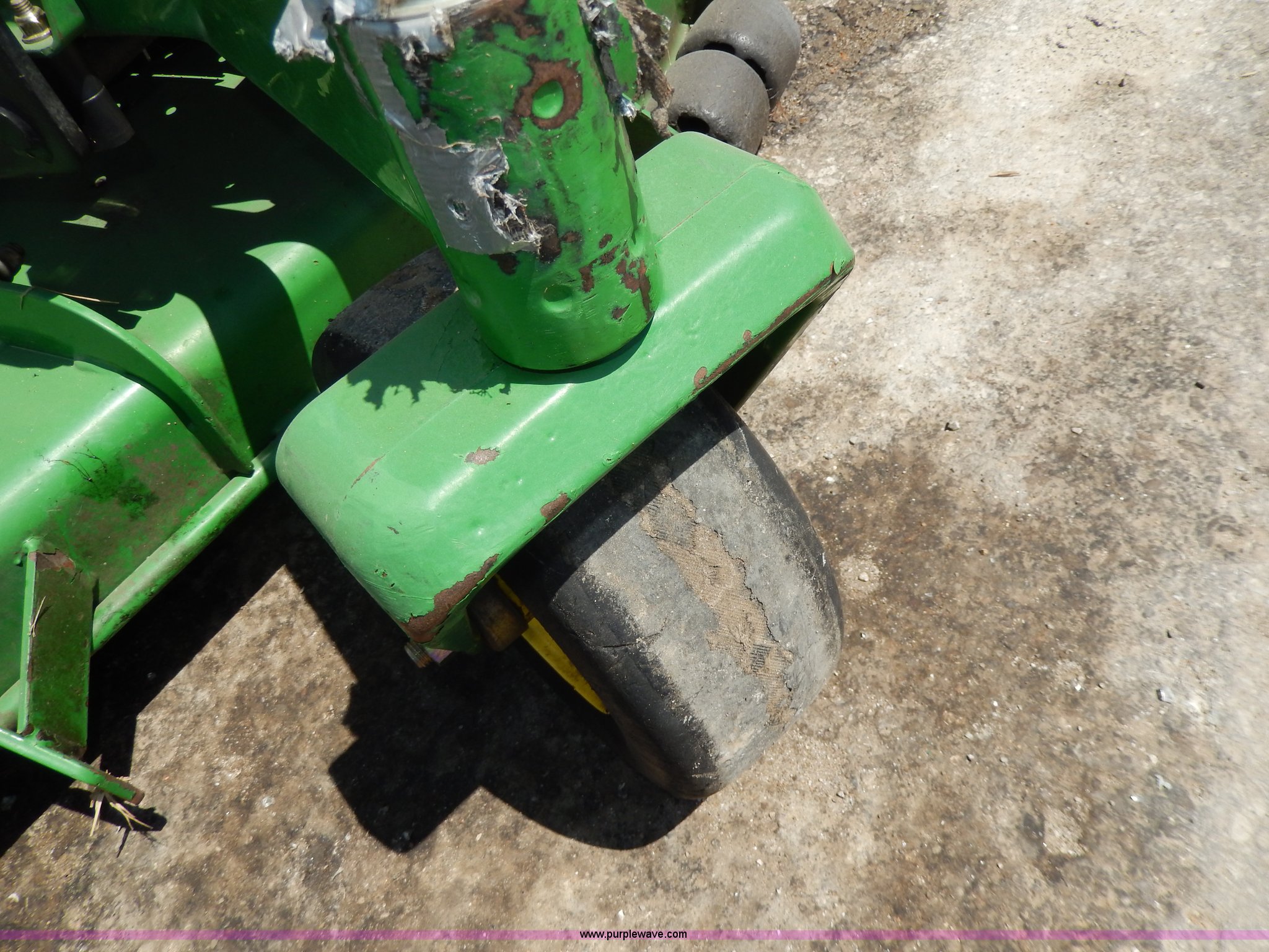 Purple Wave is selling a used Commercial Turf Mower in Kansas. This item is a John Deere 737 ZTR lawn mower with the following: 1,328 hours on meter, 60" cut, Kawasaki V-twin 23 HP gas engine, 24 x 12.00-12 tires, Front wheels worn, Slow leaks, Serial TC0737B061290