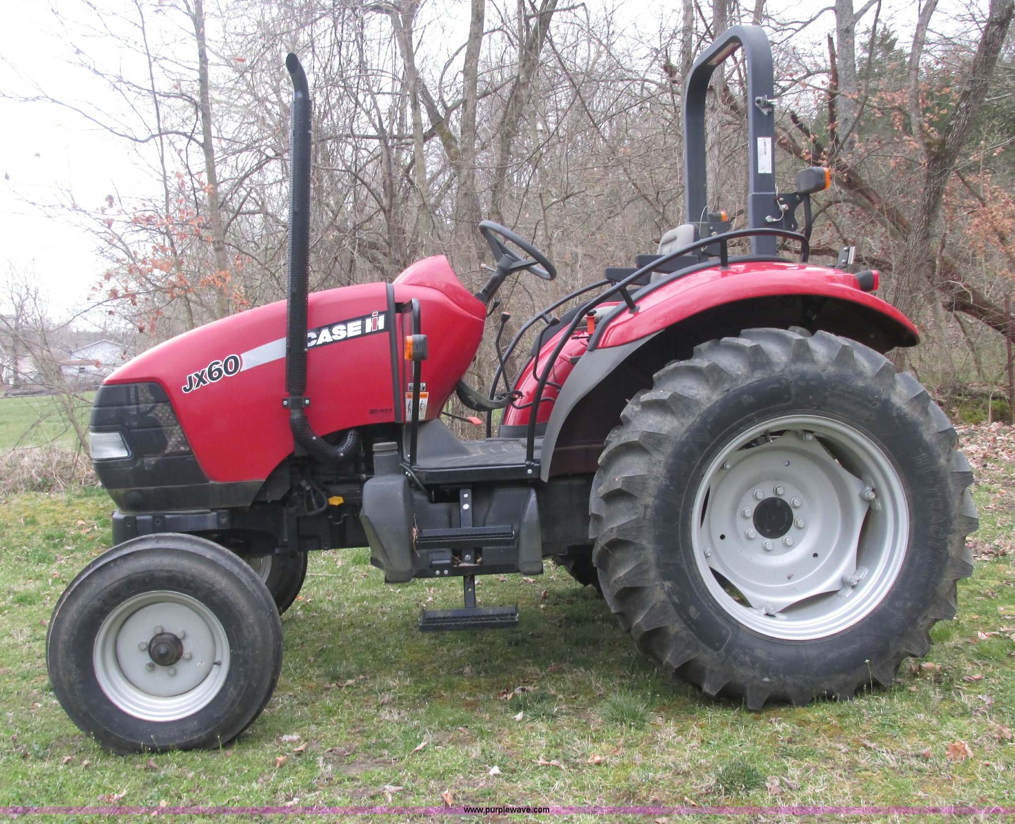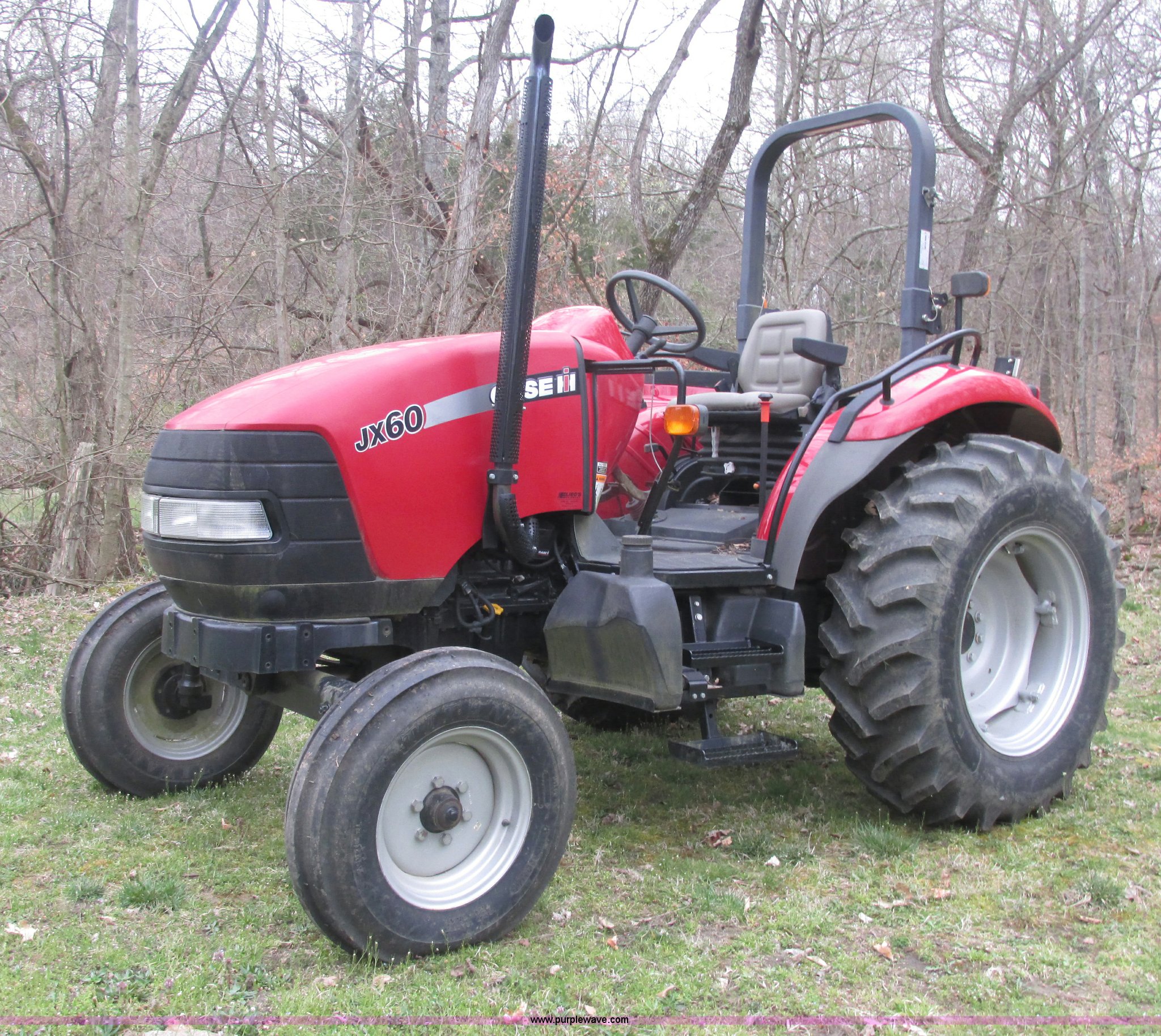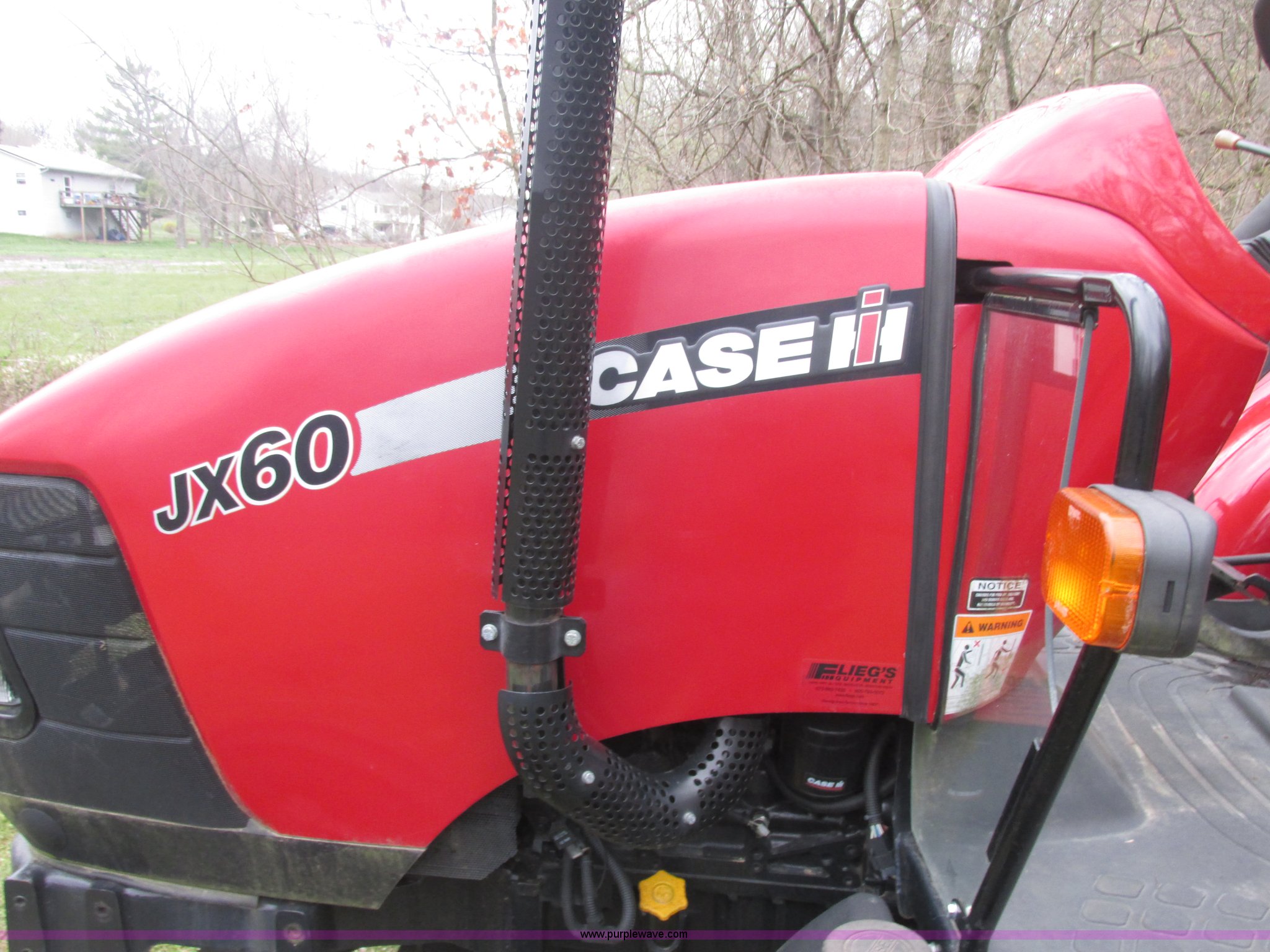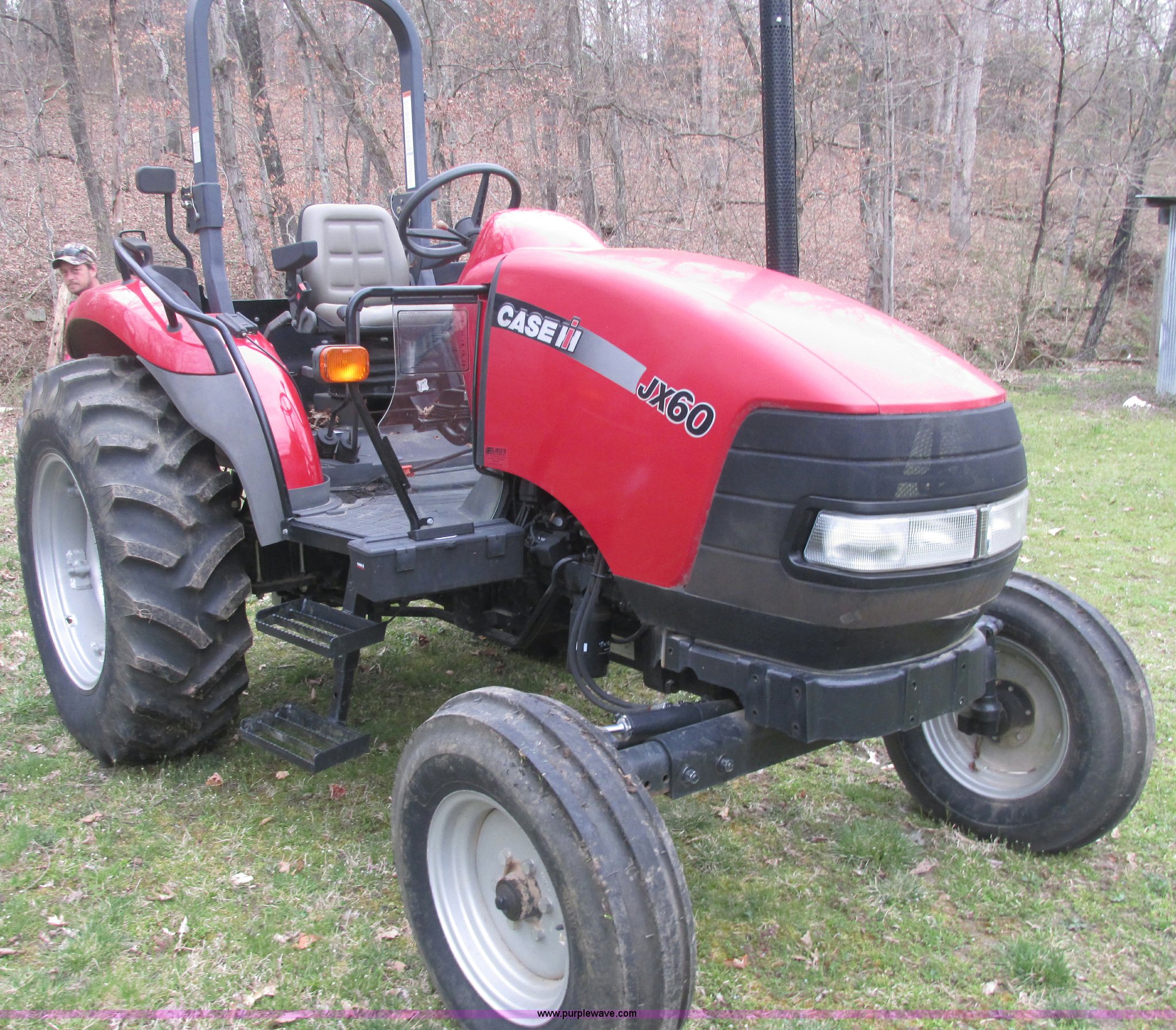 Purple Wave is selling a used Tractor in Missouri. This item is a 2008 Case IH JX60 tractor with the following: 51 actual hours, Three cylinder diesel engine, Serial 50V047535, Four speed transmission, Three range shift on the go transmission, Reverse, Positive traction locking rear end, Fold down ROPS canopy, Seat belt, Adjustable seat, Horn, Power steering, Air cylinder assist hood latch, Dual fender hand rails, Front plexi-glass guards, Parking brake, Exhaust heat shield, Quick hitch, Three point, Stabilizers, PTO, Guard, Dual remotes, Draw bar, Rear lights, Headlights, Blinkers, Auxiliary toolbox, Rear trailer wiring, Adjustable width front axle, 7.50-16SL front tires, 14.9-28 rear tires, Recently replaced battery, Serial HFJ051198