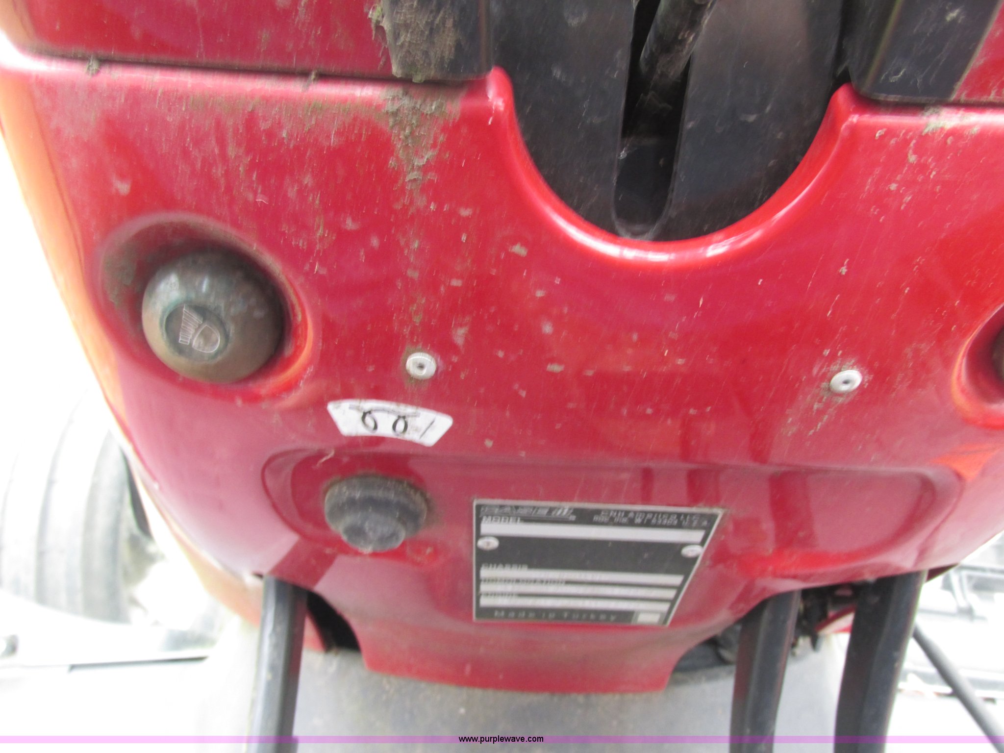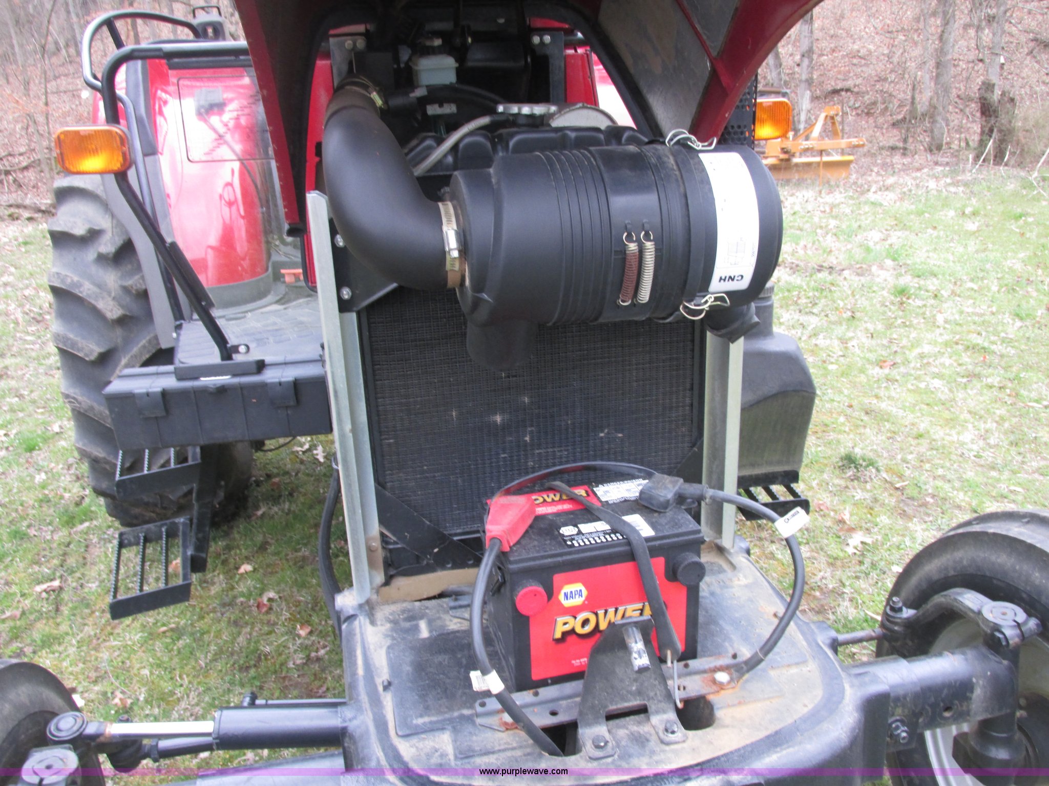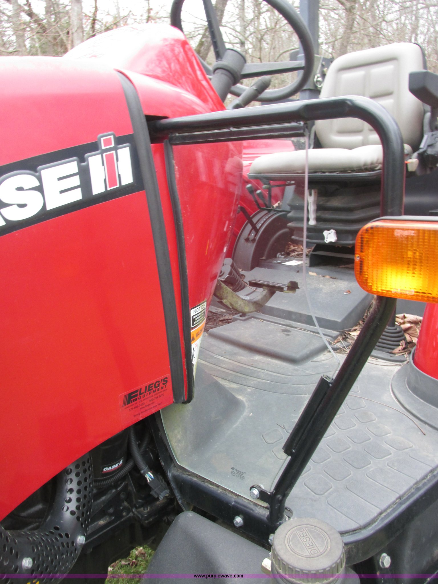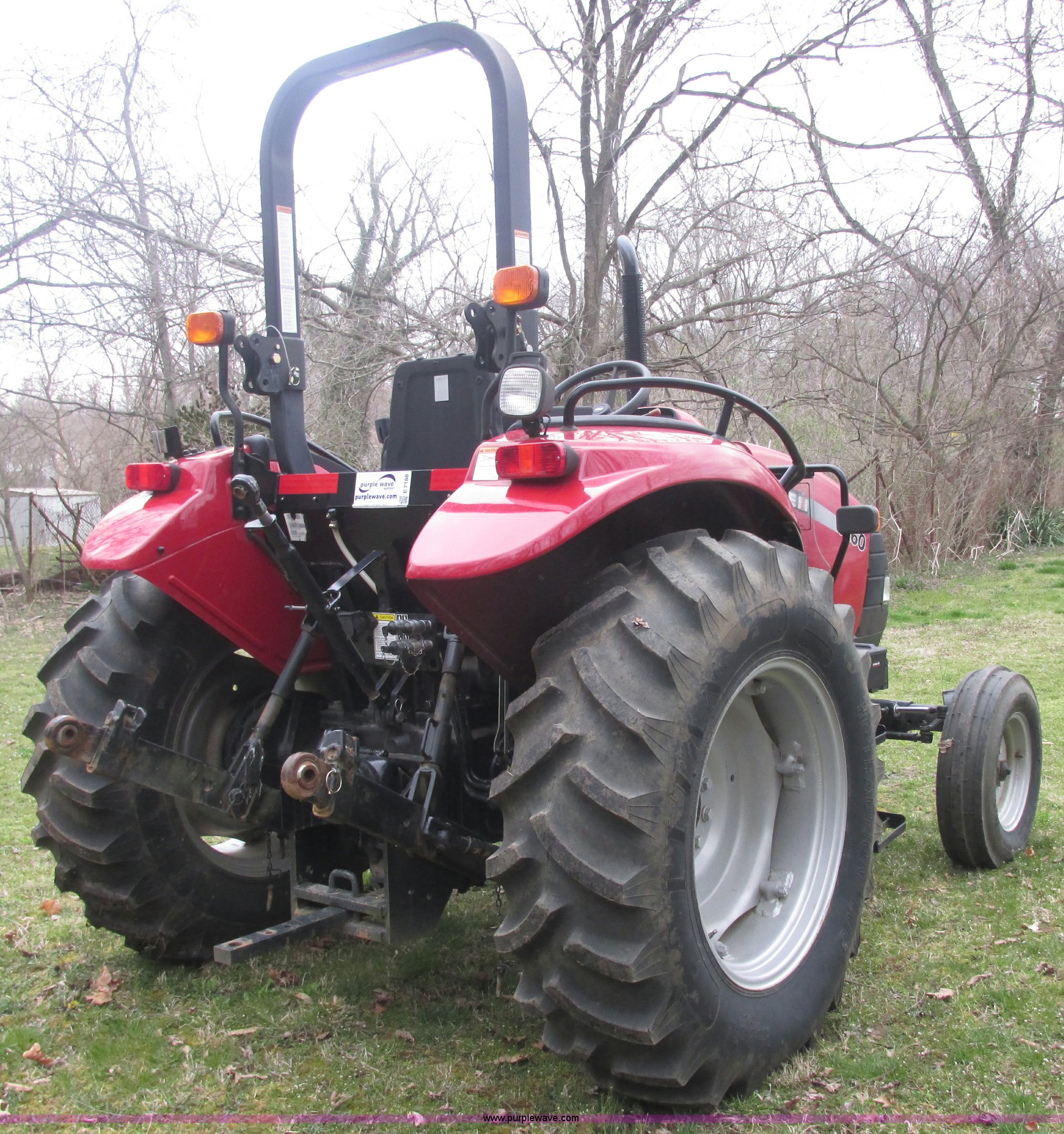 Purple Wave is selling a used Tractor in Missouri. This item is a 2008 Case IH JX60 tractor with the following: 51 actual hours, Three cylinder diesel engine, Serial 50V047535, Four speed transmission, Three range shift on the go transmission, Reverse, Positive traction locking rear end, Fold down ROPS canopy, Seat belt, Adjustable seat, Horn, Power steering, Air cylinder assist hood latch, Dual fender hand rails, Front plexi-glass guards, Parking brake, Exhaust heat shield, Quick hitch, Three point, Stabilizers, PTO, Guard, Dual remotes, Draw bar, Rear lights, Headlights, Blinkers, Auxiliary toolbox, Rear trailer wiring, Adjustable width front axle, 7.50-16SL front tires, 14.9-28 rear tires, Recently replaced battery, Serial HFJ051198