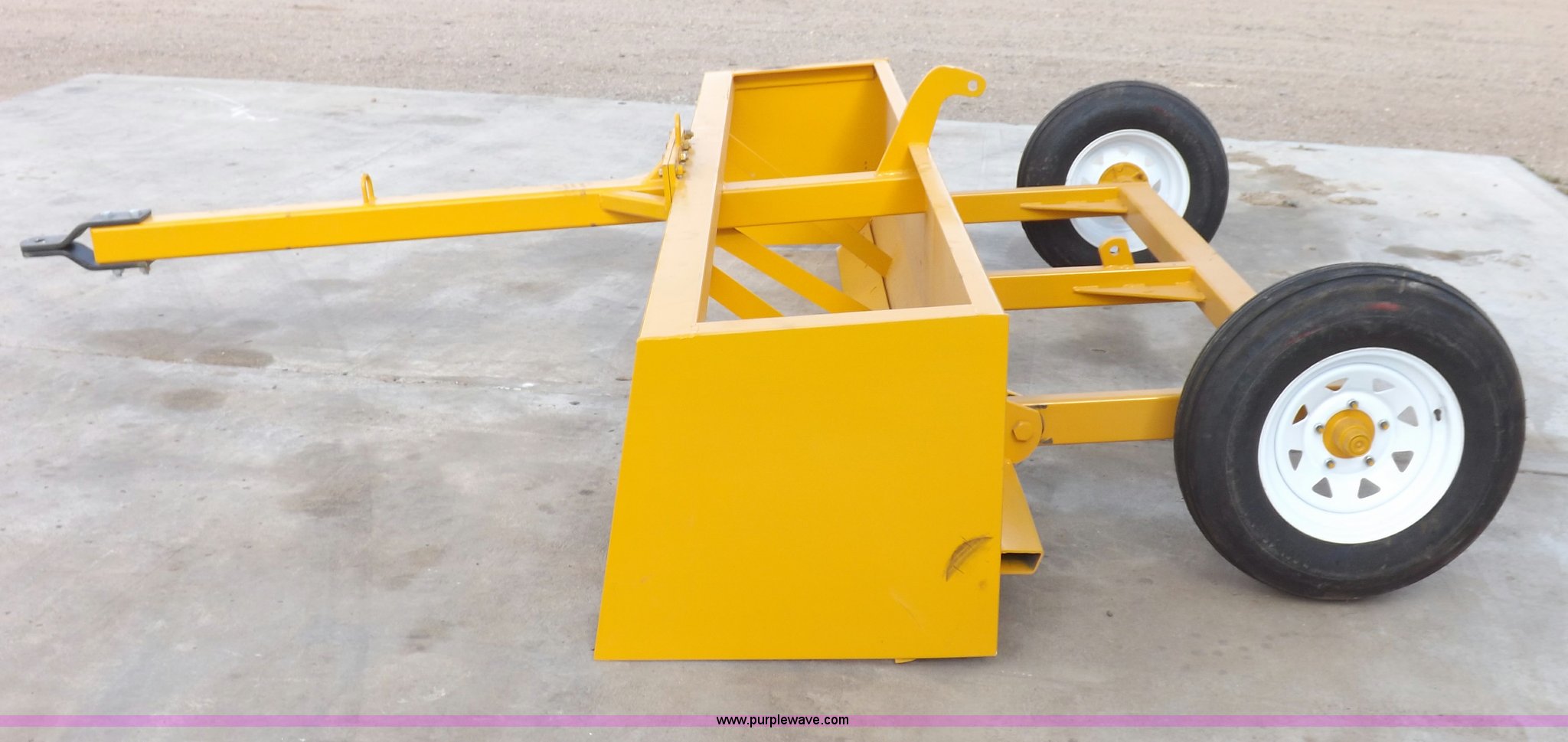 Purple Wave is selling a used Pull Type Scraper in Kansas. This item is a F10 speed mover box blade with the following: 10'W, Bolt-on cutting edge, 1" pin hitch, 4" x 2", 4" x 3", 4" x 4" tubing construction, 7.6-15 tires, Carrier hydraulic cylinder will be installed