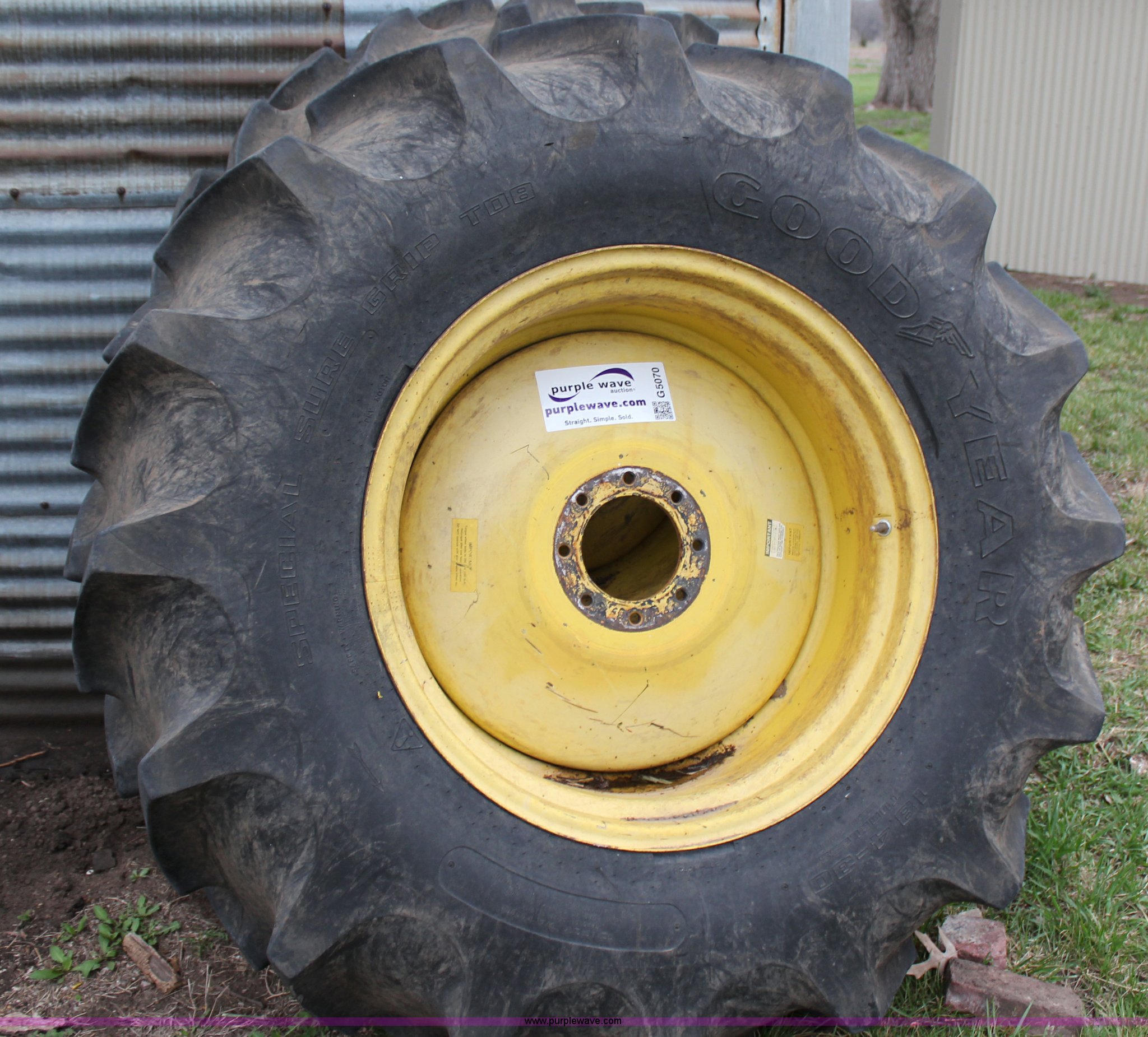 (2) Goodyear 18.4-30 tires and wheels. Eight hole wheels, Removed John Deere 9600 combine. Shipping quotes available. 5523 NW 25th. Topeka, KS 66618