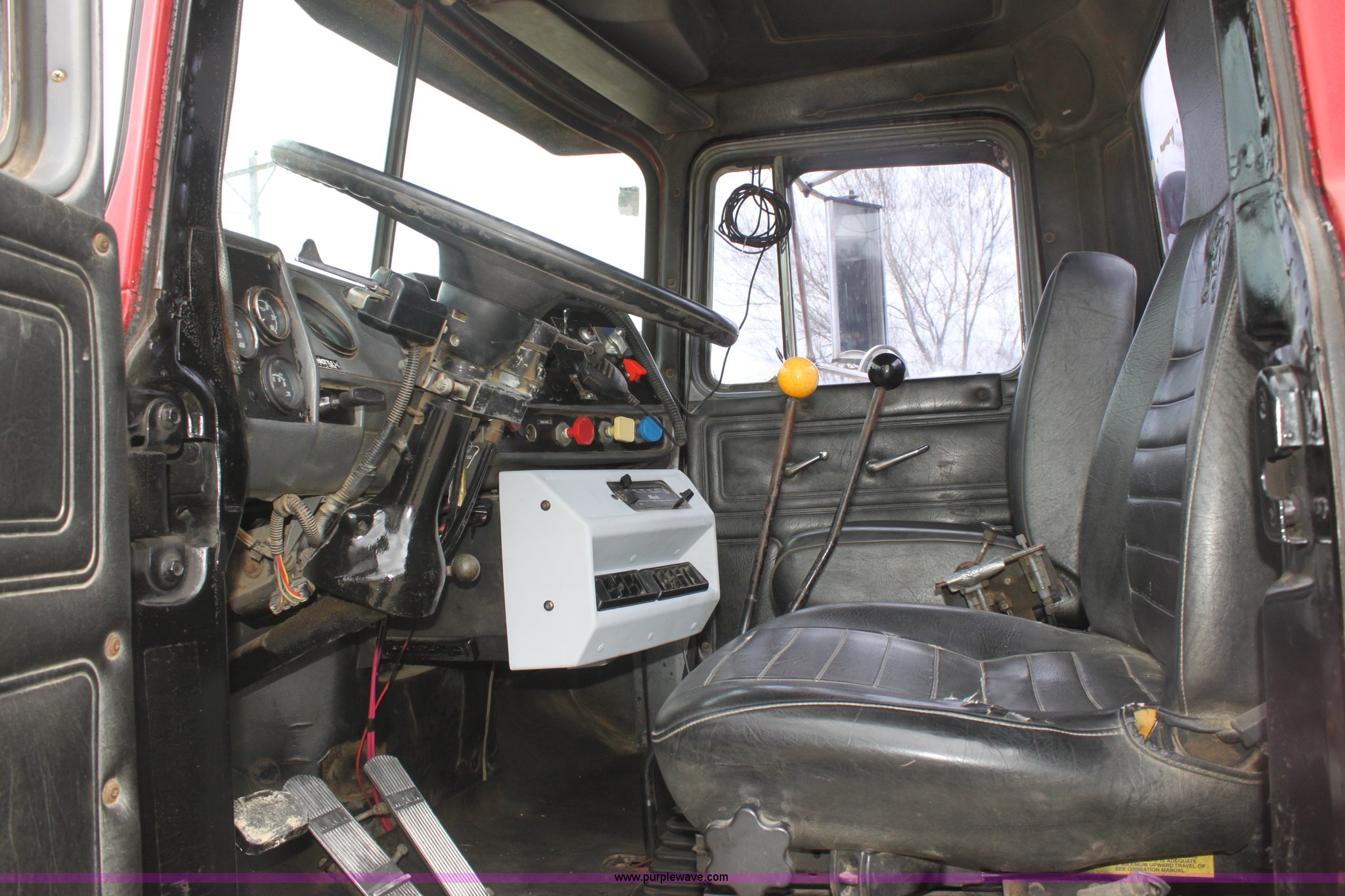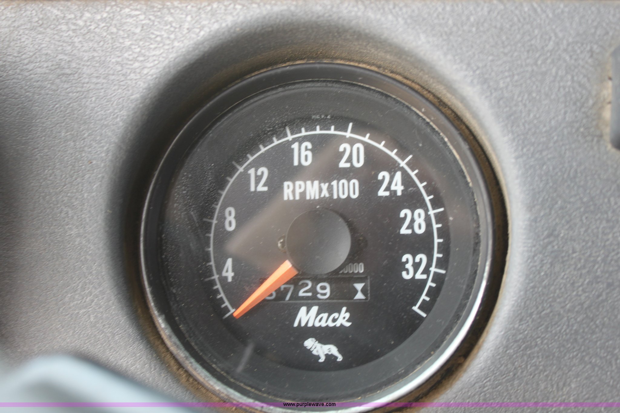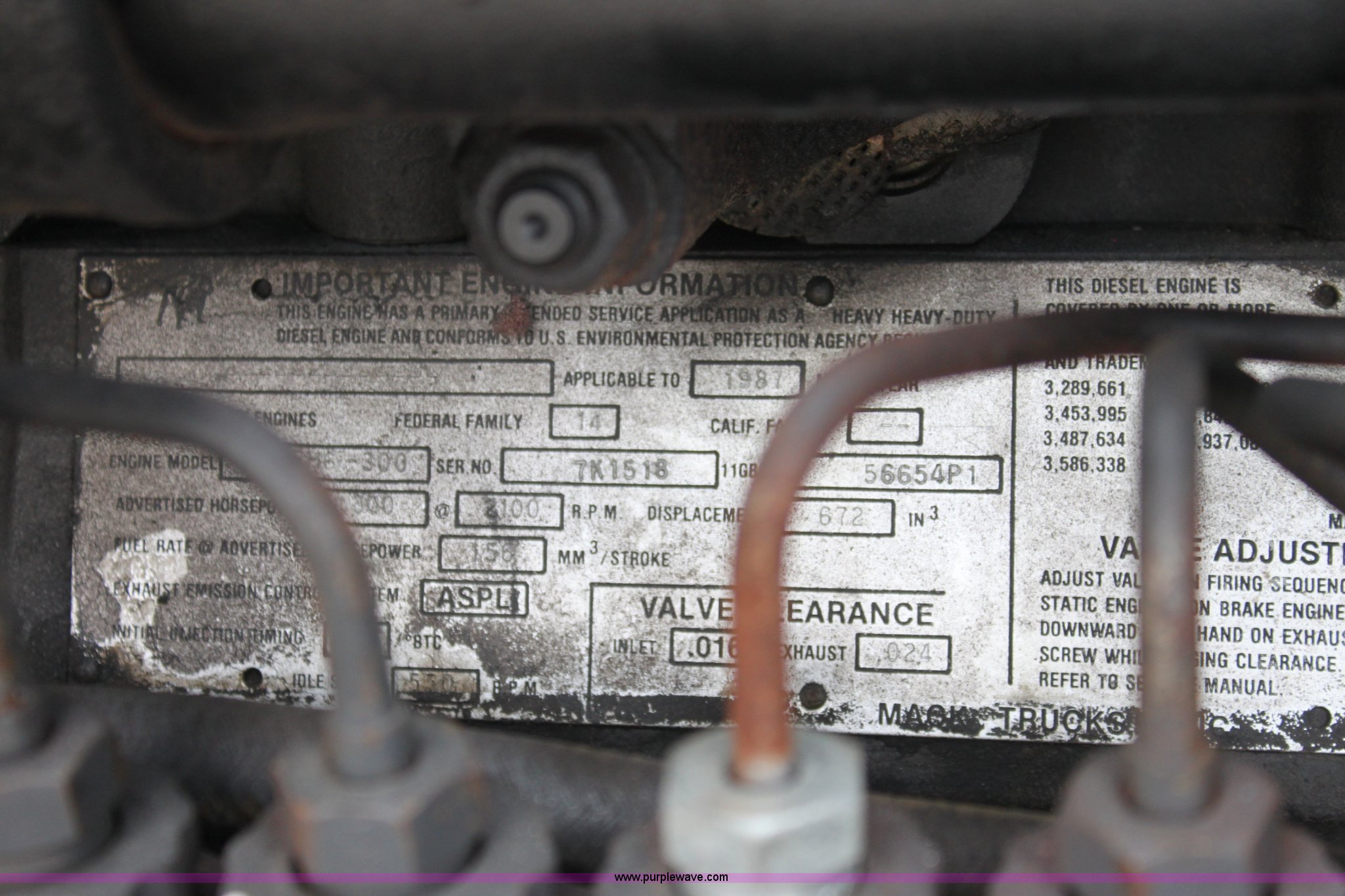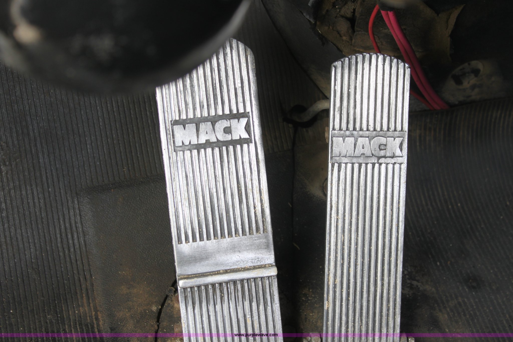 Purple Wave is selling a used Truck Tractor in Kansas. This item is a 1987 Mack R686ST semi truck with the following: 461,131 miles on odometer, Mack E6 11.0L L6 diesel engine, Manual transmission, Twin screw, Heat, Tilt, Air suspension seat, Wet kit, Right hand fuel tank converted to hydraulic tank, Exterior visor, Chrome bumper, Dual fuel tank, Adjustable rear pin hitch, Single rear exhaust stack, Spring suspension, 11R22.5 tires, Interior/exterior cosmetic damage
