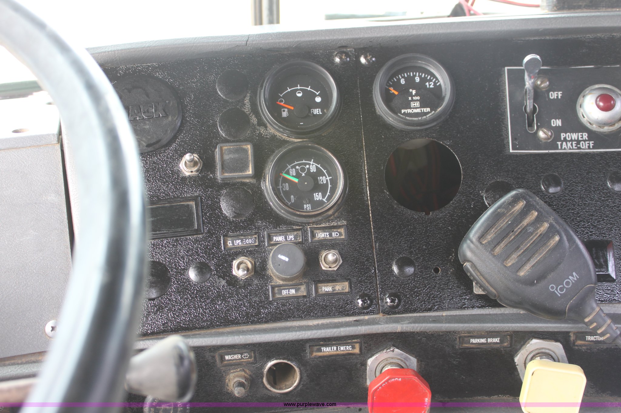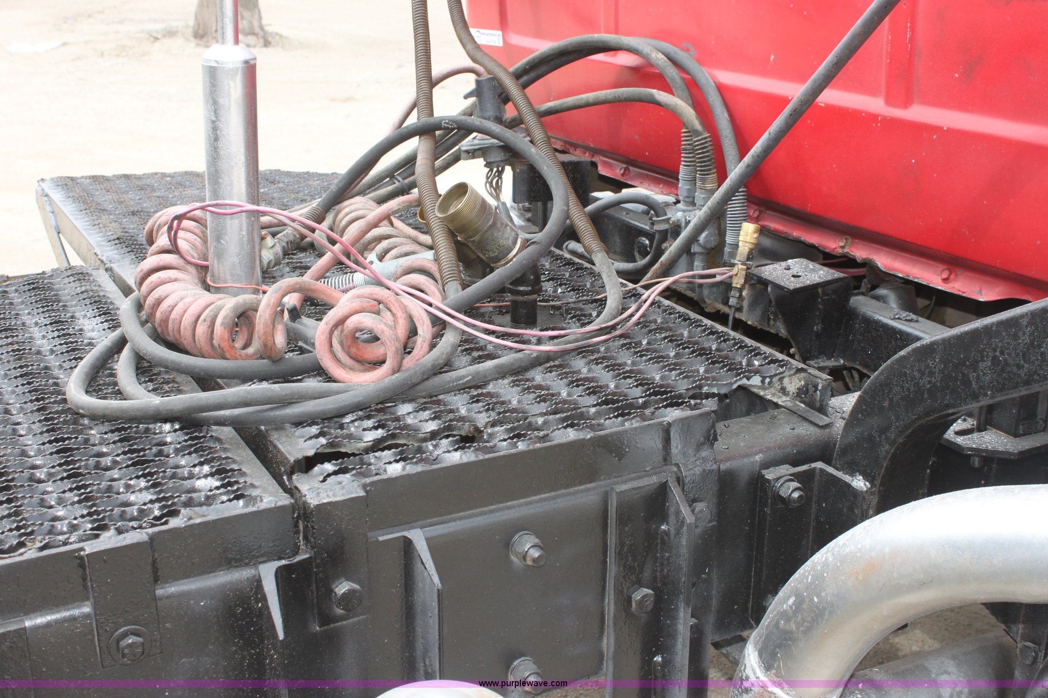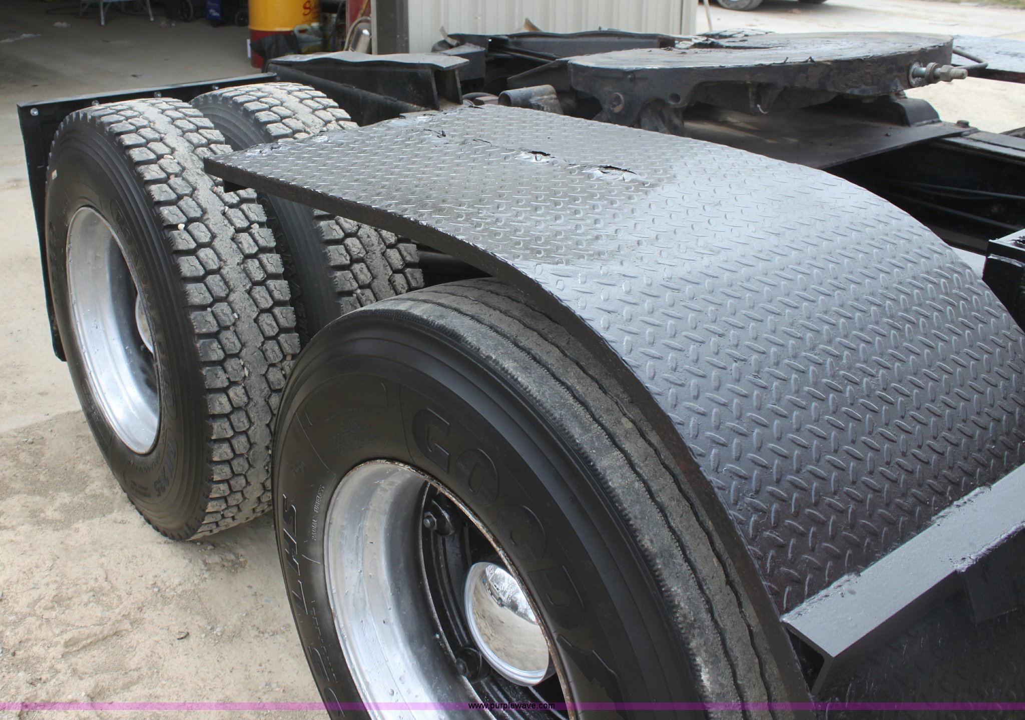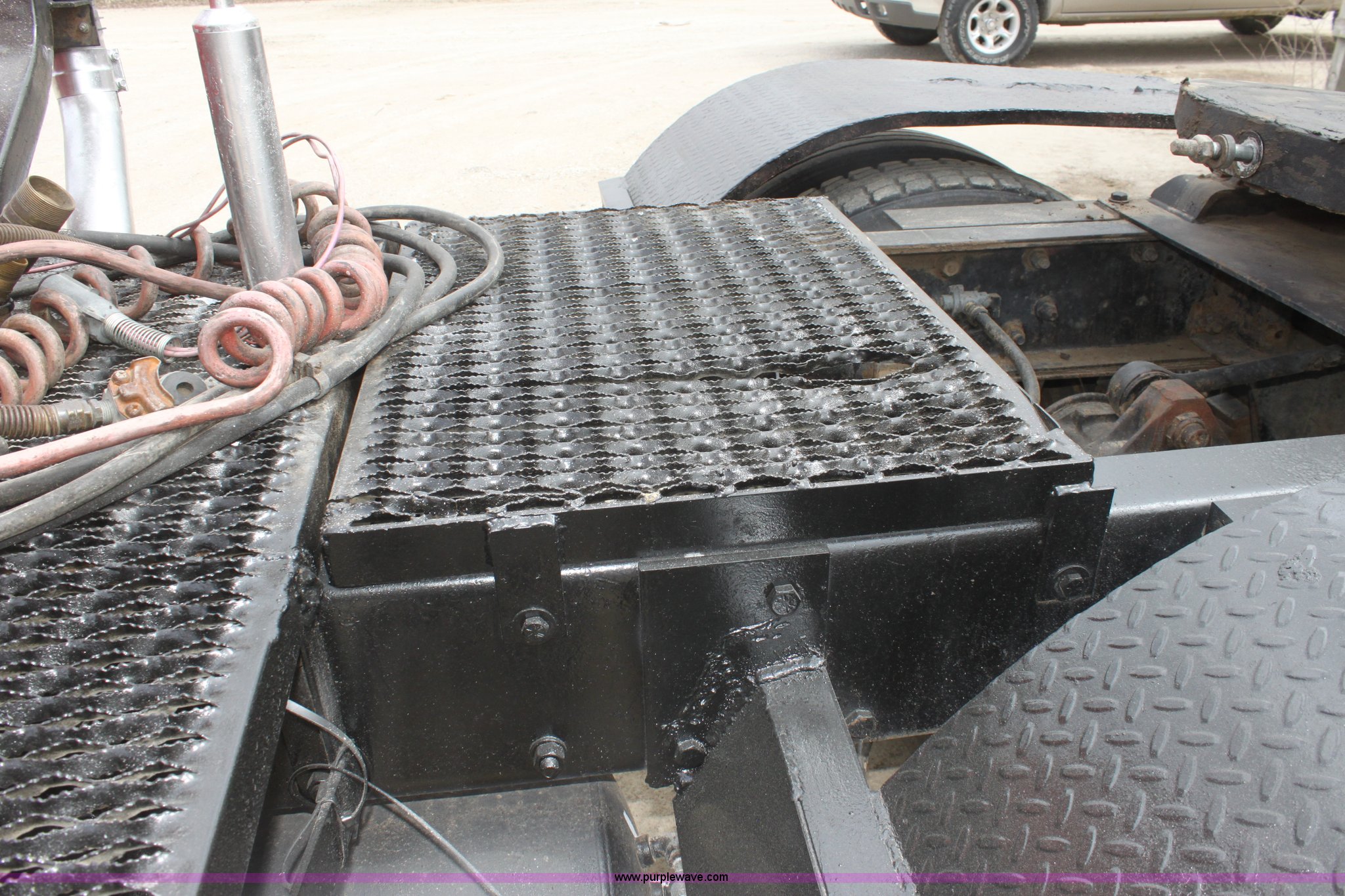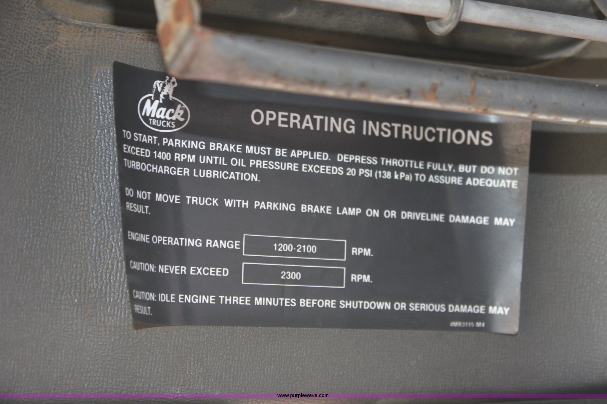 Purple Wave is selling a used Truck Tractor in Kansas. This item is a 1987 Mack R686ST semi truck with the following: 461,131 miles on odometer, Mack E6 11.0L L6 diesel engine, Manual transmission, Twin screw, Heat, Tilt, Air suspension seat, Wet kit, Right hand fuel tank converted to hydraulic tank, Exterior visor, Chrome bumper, Dual fuel tank, Adjustable rear pin hitch, Single rear exhaust stack, Spring suspension, 11R22.5 tires, Interior/exterior cosmetic damage
