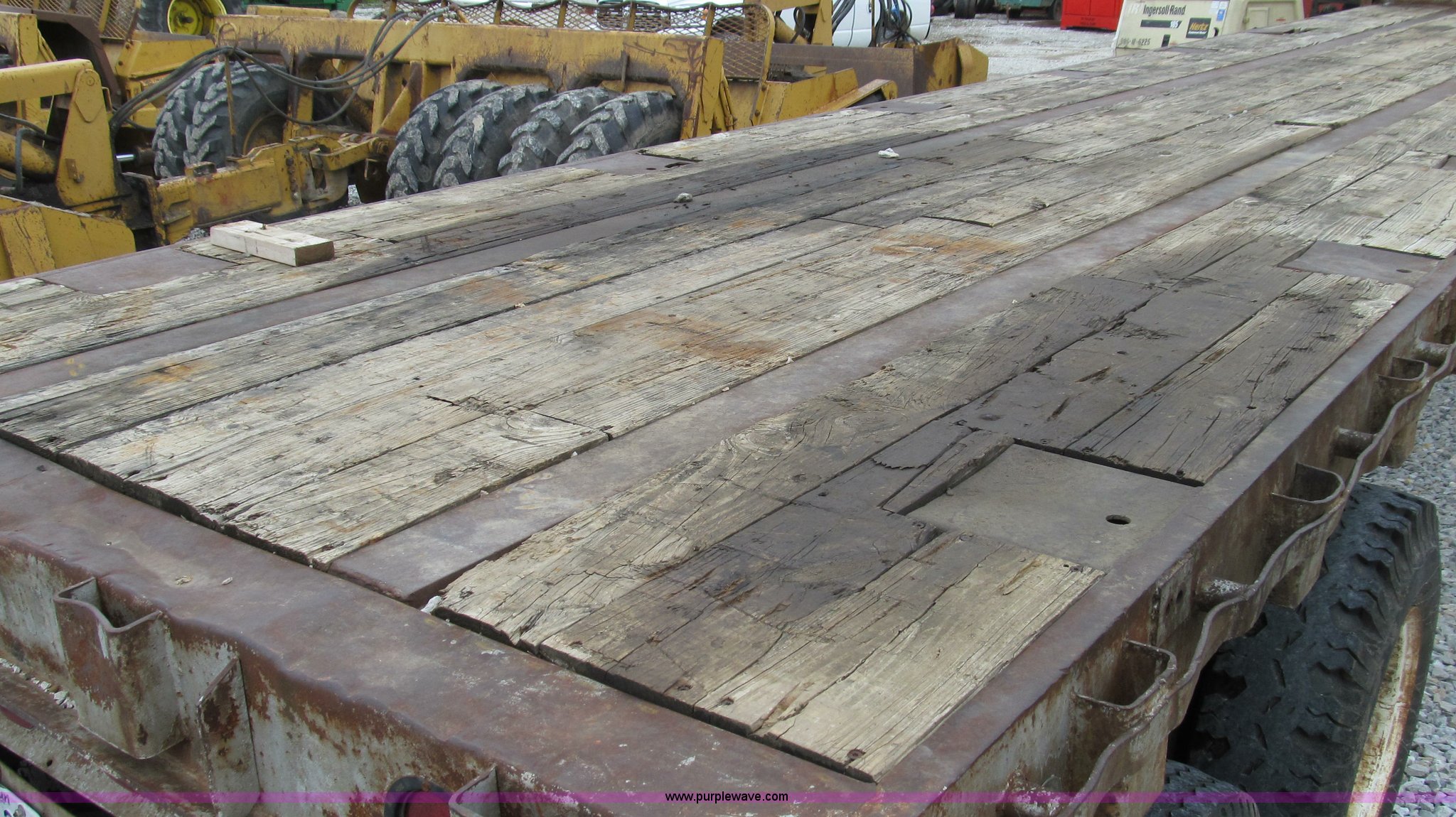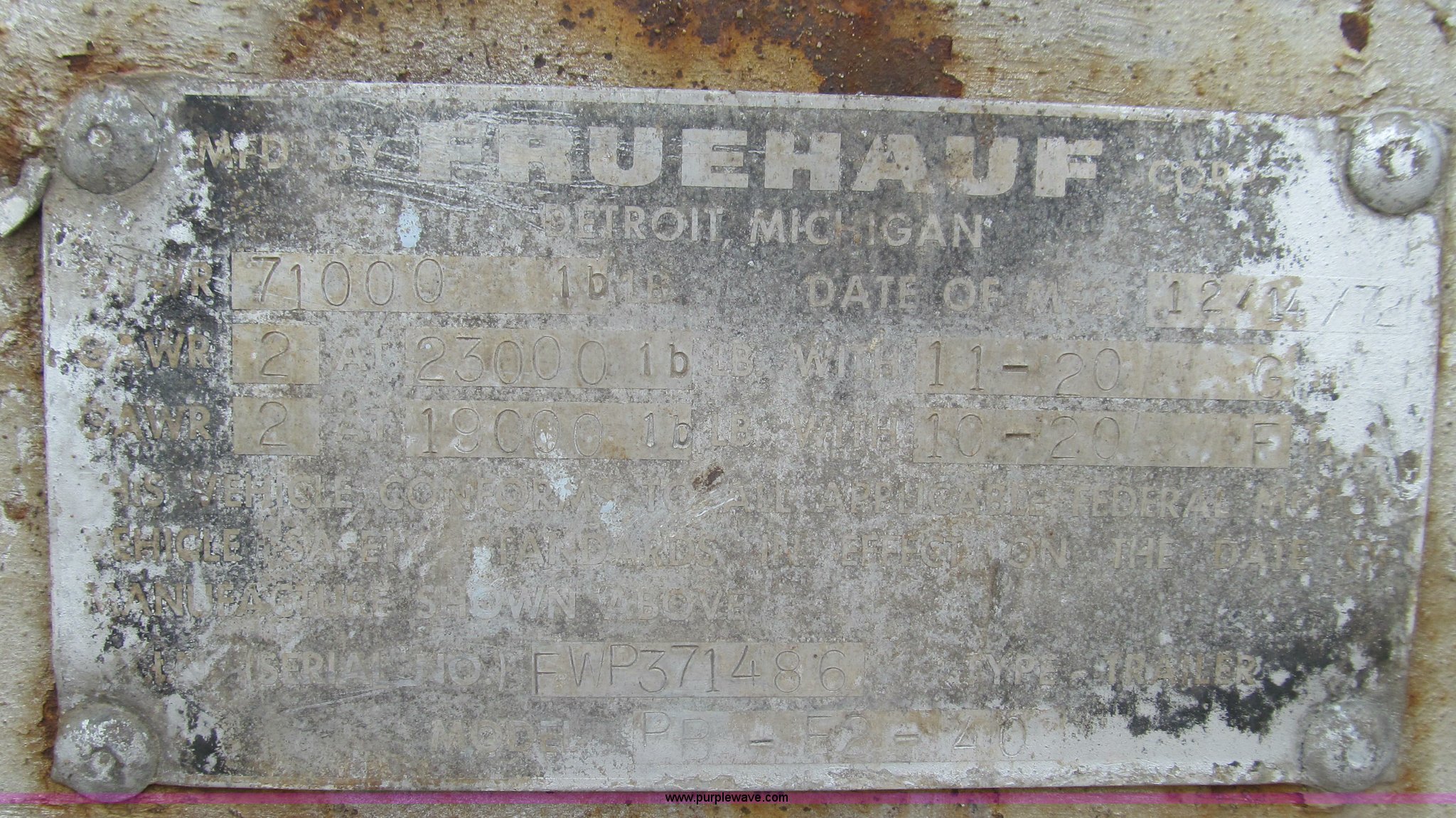 Purple Wave is selling a used Flat or Drop Deck Trailer in Missouri. This item is a 1972 Fruehauf flatbed trailer with the following: 40'L x 91"W wood deck, Sliding rear tandem axles, Spring suspension, 10.00R20 tires, GVWR 71,000 lbs, Rust on trailer frame support