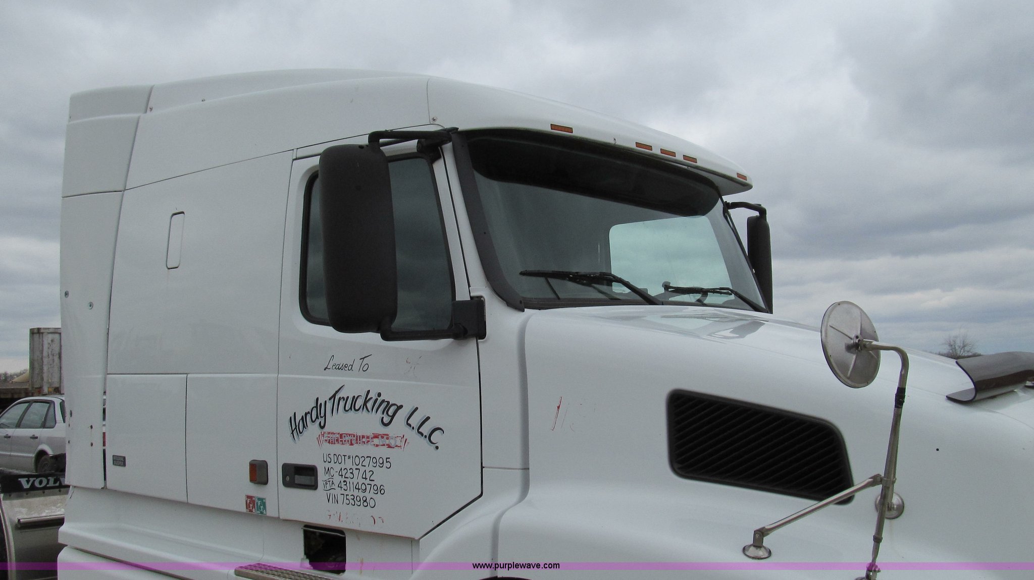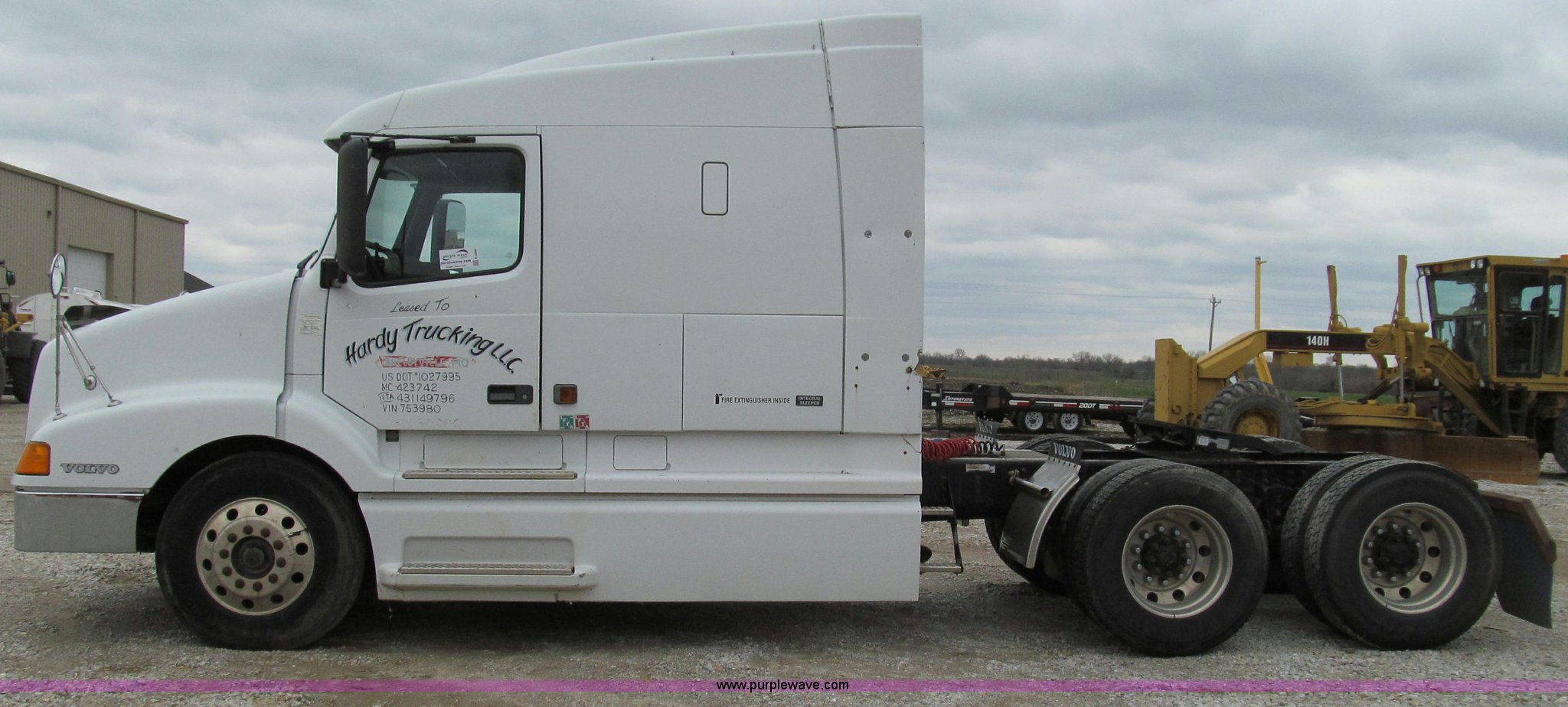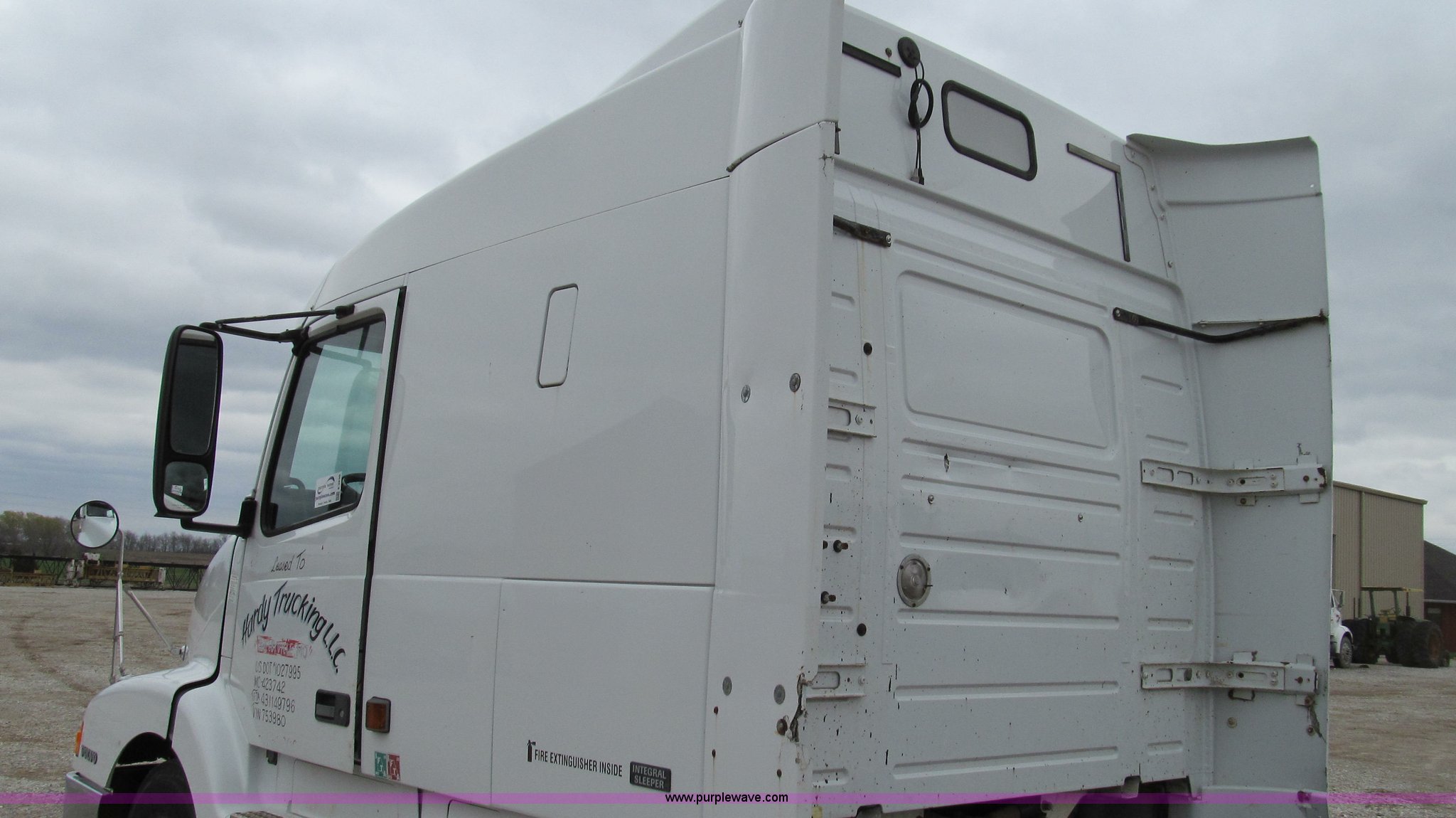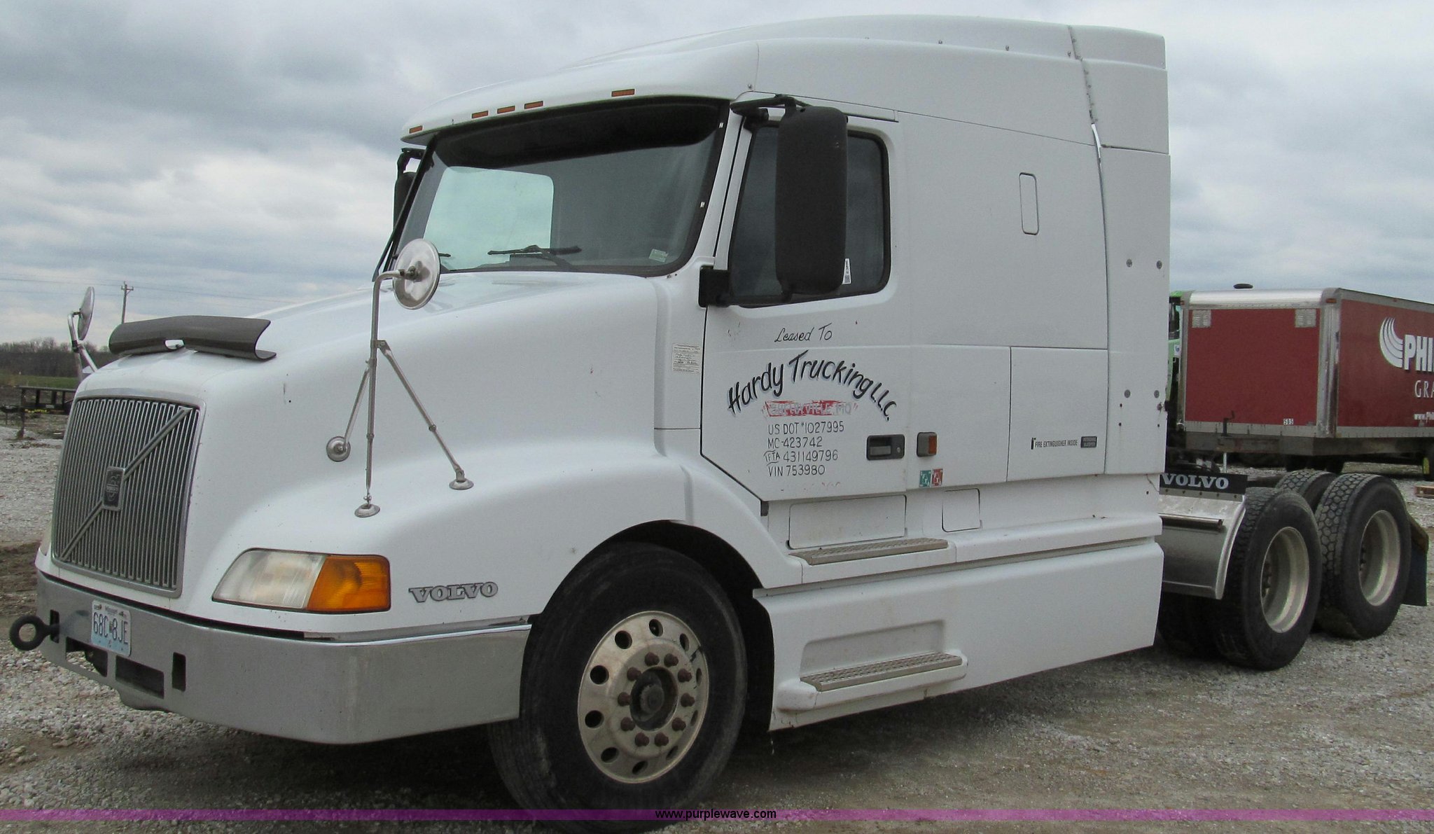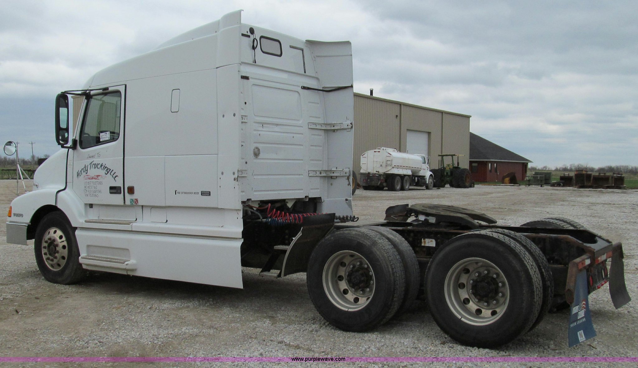 Purple Wave is selling a used Truck Tractor in Missouri. This item is a 1998 Volvo VN semi truck with the following: 652,407 miles on odometer, Volvo VE D12 12.1L L6 diesel engine, 425 HP at 1,800 RPM, Serial D12088029, Rockwell RM10-145R 10 speed manual transmission, Serial LB97021665, Twin screw, AC and heat, AM/FM/cassette, Air suspension seat, Integral sleeper, Exterior visor, Chrome bumper, Dual fuel tanks, Quarter fenders, Aluminum deck plate, Front tow hooks, Bug deflector, Air suspension, Air brakes, Jake brake, Aluminum wheels, 295/75R22.5 tires, GVWR 50,125 lbs