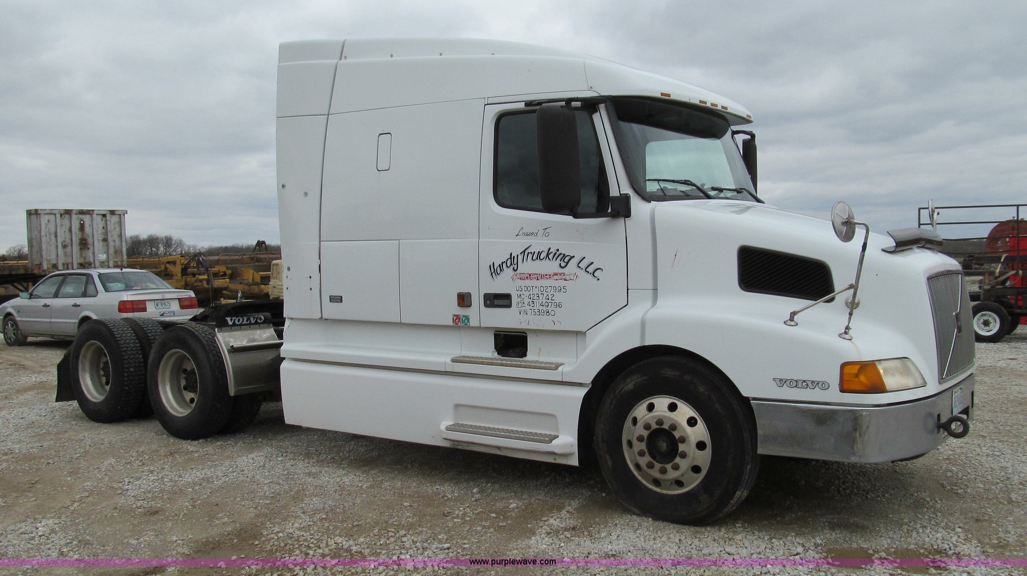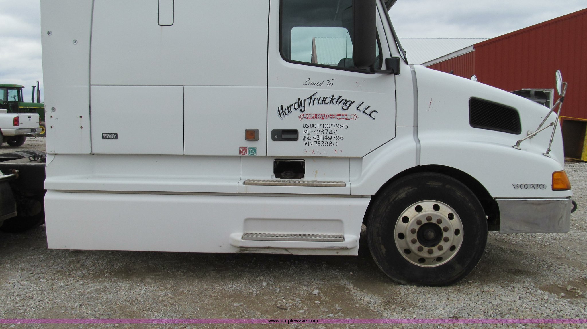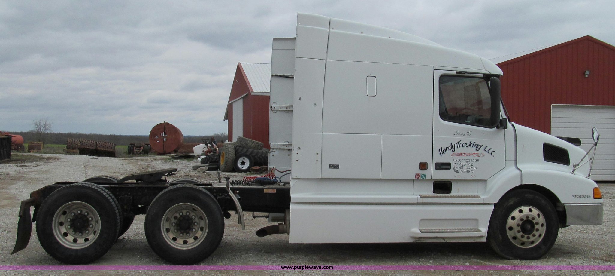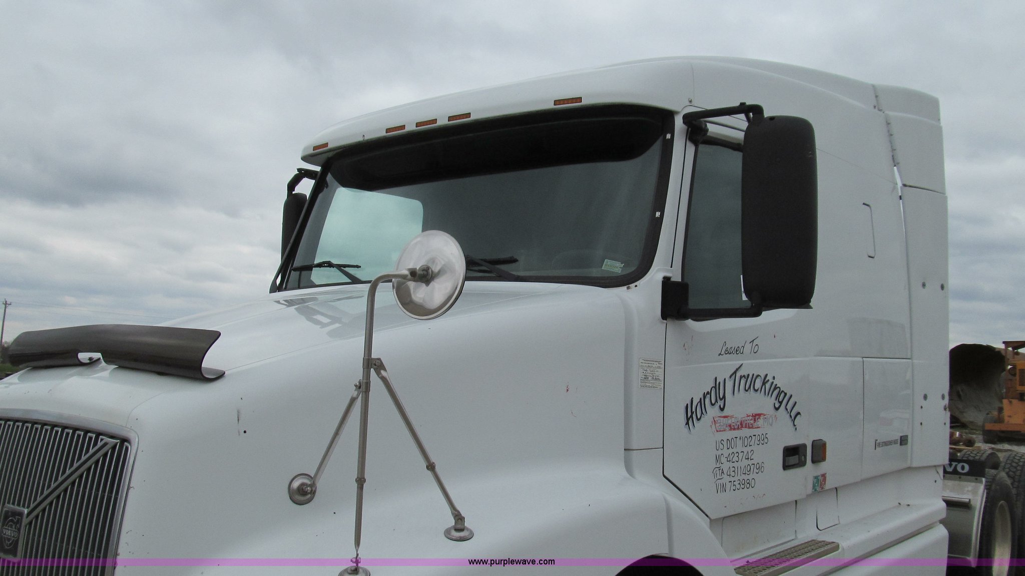 Purple Wave is selling a used Truck Tractor in Missouri. This item is a 1998 Volvo VN semi truck with the following: 652,407 miles on odometer, Volvo VE D12 12.1L L6 diesel engine, 425 HP at 1,800 RPM, Serial D12088029, Rockwell RM10-145R 10 speed manual transmission, Serial LB97021665, Twin screw, AC and heat, AM/FM/cassette, Air suspension seat, Integral sleeper, Exterior visor, Chrome bumper, Dual fuel tanks, Quarter fenders, Aluminum deck plate, Front tow hooks, Bug deflector, Air suspension, Air brakes, Jake brake, Aluminum wheels, 295/75R22.5 tires, GVWR 50,125 lbs