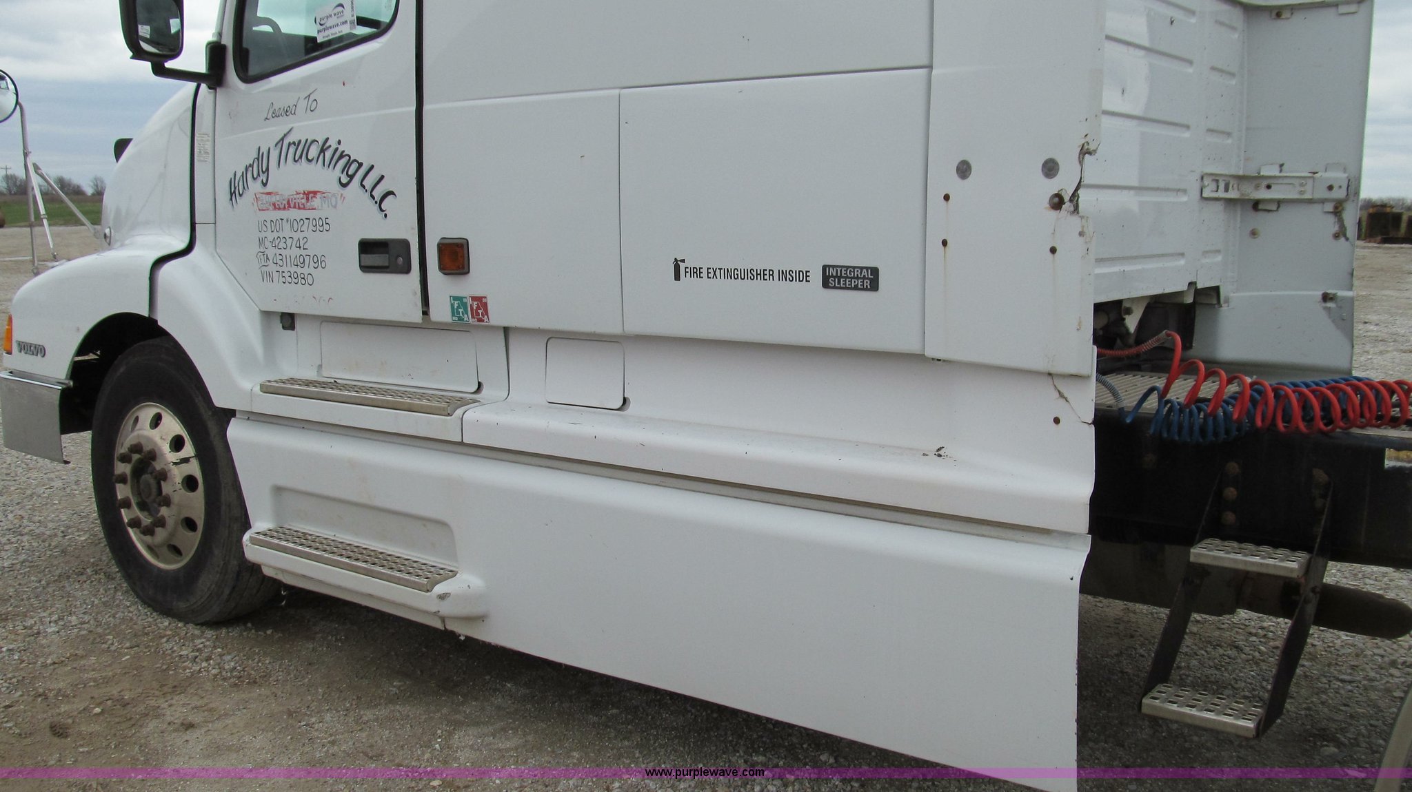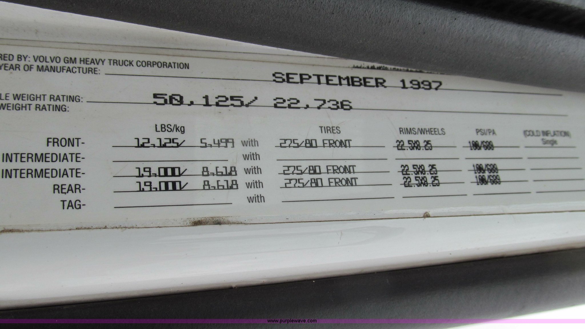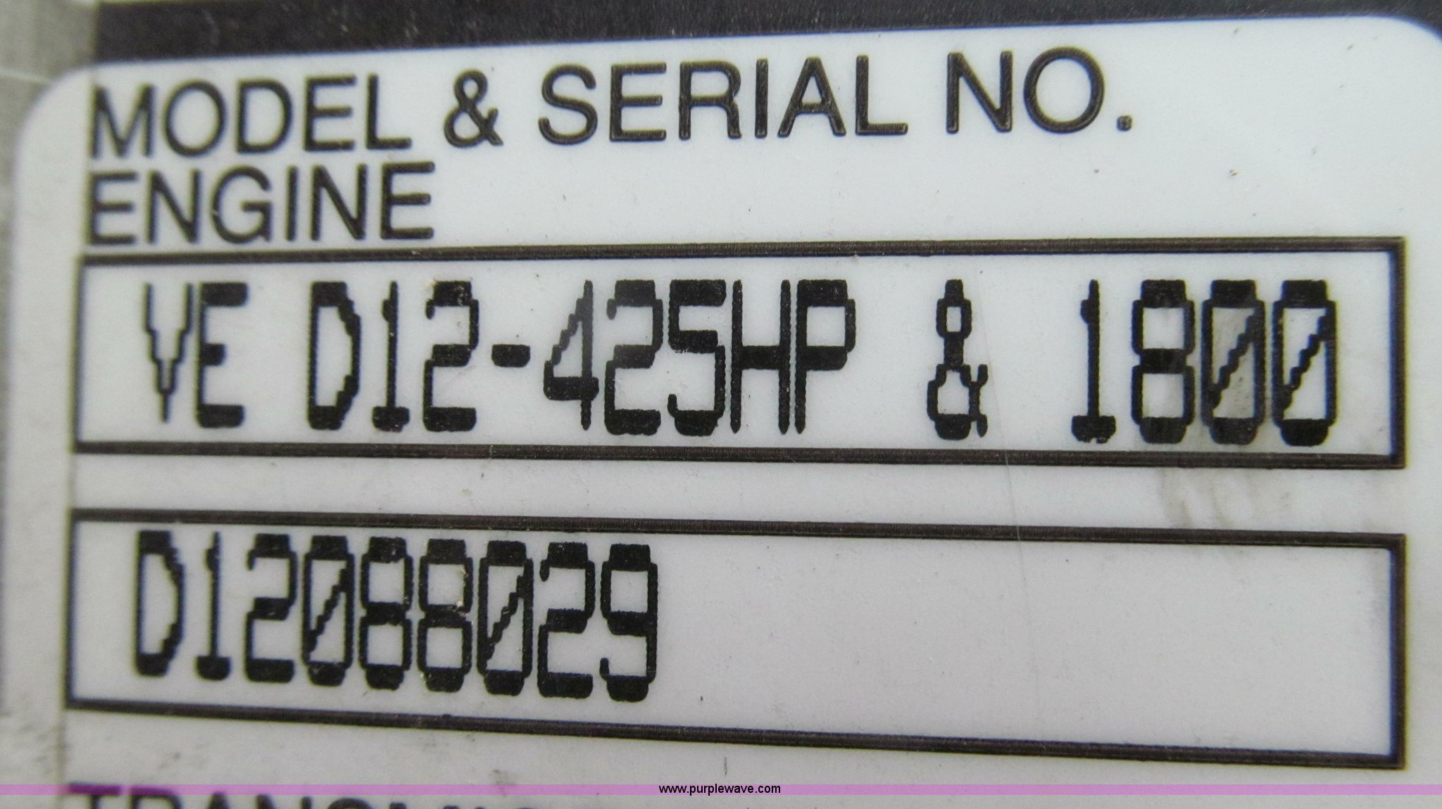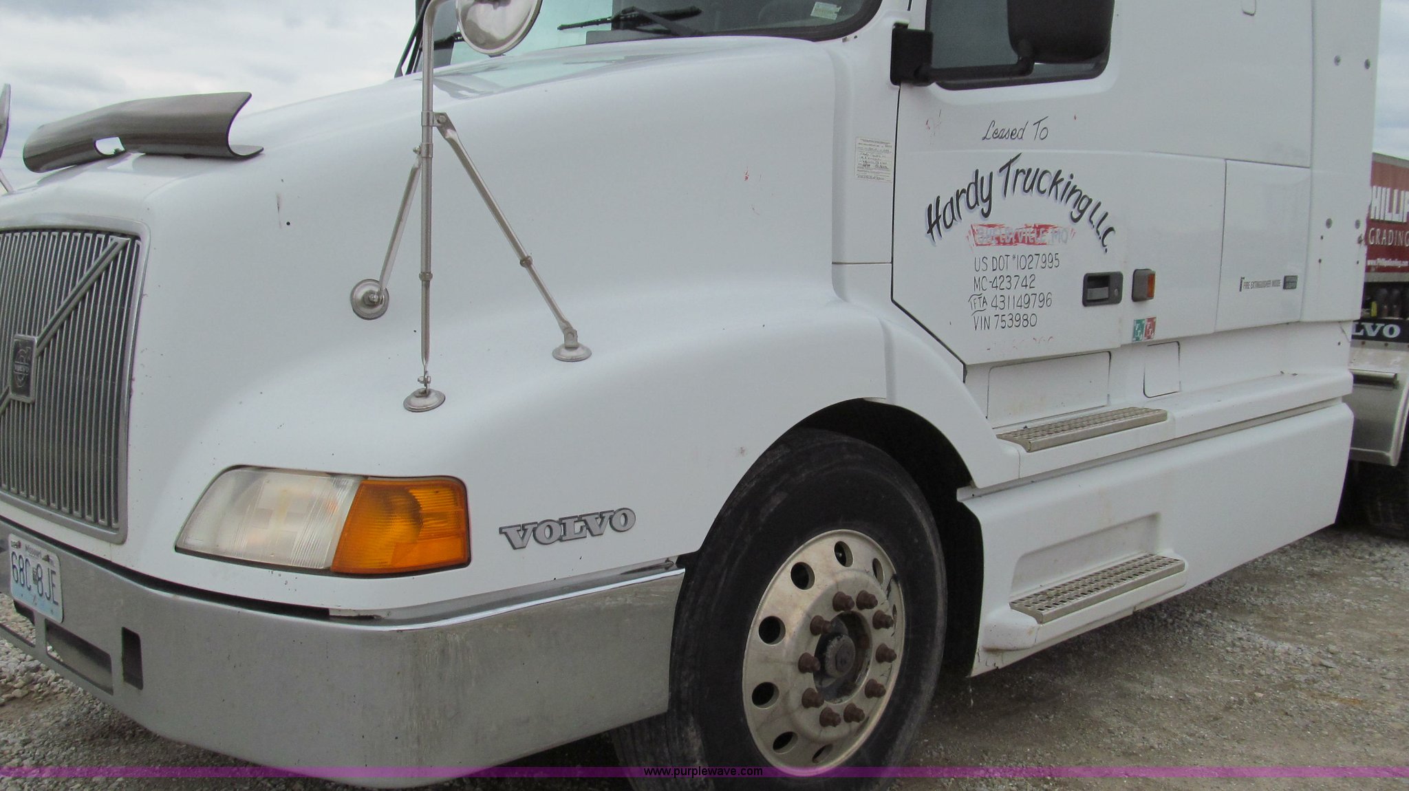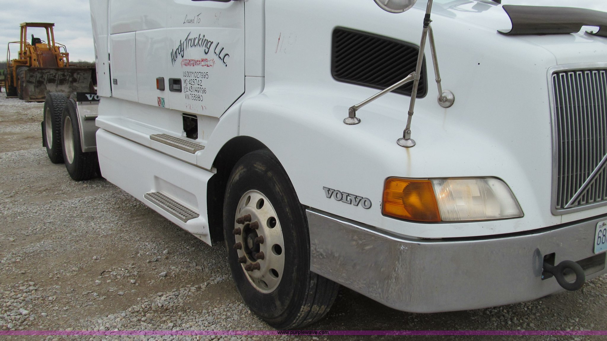 Purple Wave is selling a used Truck Tractor in Missouri. This item is a 1998 Volvo VN semi truck with the following: 652,407 miles on odometer, Volvo VE D12 12.1L L6 diesel engine, 425 HP at 1,800 RPM, Serial D12088029, Rockwell RM10-145R 10 speed manual transmission, Serial LB97021665, Twin screw, AC and heat, AM/FM/cassette, Air suspension seat, Integral sleeper, Exterior visor, Chrome bumper, Dual fuel tanks, Quarter fenders, Aluminum deck plate, Front tow hooks, Bug deflector, Air suspension, Air brakes, Jake brake, Aluminum wheels, 295/75R22.5 tires, GVWR 50,125 lbs
