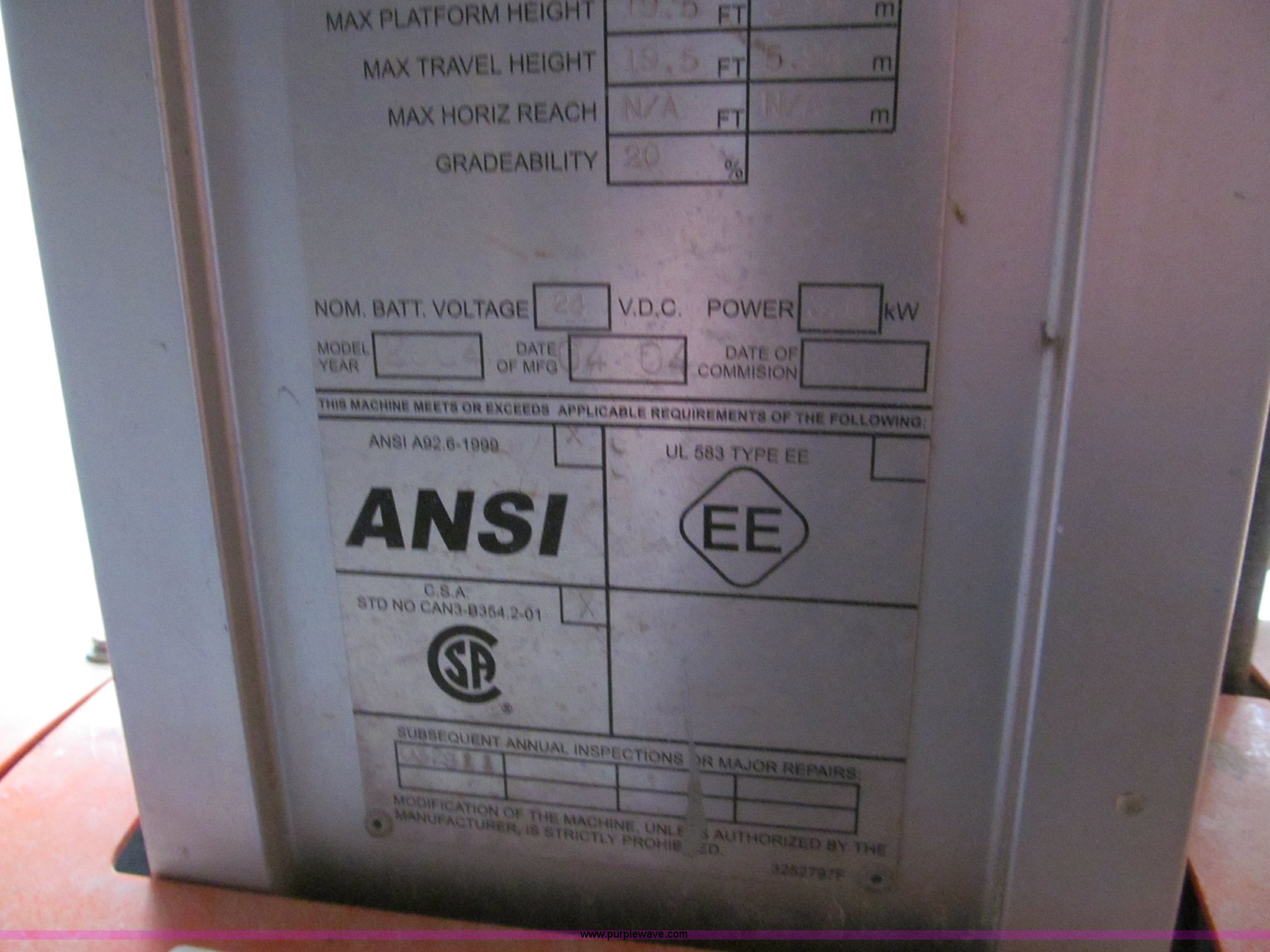 2004 JLG 20DVL one man lift has sold in Pleasant Valley, Missouri for $2255. Item E5859 sold on May 9th, 2013.