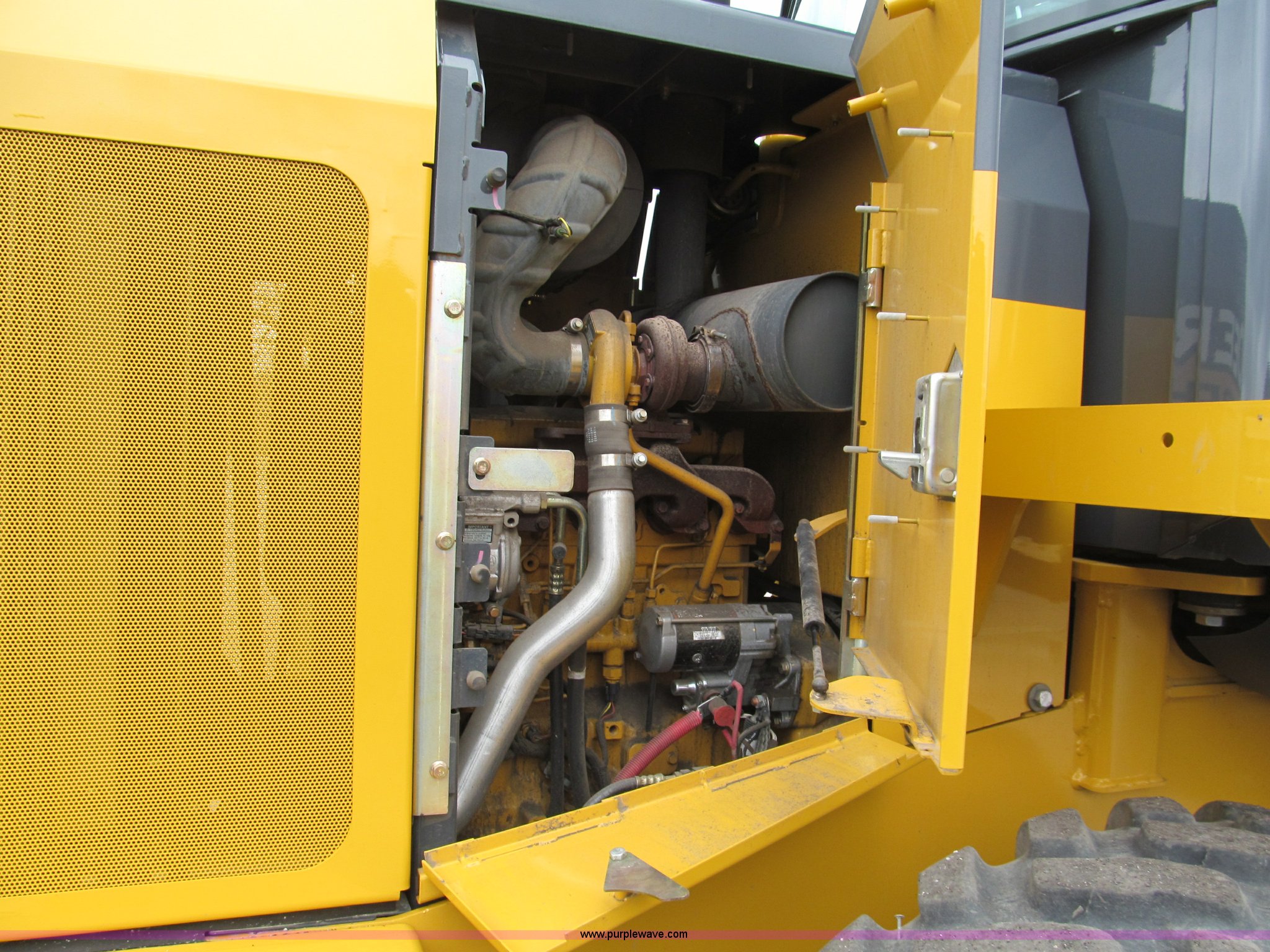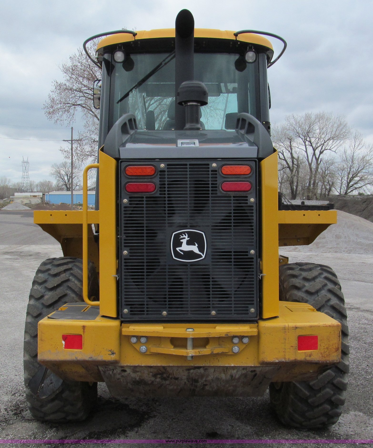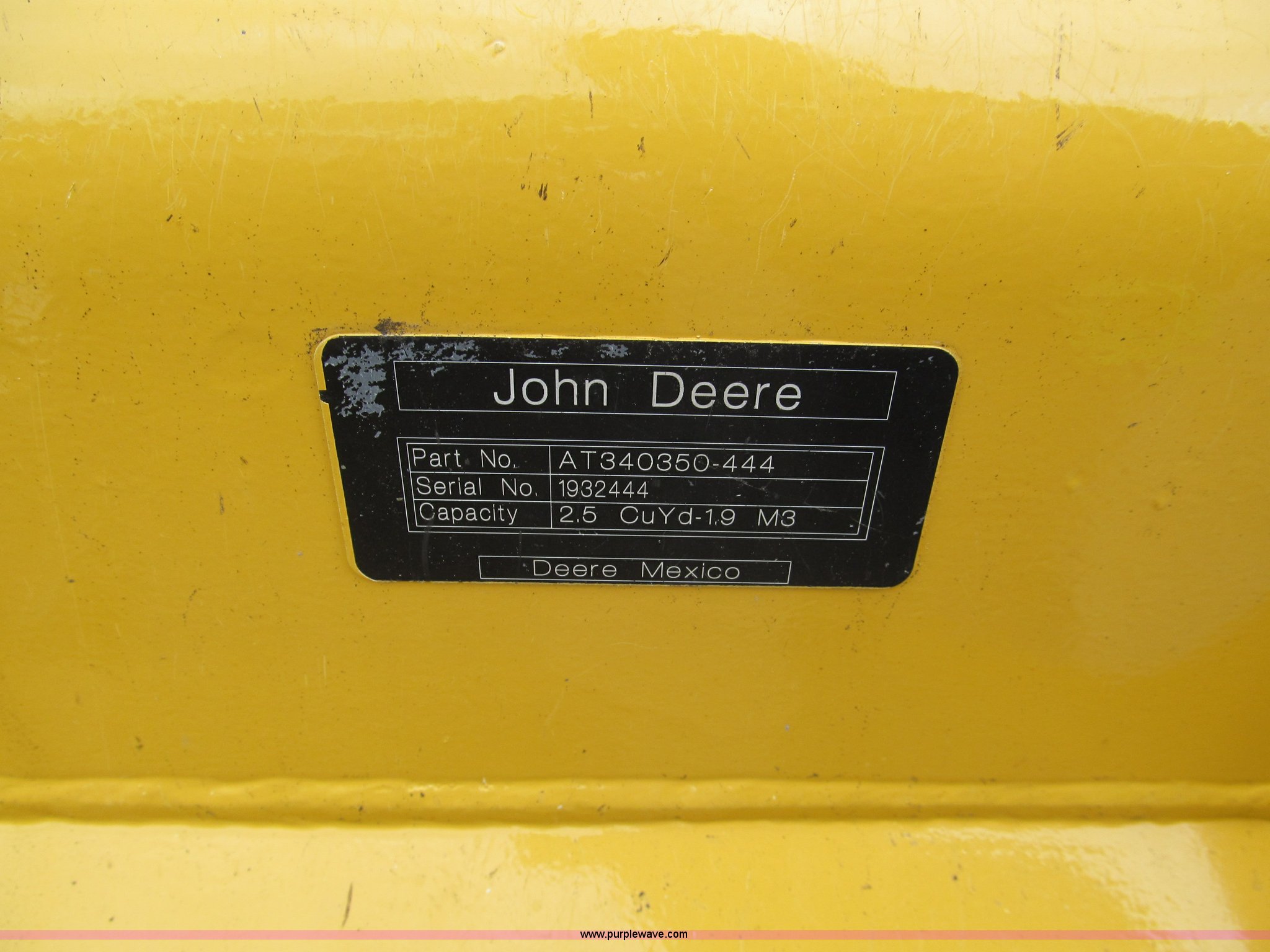 Purple Wave is selling a used Wheel Loader in Kansas. This item is a 2011 John Deere 444K articulated wheel loader with the following: 479 actual hours, John Deere Tier III four cylinder turbo diesel engine, 124 HP, Electronic transmission, Differential lock, Enclosed cab, AC and heat, AM/FM/CD, Air suspension seat, Front and rear work lights, Ride control system, Block heater, Hydraulic quick attach, Model 4442STD, 100"W bucket, 2.5 cu. yd. capacity, Serial 1932444, 17.5R25 tires, Soft foam-filled, 24,372 lbs. base operating weight, Serial 1DW44KZCBD637008