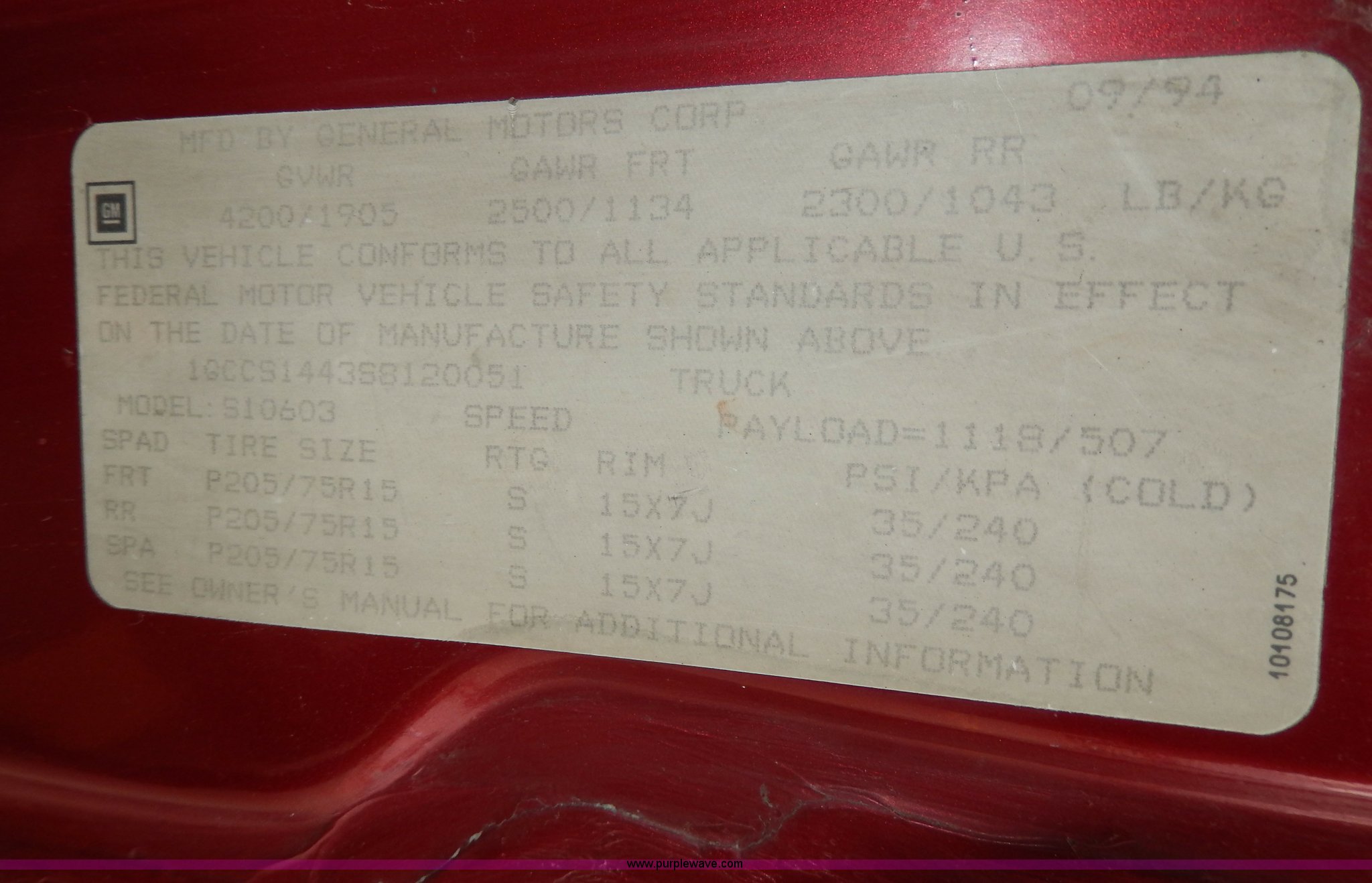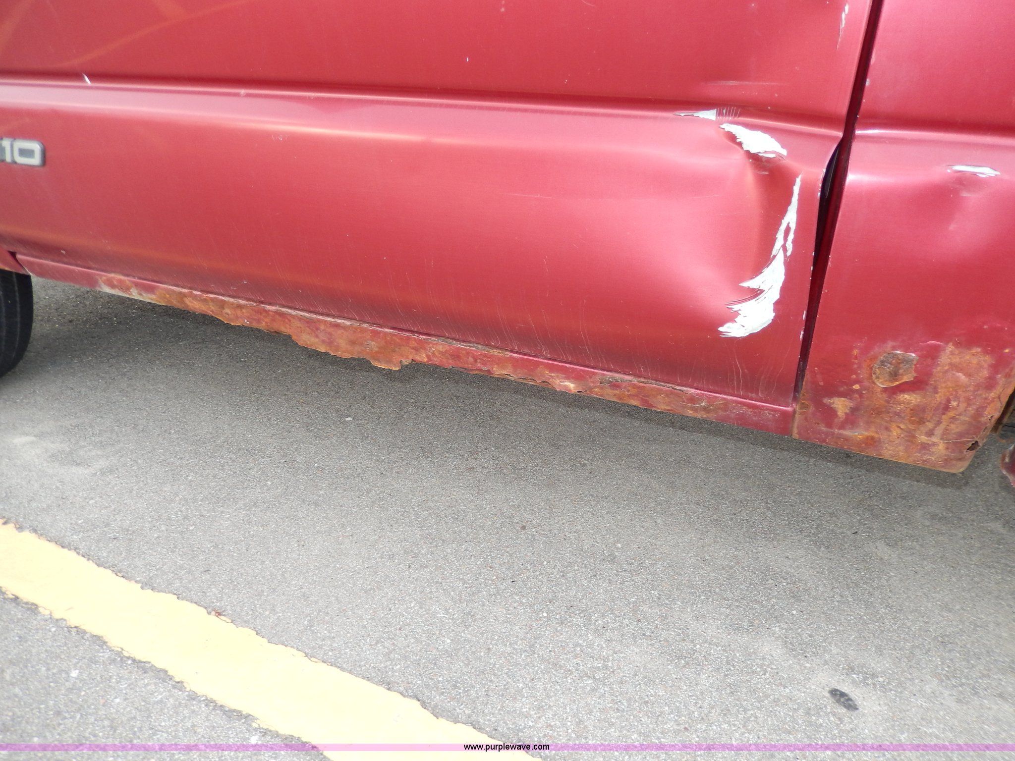 Purple Wave is selling a used Passenger Vehicle in Kansas. This item is a 1995 Chevrolet S10 pickup truck with the following: 192,520 miles on odometer, 2.2L L4 OHV 8V gas engine, Five speed manual transmission, AC and heat, AM/FM, Manual windows and locks, Trailer wiring, Ball hitch, 215/70R15 tires, Windshield cracked, Dash cracked, Interior/exterior cosmetic damage, Body rust, Paint peeling, Seats damaged, Driver's side mirror is damaged, Turn signal switch needs replaced, First gear grinds, Spare tire