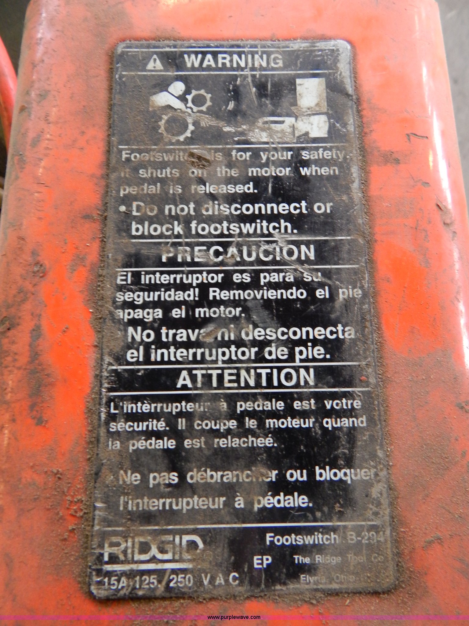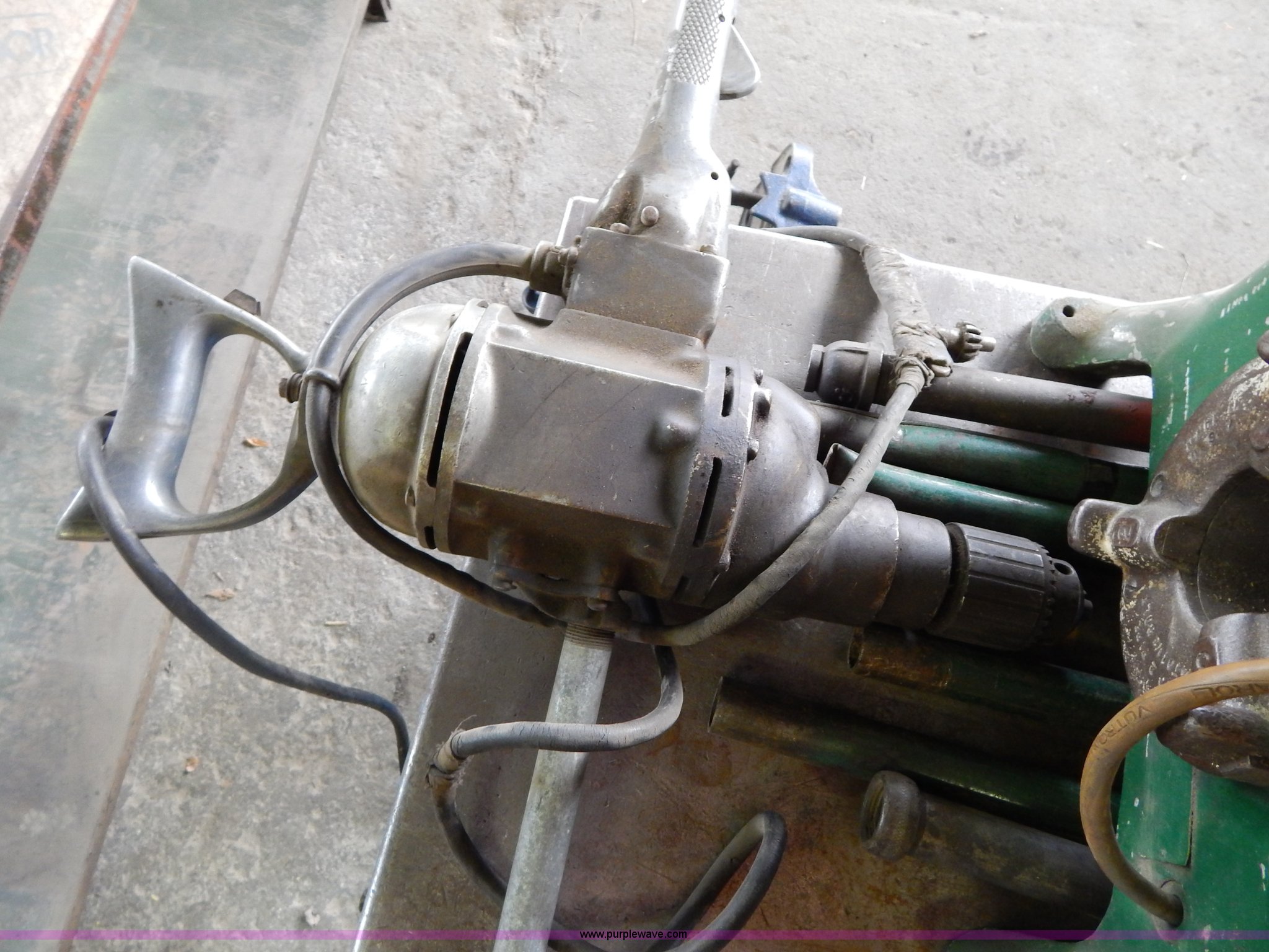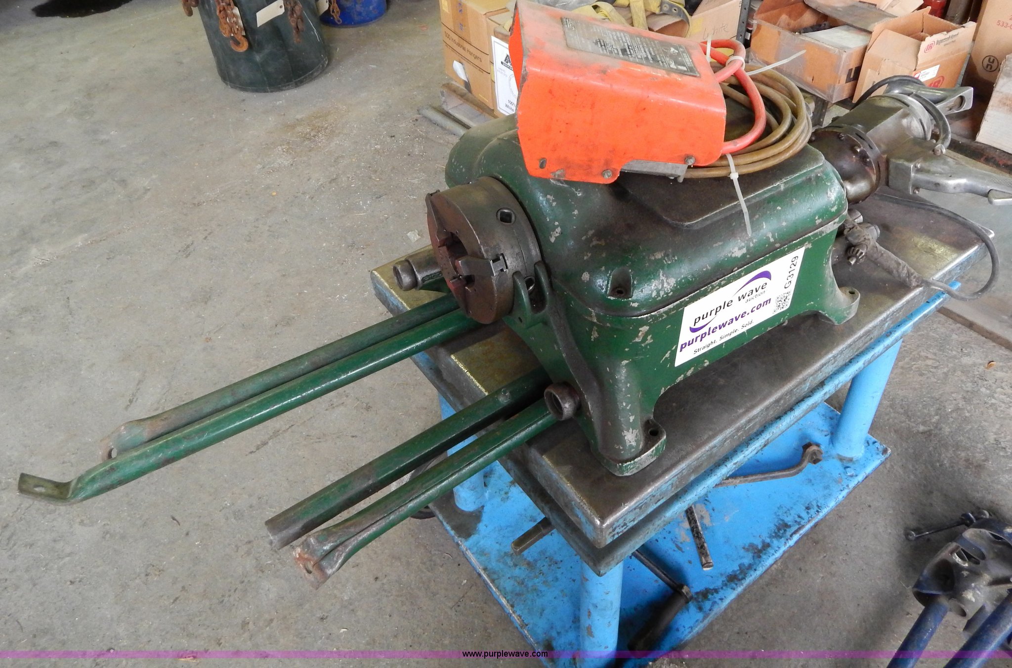 Purple Wave is selling a used Tools in Missouri. This item is a Ridgid 400 pipe threader with the following: 120V, Tripod, Cart is not included