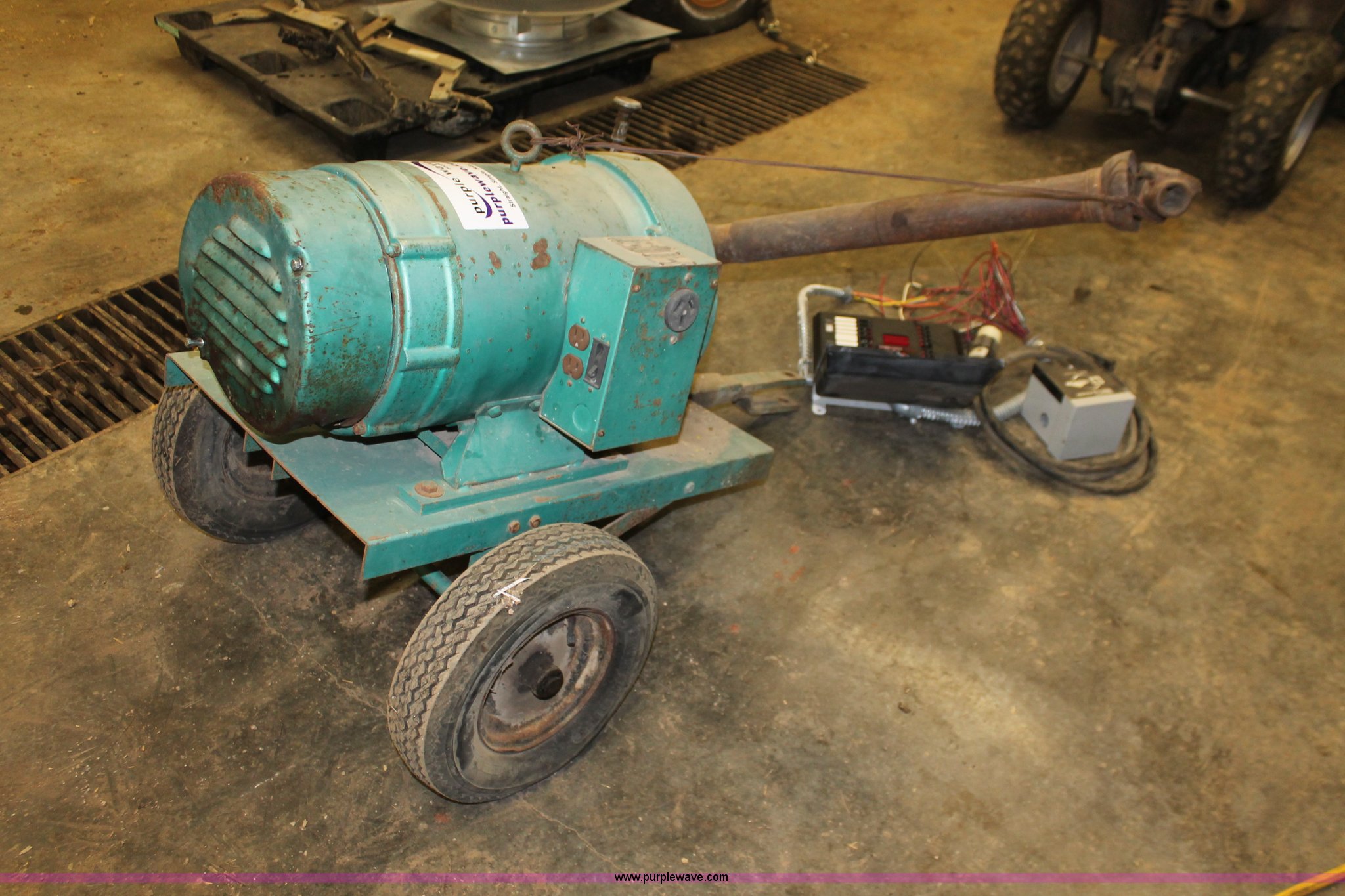 Purple Wave is selling a used Generator Set in Kansas. This item is a Onan 15UT generator with the following: Model 15UT-5DN61-1A, 540 PTO, 15 kW, Three phase, 120/240V, Pin hitch, Briggs & Stratton 7,500 watt emergency power transfer system, 4.80-8 tires, Serial 35C818163