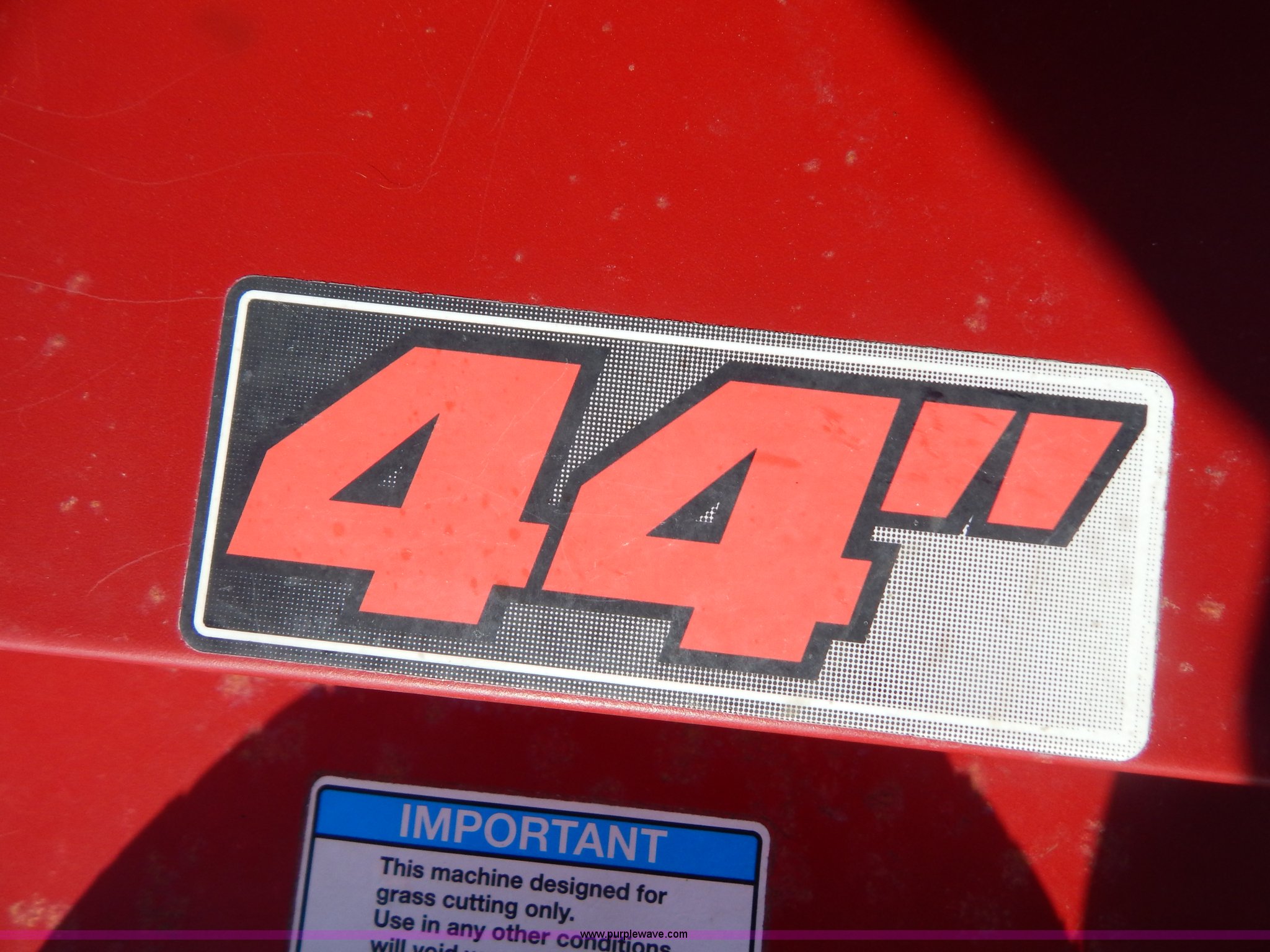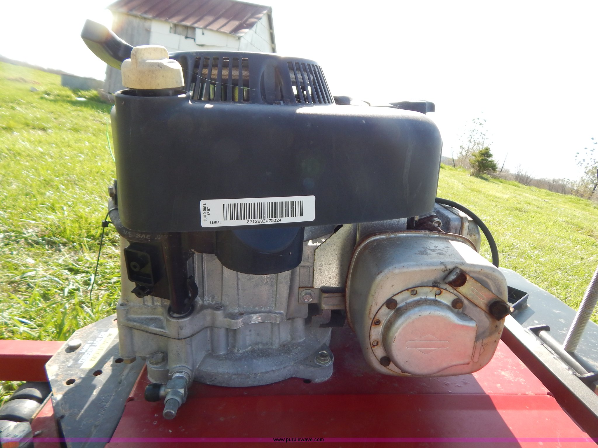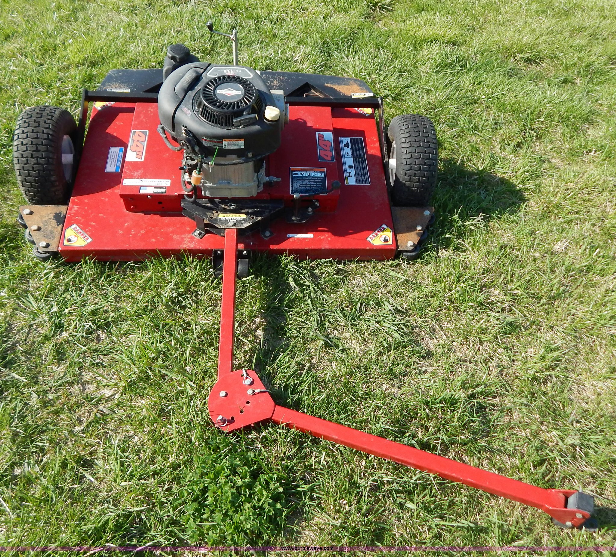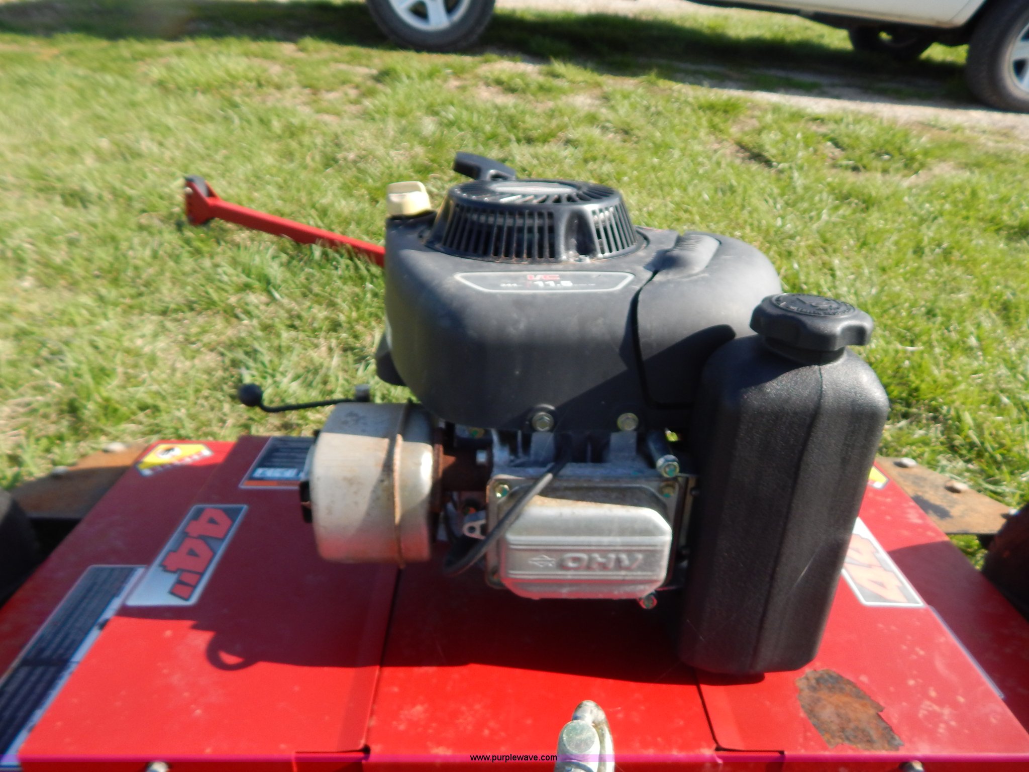 Purple Wave is selling a used Lawn and Garden in Missouri. This item is a Swisher T11544 pull behind mower with the following: 44" cut, Briggs & Stratton 11.5 HP gas engine, Angled receiver, 5x6-6 tires, Serial L108-010044