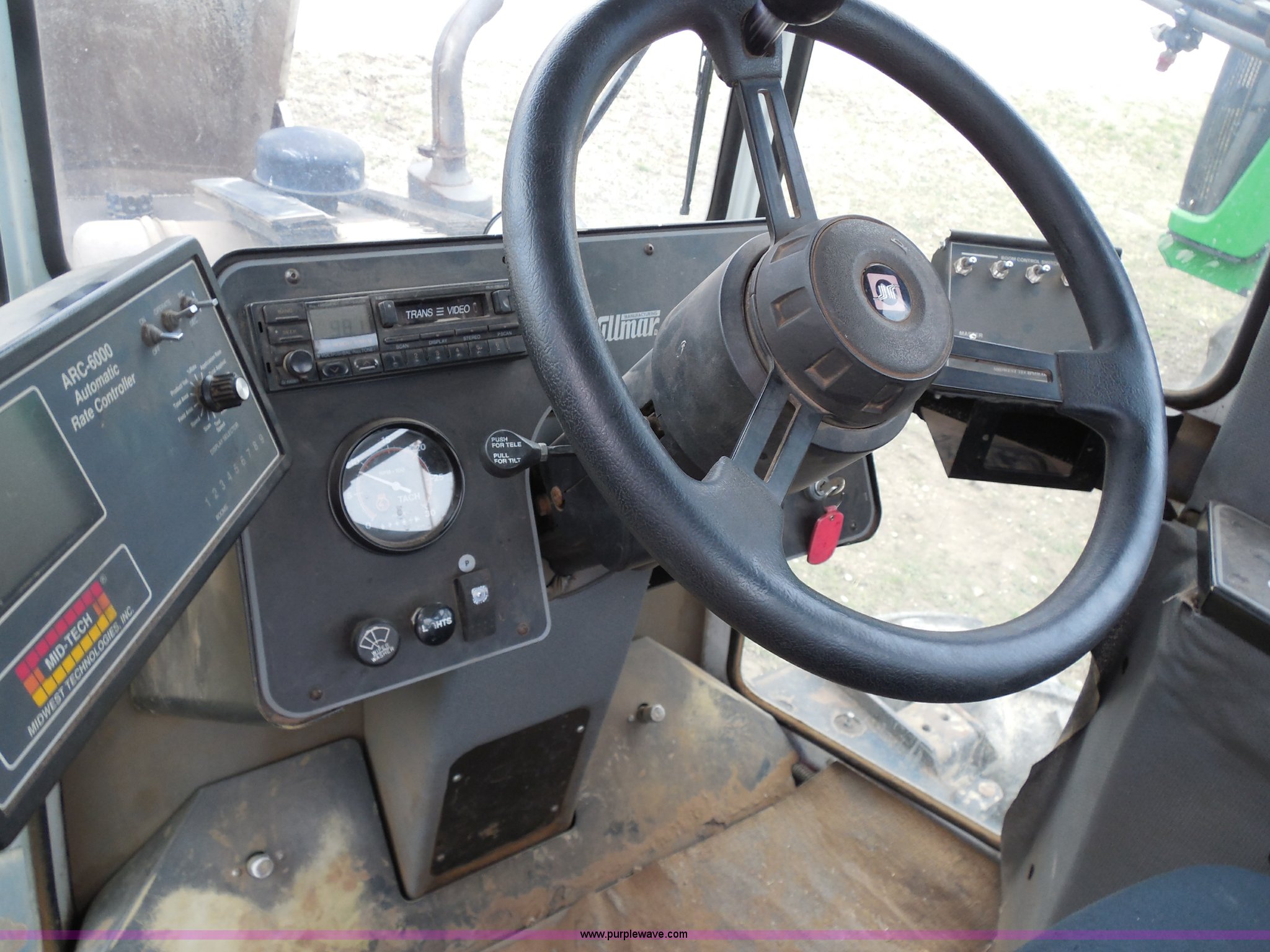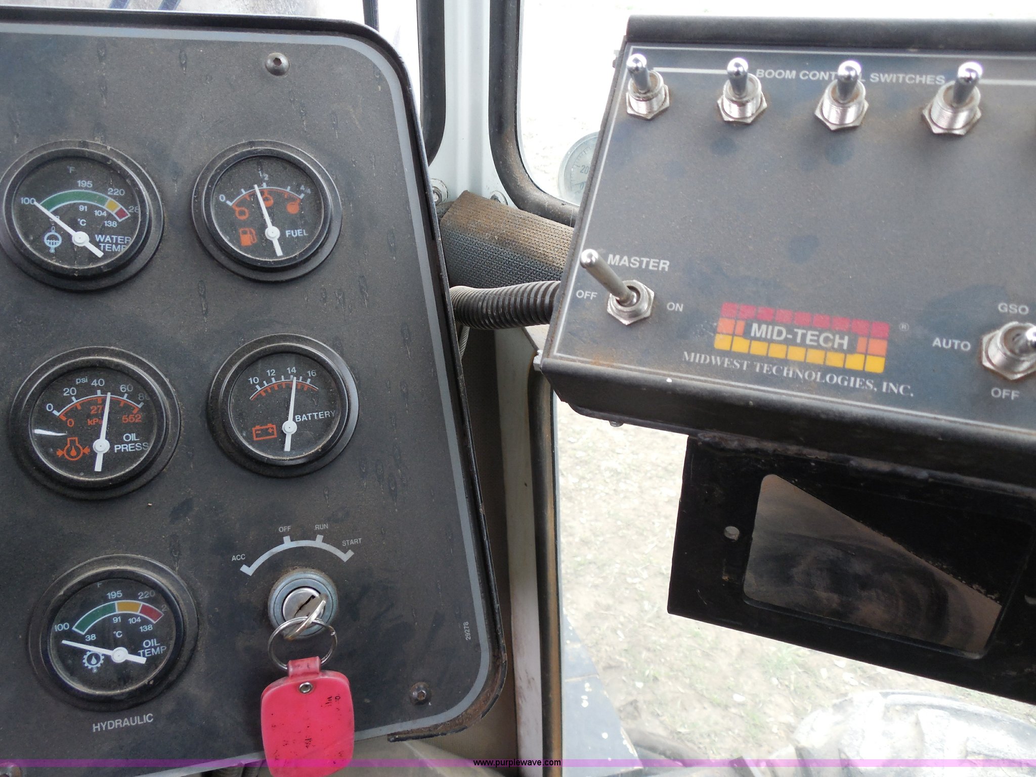 Purple Wave is selling a used Applicator Self Propelled in Kansas. This item is a Willmar 745 Air Ride self-propelled sprayer with the following: 2,401 hours on meter, John Deere 4039 TF001 four cylinder diesel engine, Powershift transmission, 6F-1R gears, All wheel drive, Enclosed cab, AC and heat, AM/FM/cassette, Air suspension seat, Tilt steering, Mid Tech ARC-6000 auto rate control monitor, Mid Tech Master boom control monitor, Joystick boom control, Foam marker, Independent left and right boom control, Wheel track control, Approximately 500 gallon poly tank, Five gallon mix tank, 50 gallon concentrate tank, Approximately 60' boom, 12.4-24 tires