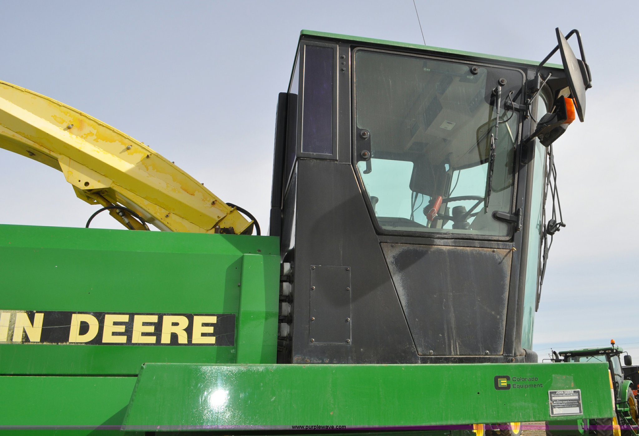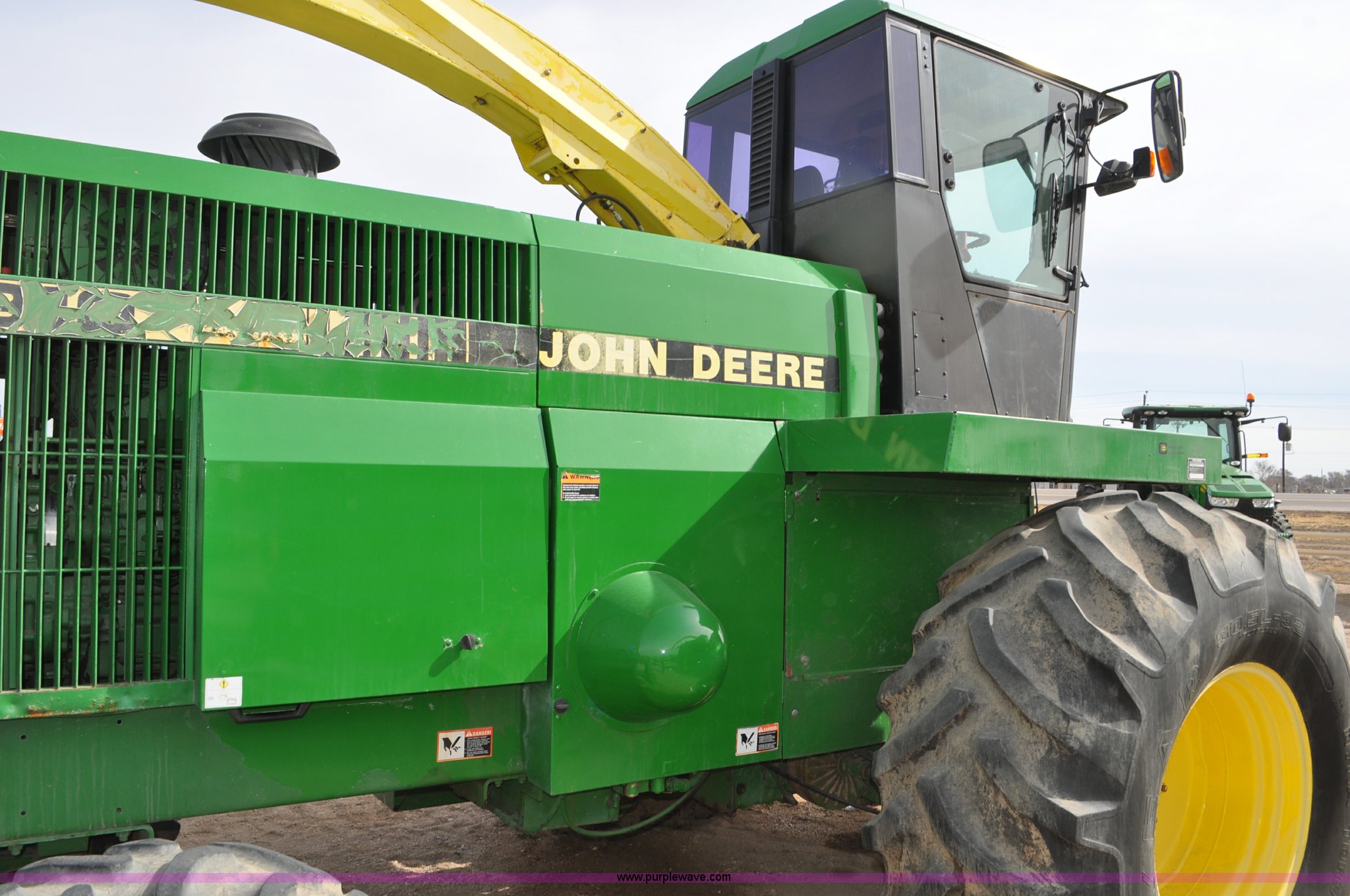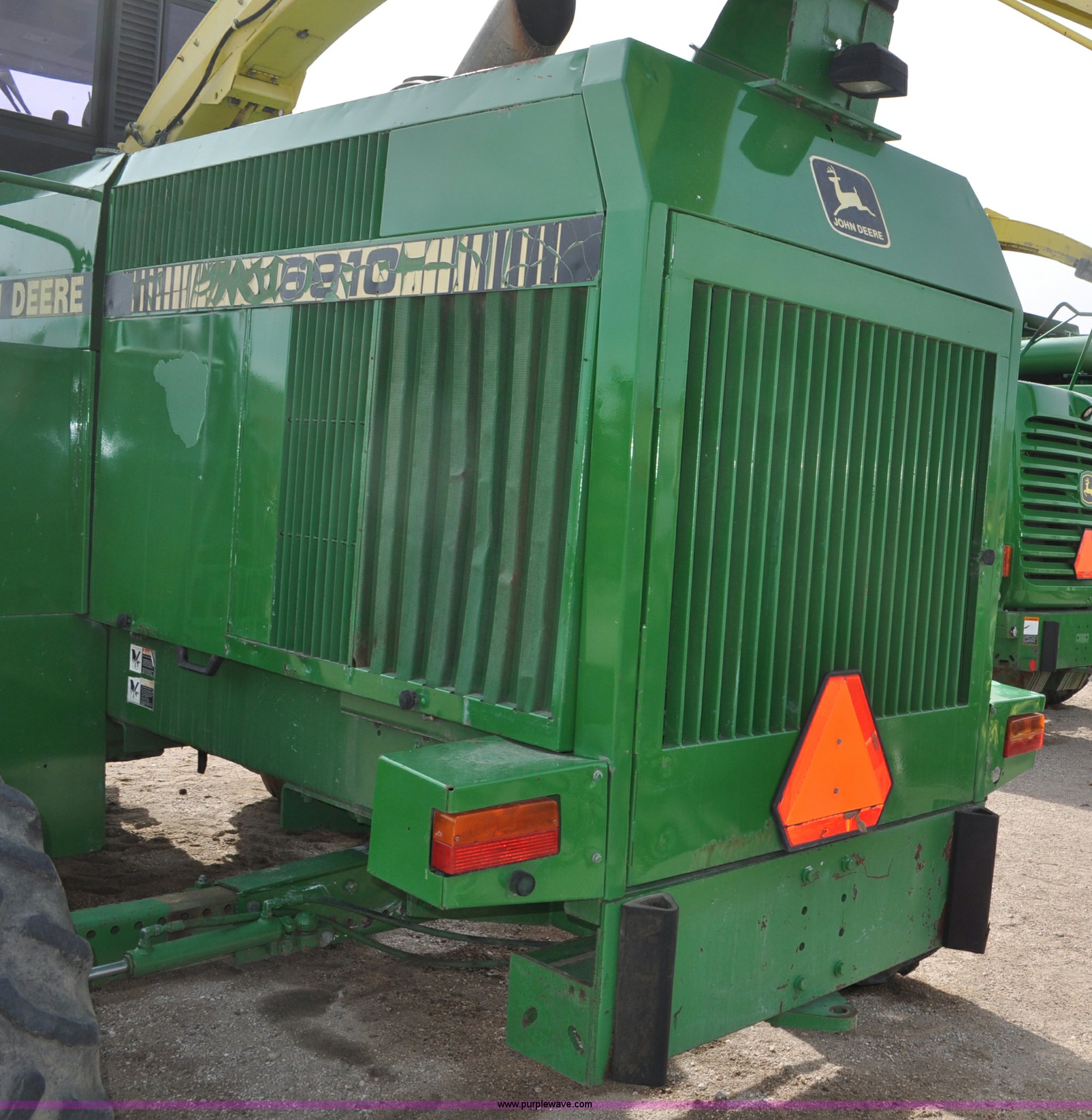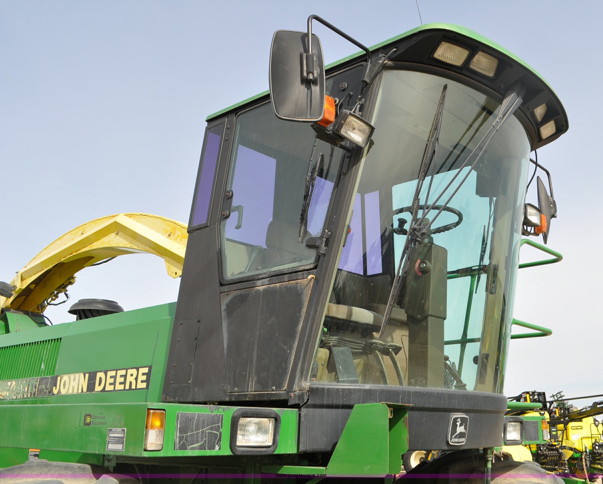 Purple Wave is selling a used Forage Harvester in Colorado. This item is a 1997 John Deere 6910 forage harvester with the following: 4,294 engine hours on meter, 2,748 cutter head hours on meter, Cummins N14 six cylinder diesel engine, Three speed hydrostatic transmission, AC and heat, AM/FM, High Arch spout, 48 knife cutter head, Serial Z06910X502390, Unit# TX502390