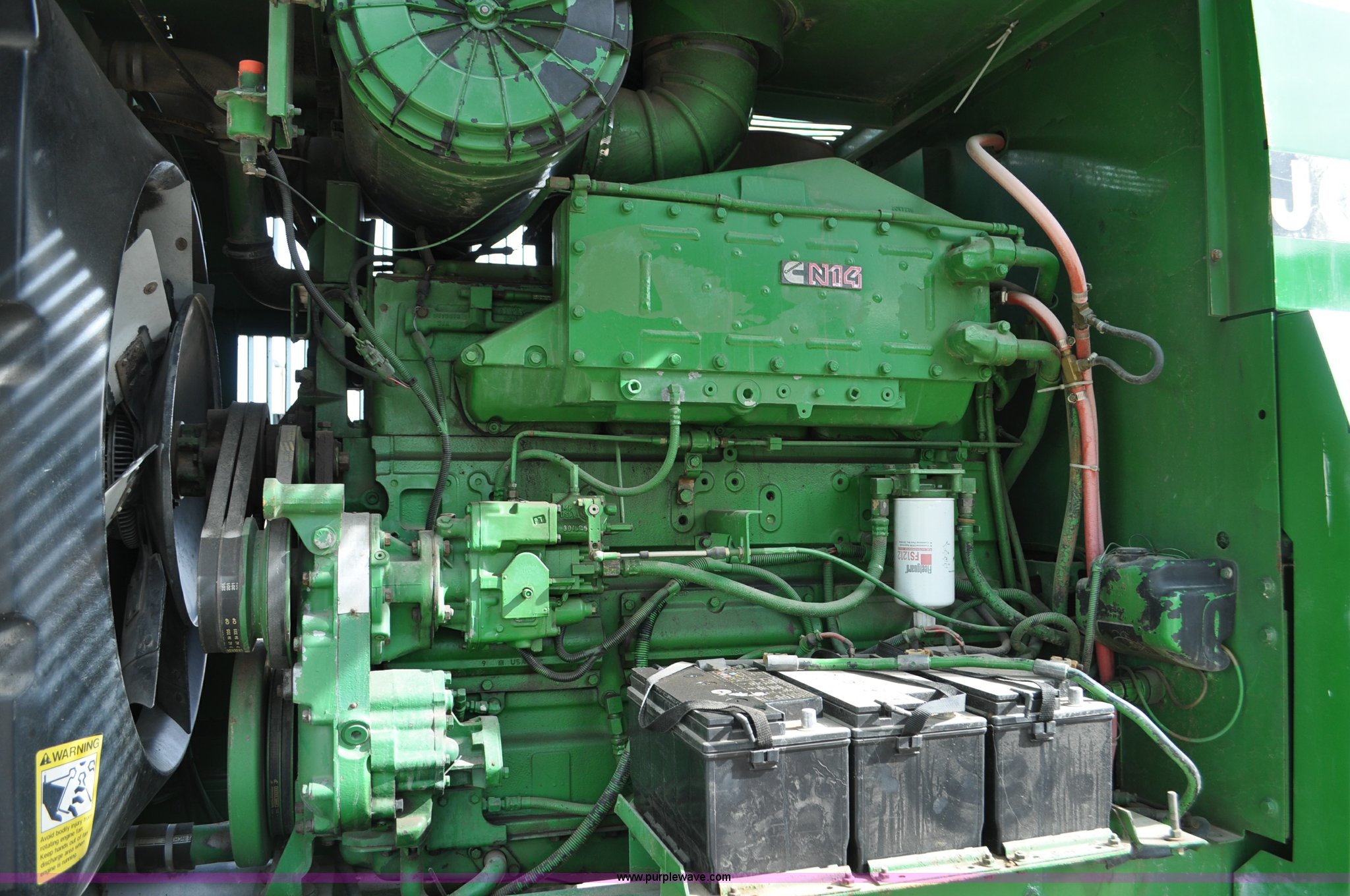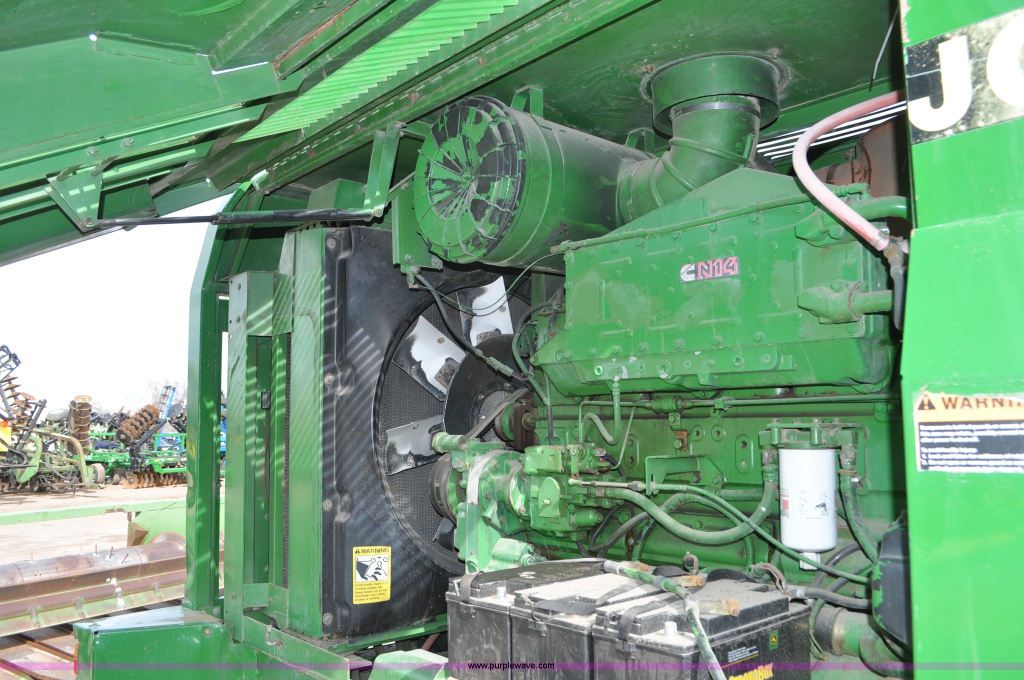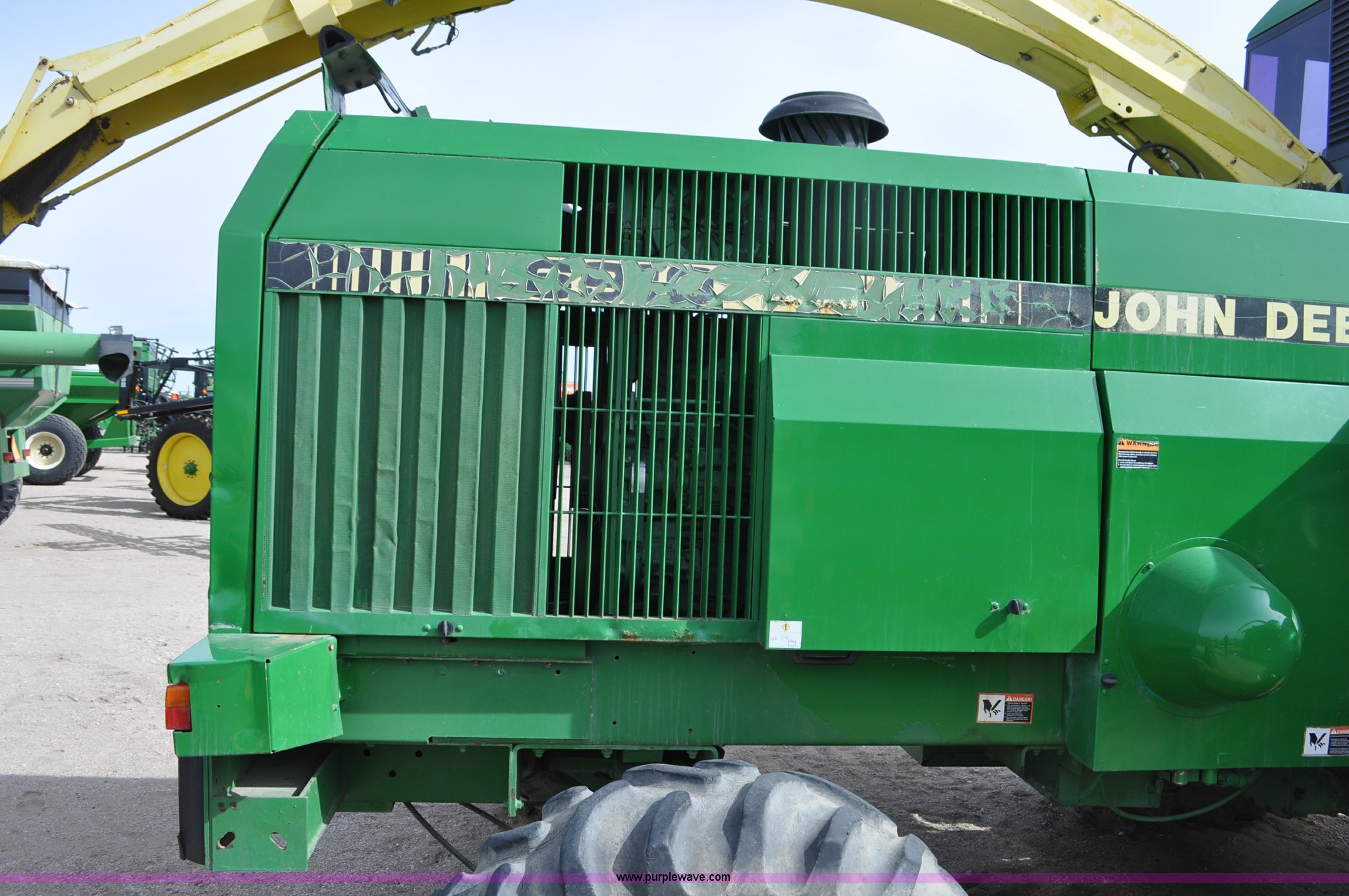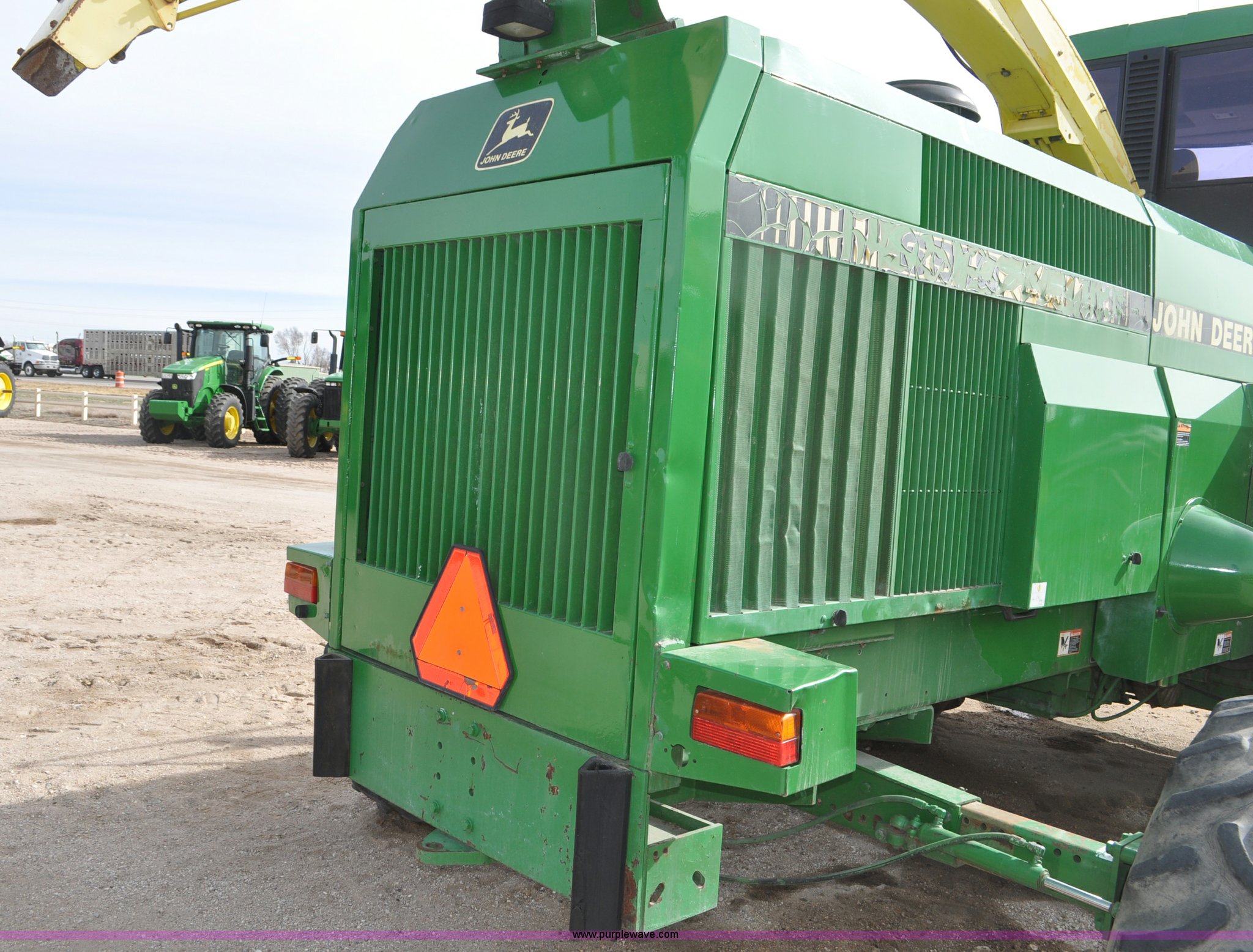 Purple Wave is selling a used Forage Harvester in Colorado. This item is a 1997 John Deere 6910 forage harvester with the following: 4,294 engine hours on meter, 2,748 cutter head hours on meter, Cummins N14 six cylinder diesel engine, Three speed hydrostatic transmission, AC and heat, AM/FM, High Arch spout, 48 knife cutter head, Serial Z06910X502390, Unit# TX502390