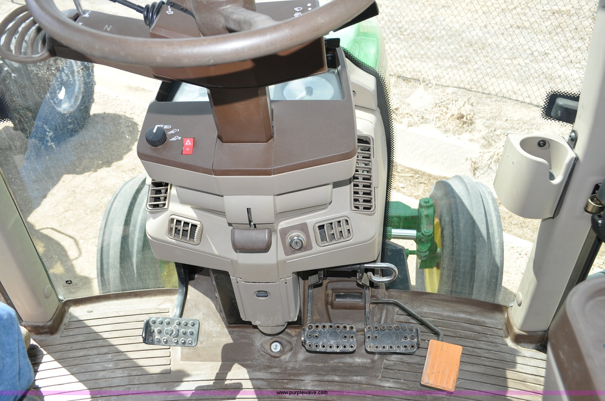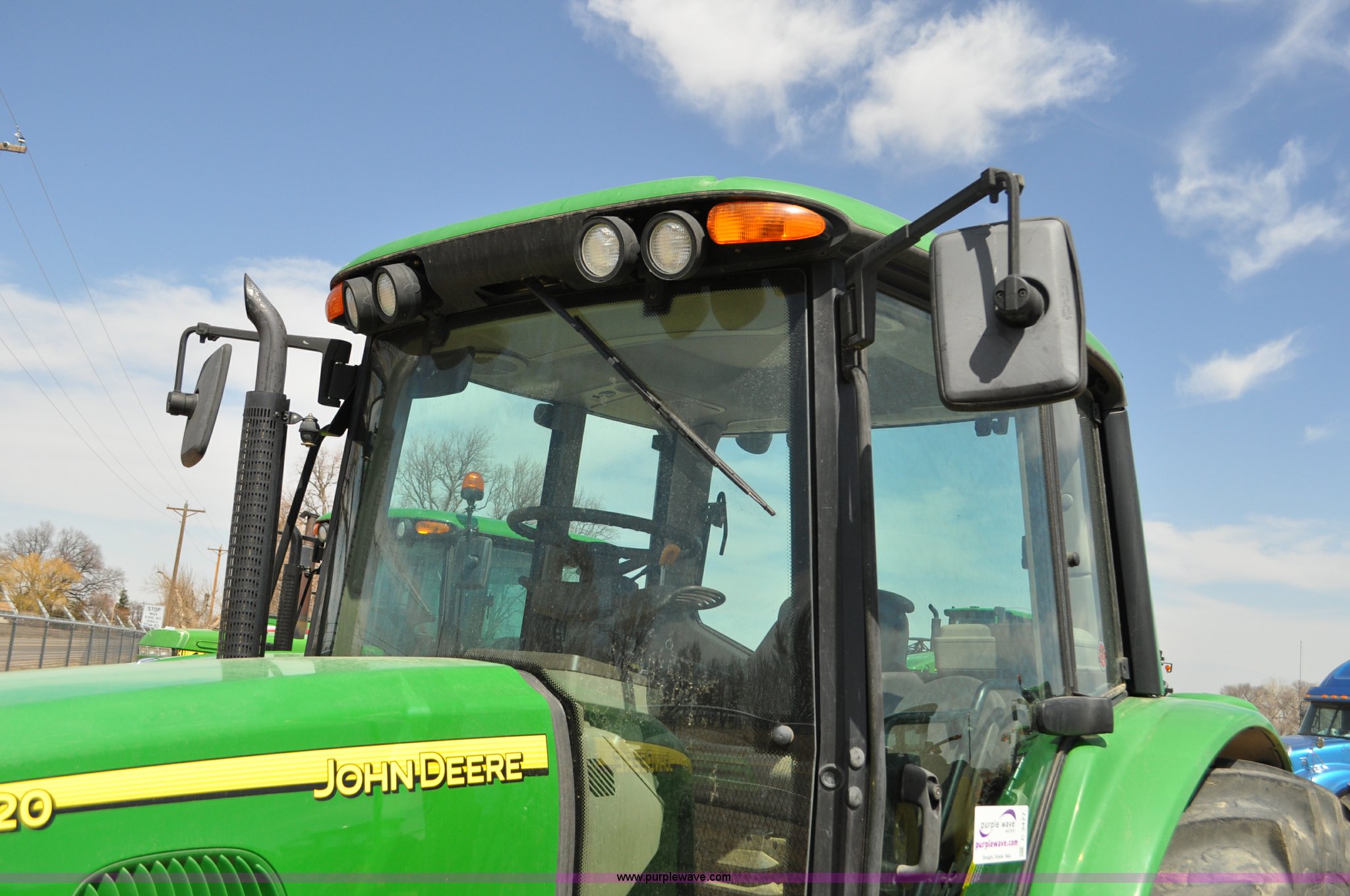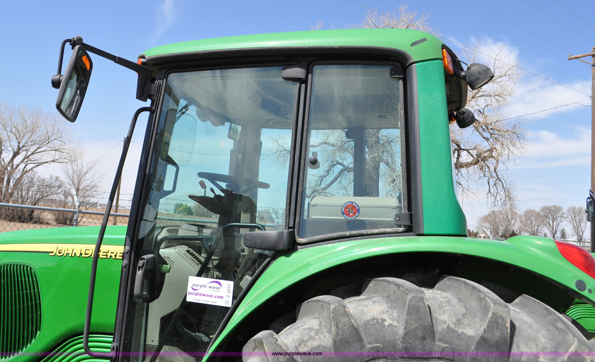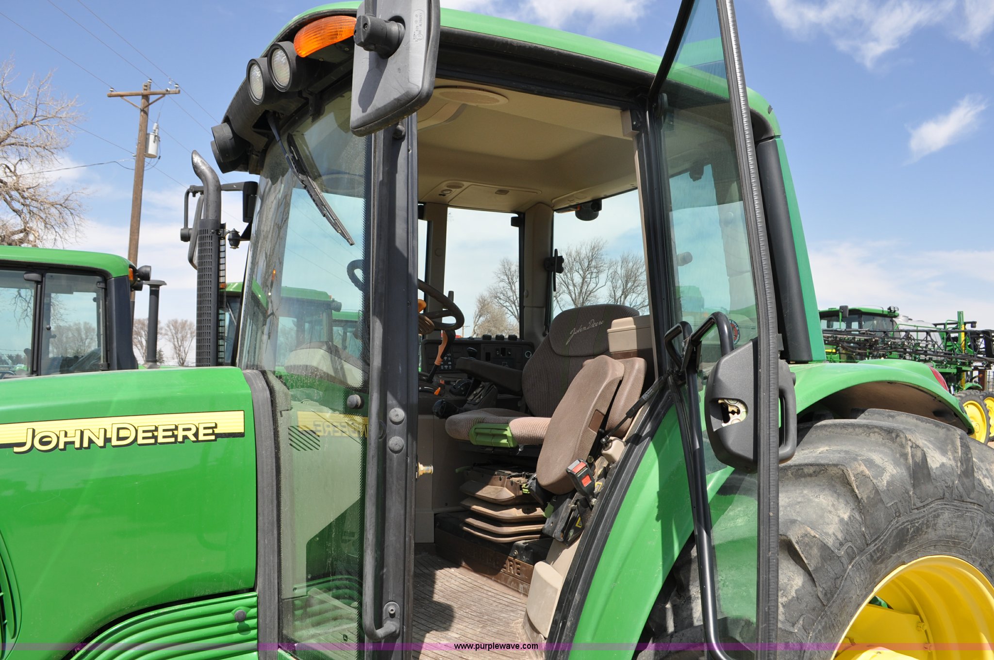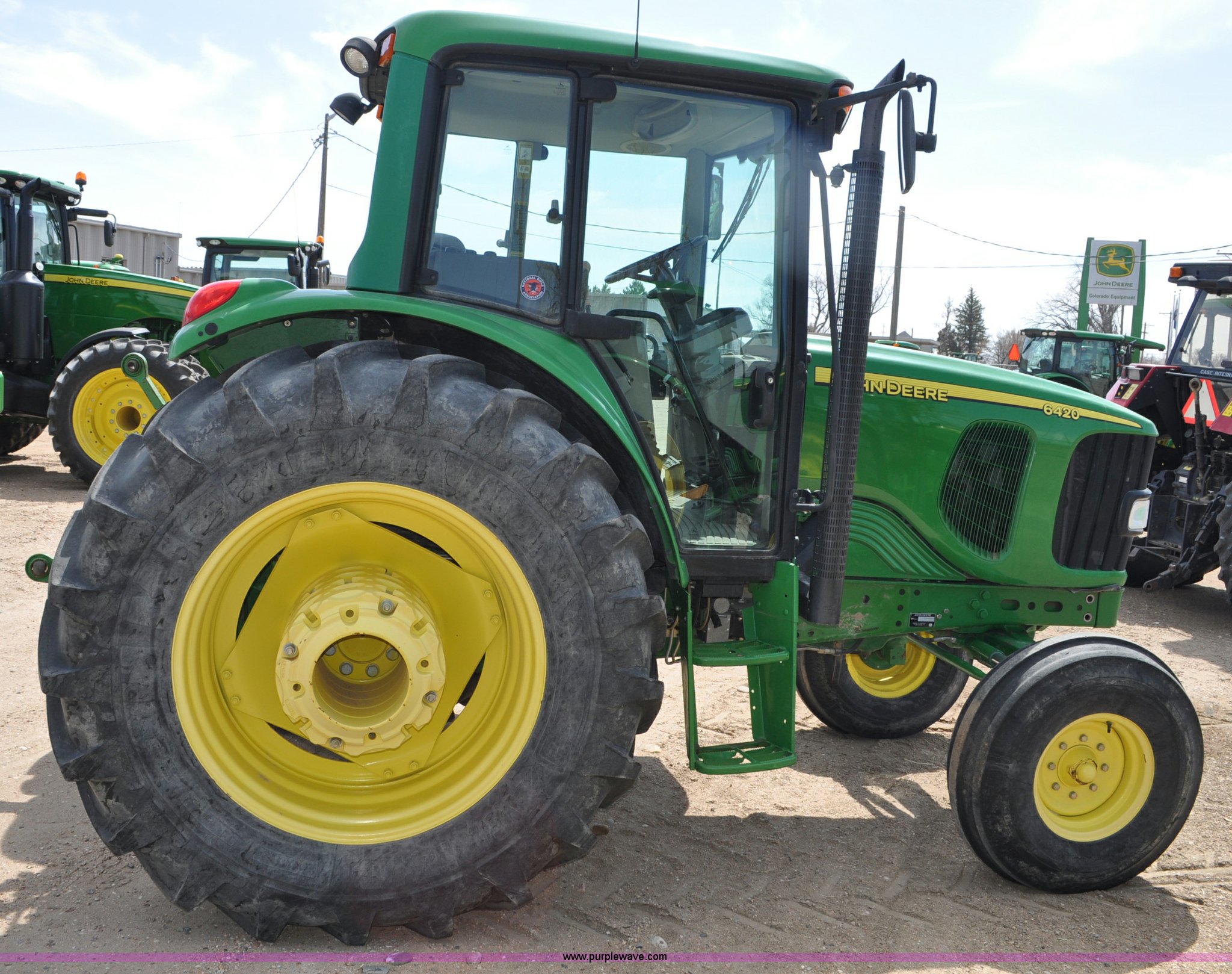 Purple Wave is selling a used Tractor in Colorado. This item is a 2005 John Deere 6420 tractor with the following: 584 hours on meter, John Deere 4045 four cylinder diesel engine, Serial C004045H896632, John Deere PowrQuad partial powershift transmission, 16F-16R gears, AC and heat, AM/FM/cassette/Weather band, Air suspension seat, Tilt steering wheel, Joystick loader control, Three point, Draw bar, 1000 PTO, (2) rear hydraulic remotes, 10.00-16 front tires, 18.4R38 rear tires, Wheel weights, Serial L06420H442224