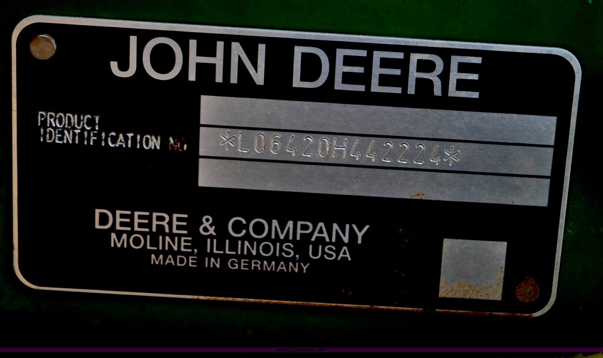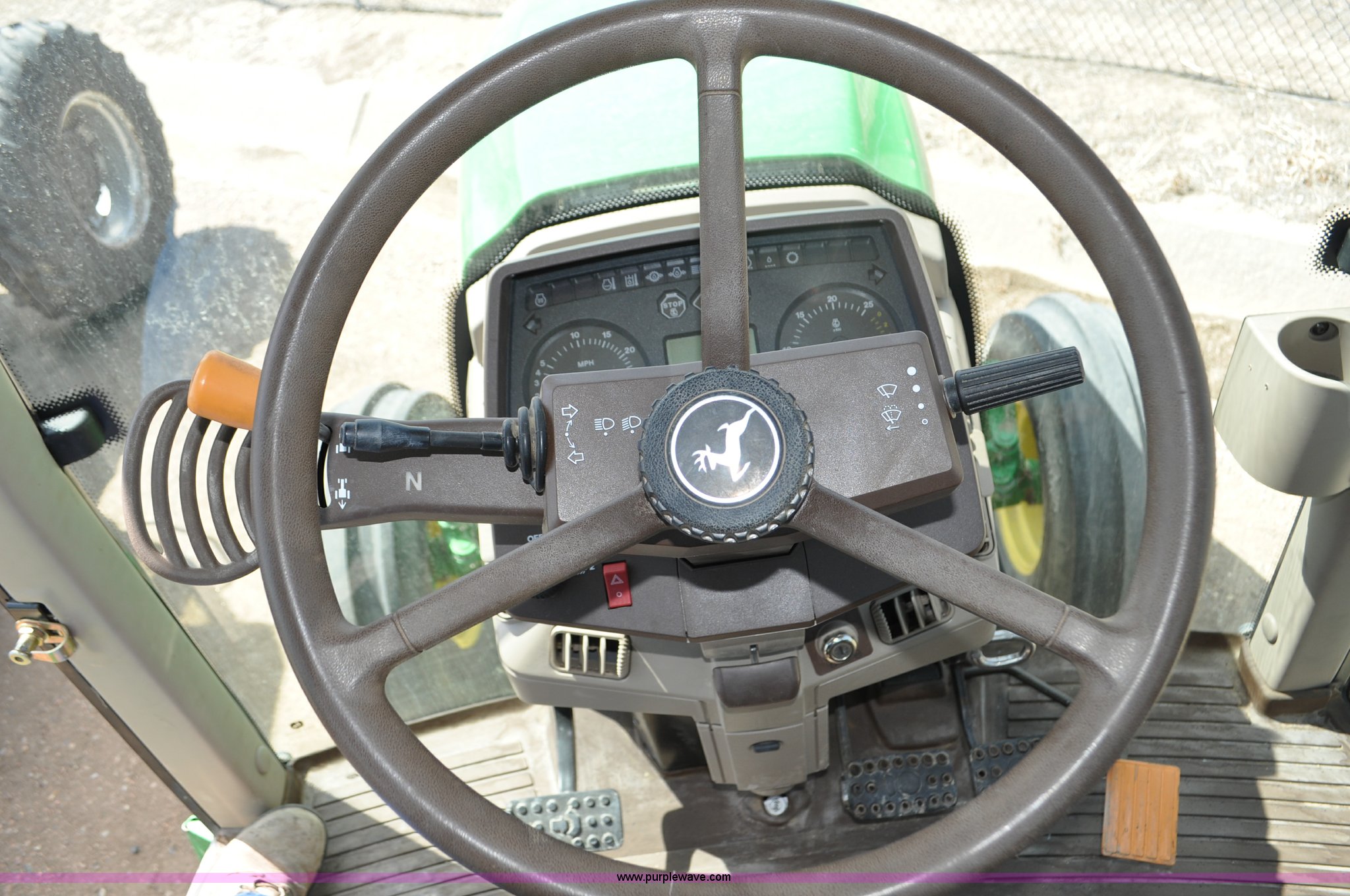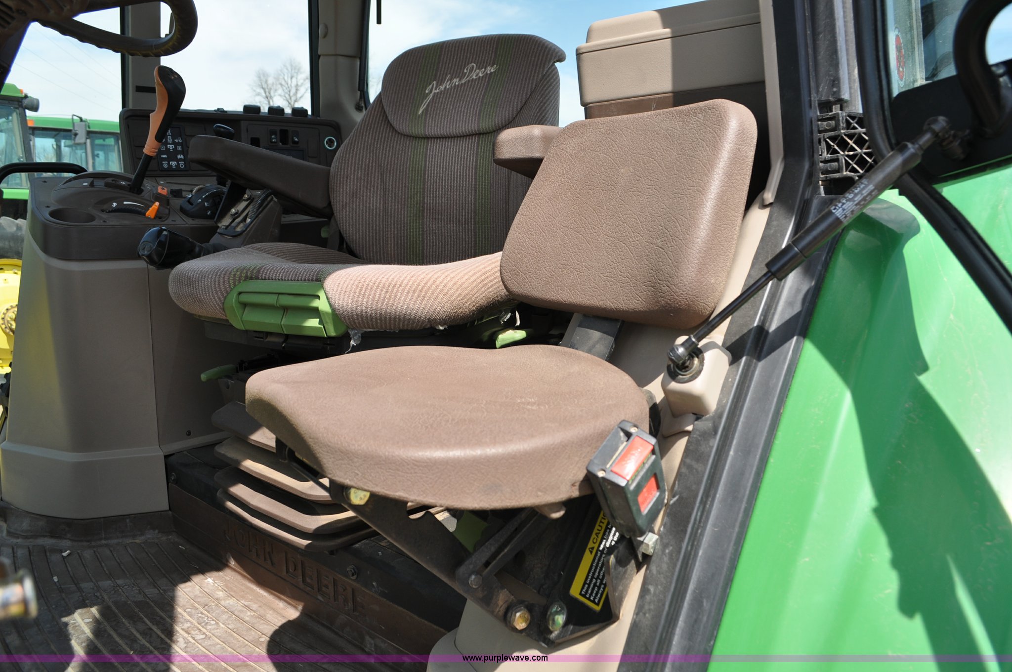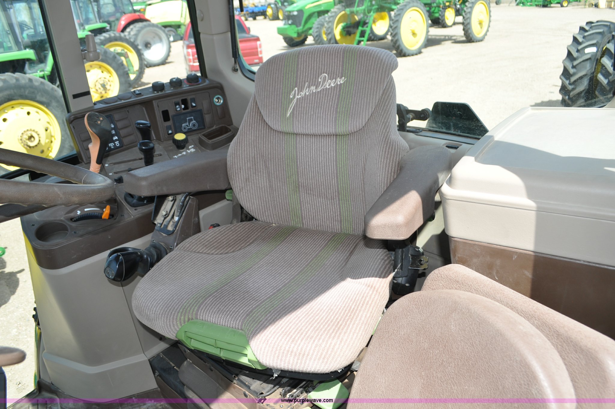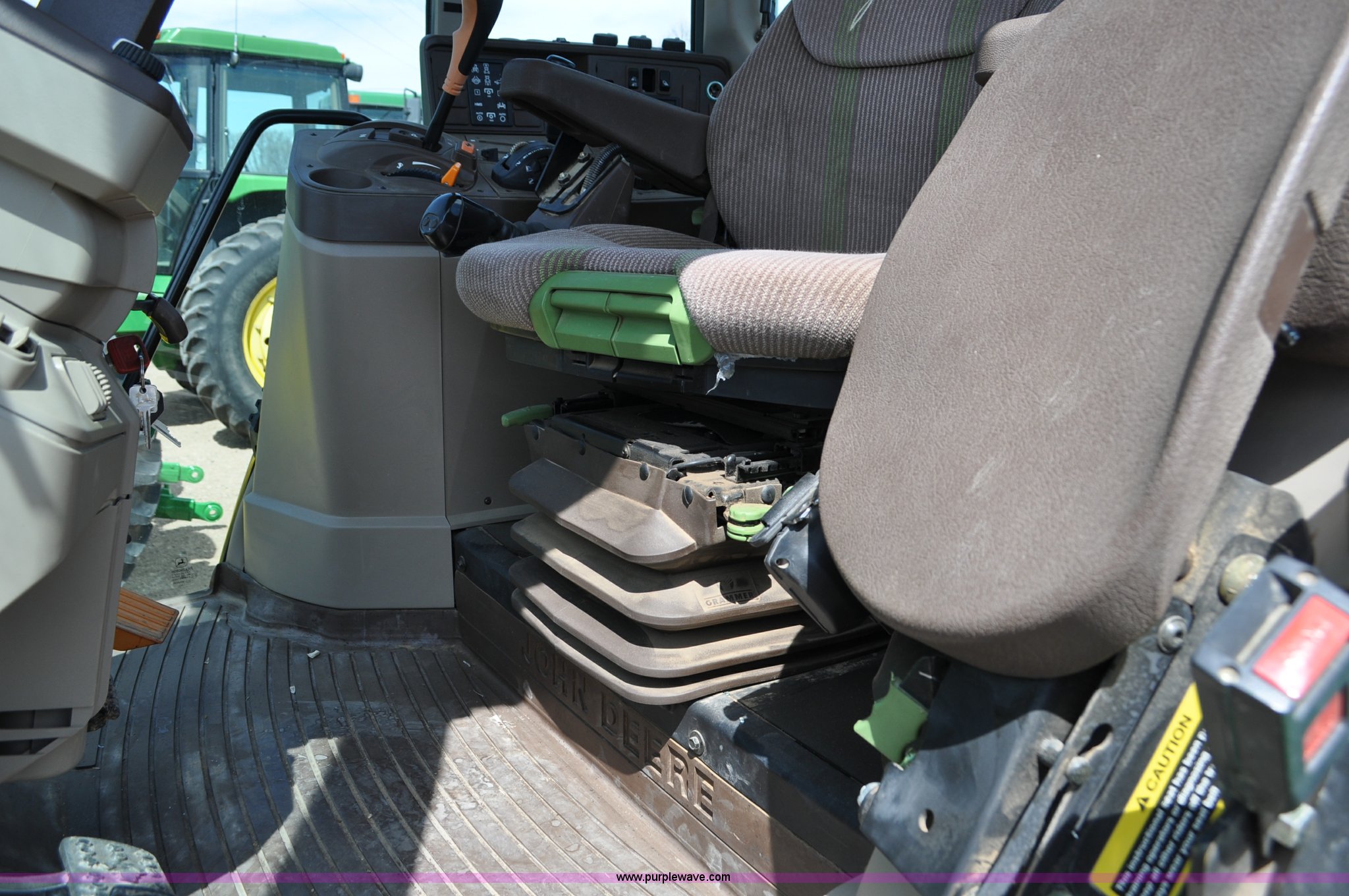 Purple Wave is selling a used Tractor in Colorado. This item is a 2005 John Deere 6420 tractor with the following: 584 hours on meter, John Deere 4045 four cylinder diesel engine, Serial C004045H896632, John Deere PowrQuad partial powershift transmission, 16F-16R gears, AC and heat, AM/FM/cassette/Weather band, Air suspension seat, Tilt steering wheel, Joystick loader control, Three point, Draw bar, 1000 PTO, (2) rear hydraulic remotes, 10.00-16 front tires, 18.4R38 rear tires, Wheel weights, Serial L06420H442224