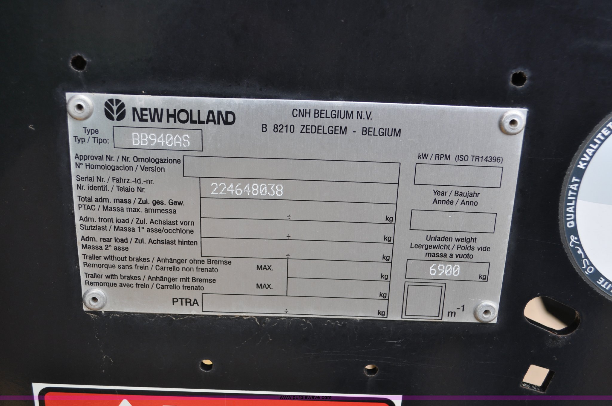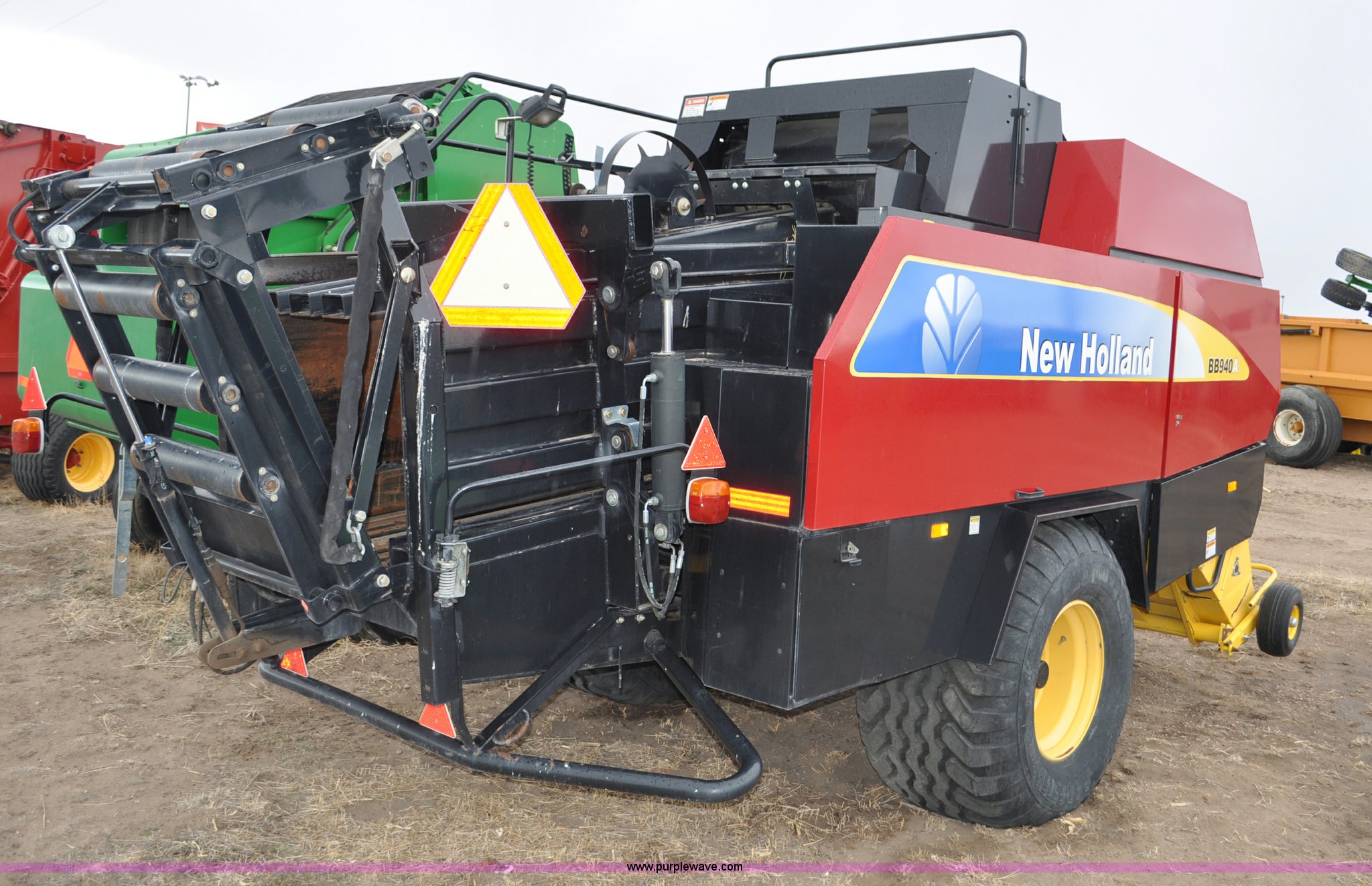 Purple Wave is selling a used Square Baler in Wyoming. This item is a 2008 New Holland BB940AS square baler with the following: 3x3x8 bales, 1000 PTO, 70" pickup, Hydraulic raise, Pickup gauge wheels, Hydraulic fold bale chute, Monitor, Lincoln quick lube, 600/55-22.5 flotation tires, 17,987 bale count, Serial 224648038