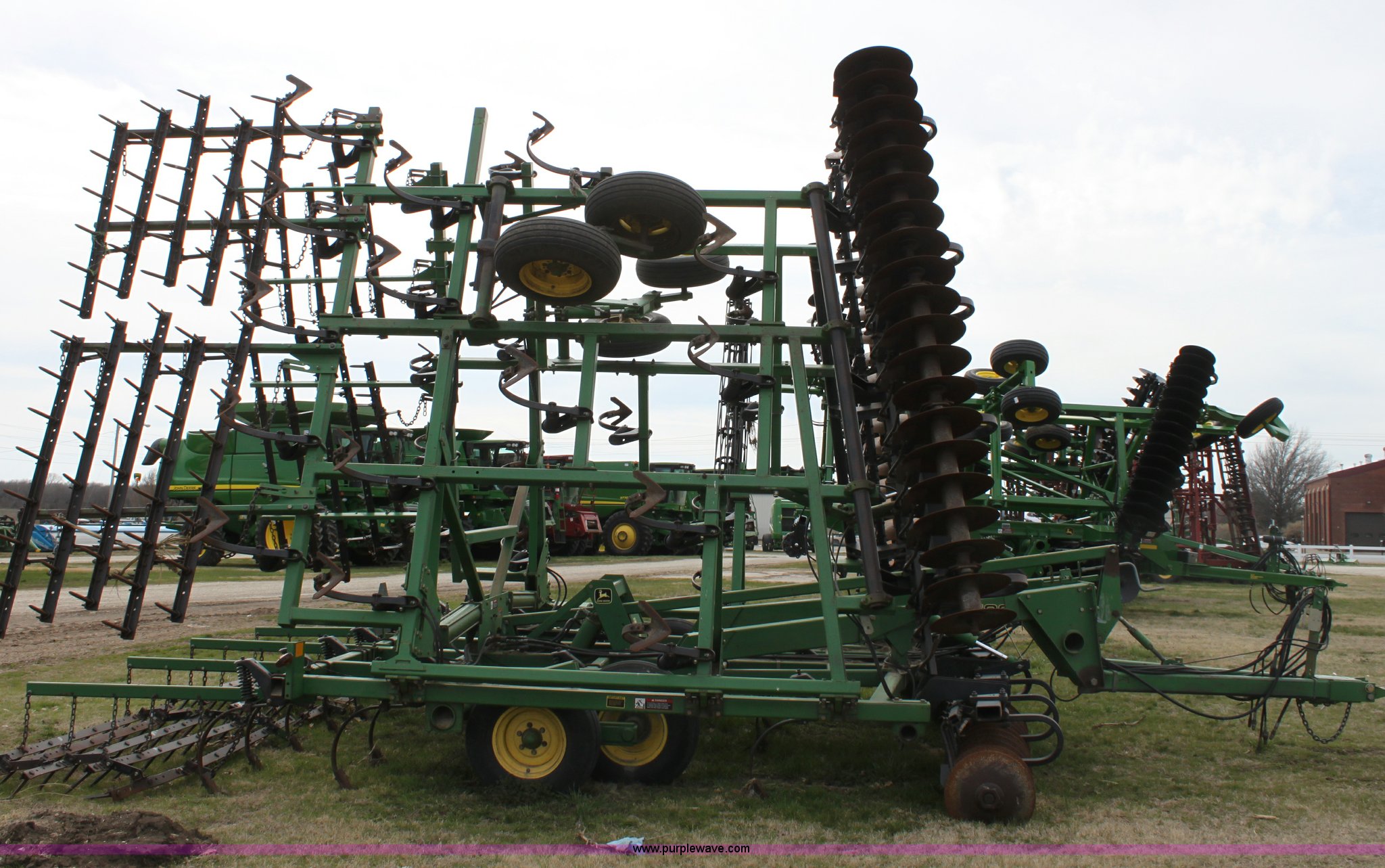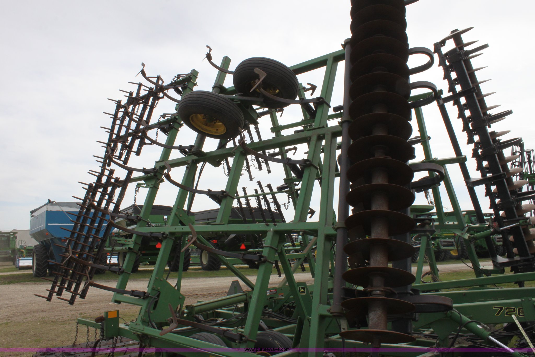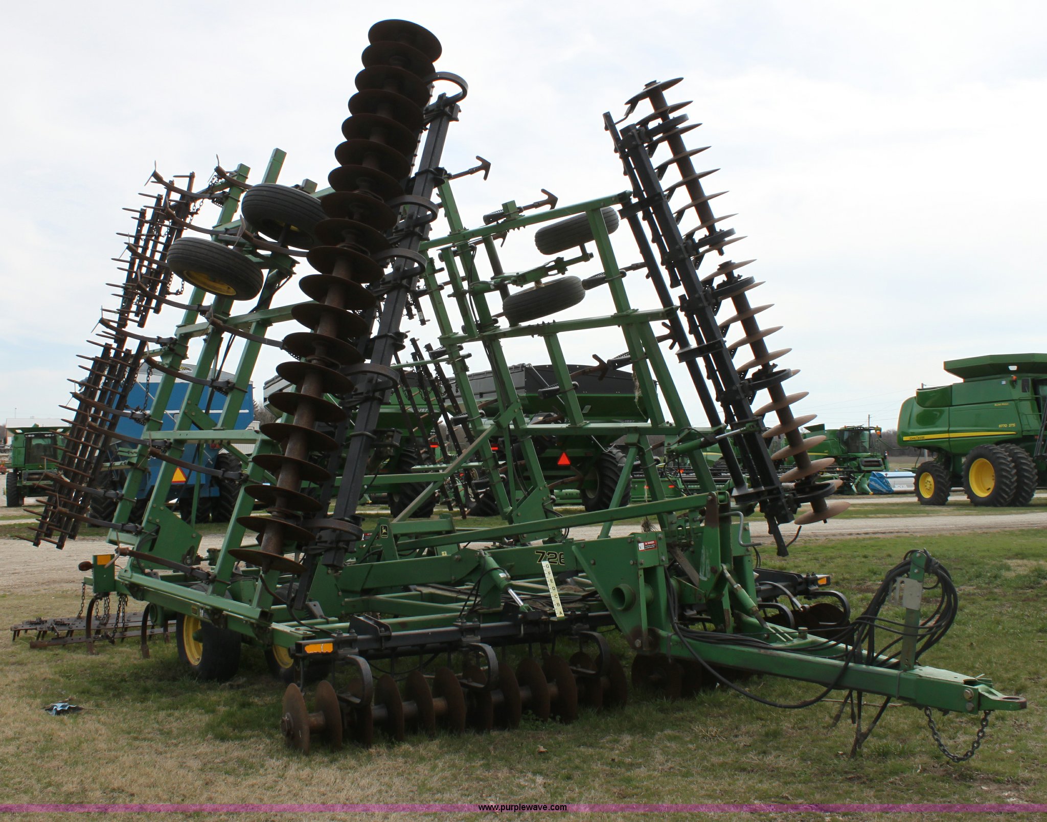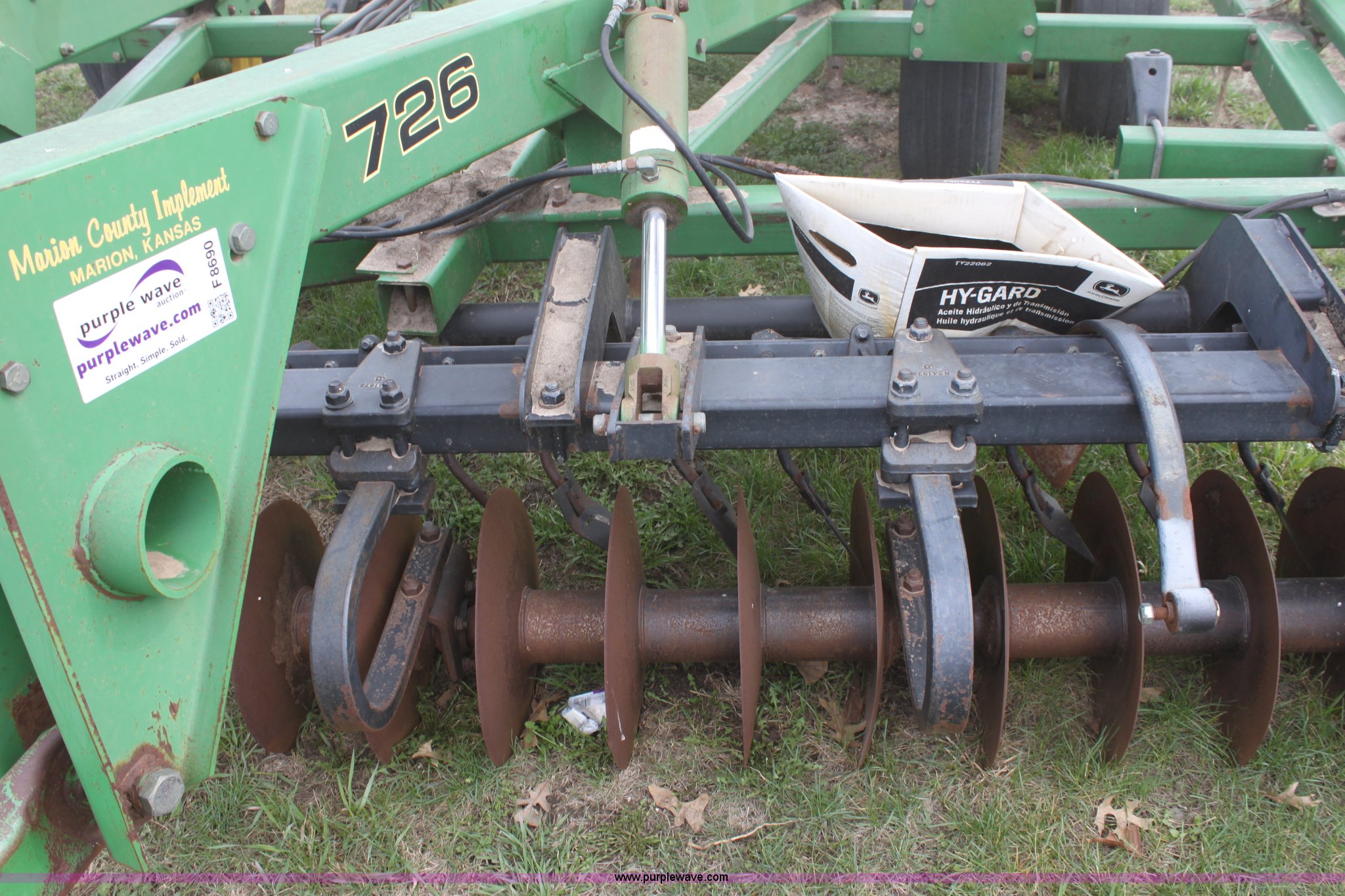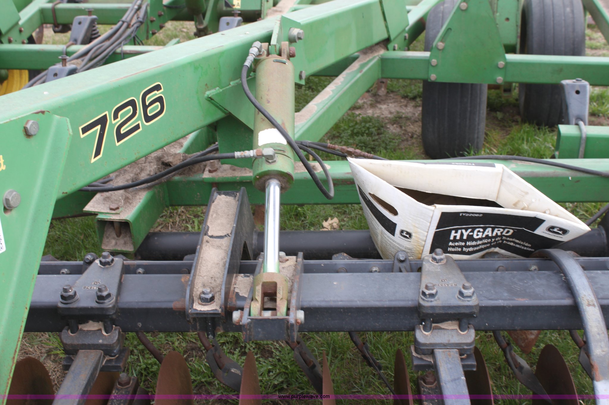 Purple Wave is selling a used Mulcher Finisher in Kansas. This item is a 1998 John Deere 726 mulch finisher with the following: 26'W, Hydraulic lift and fold, Hydraulic disk gang lift, Pin hitch, Requires three sets of hydraulic remotes, 11L-15 tires, Serial N00726X0002479, Stock# 75894