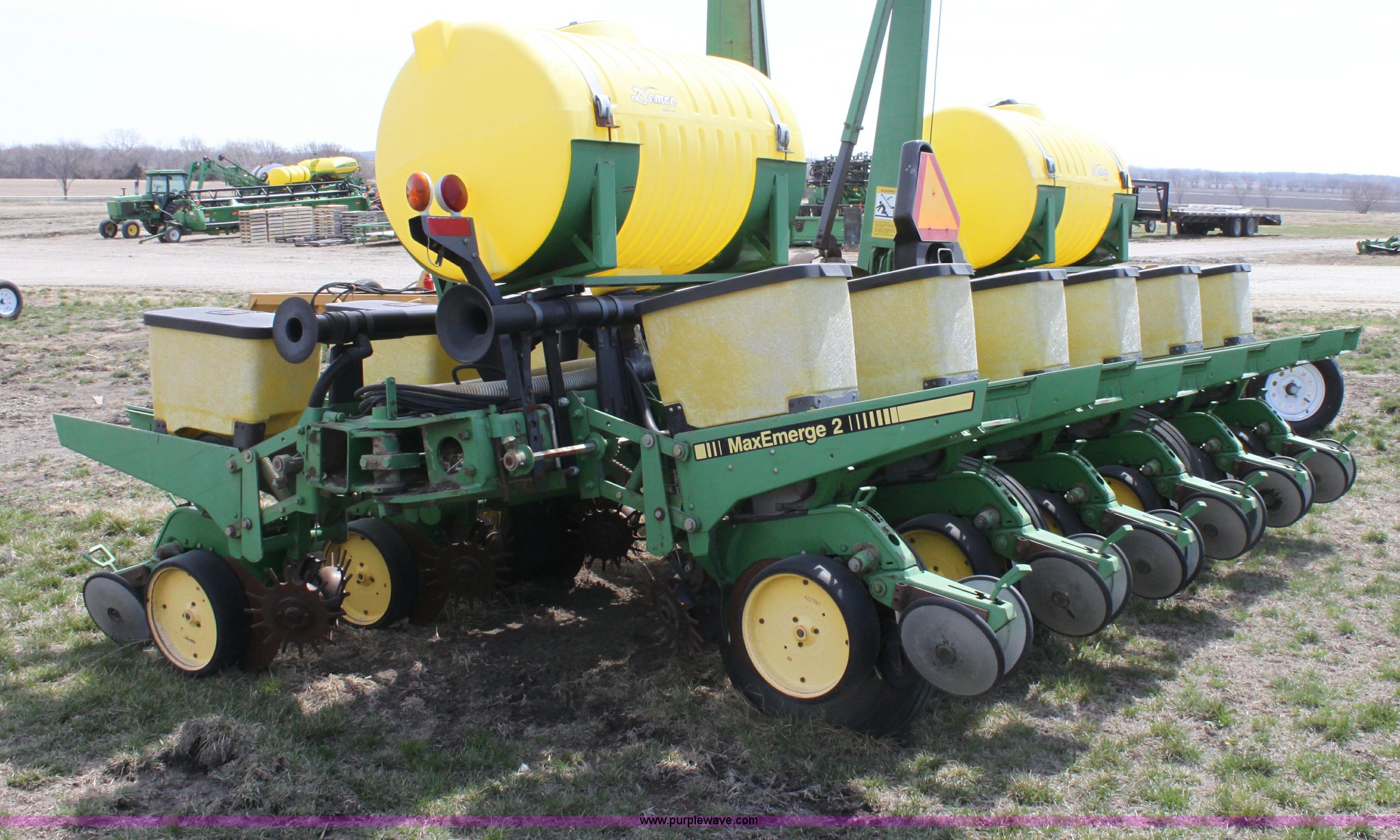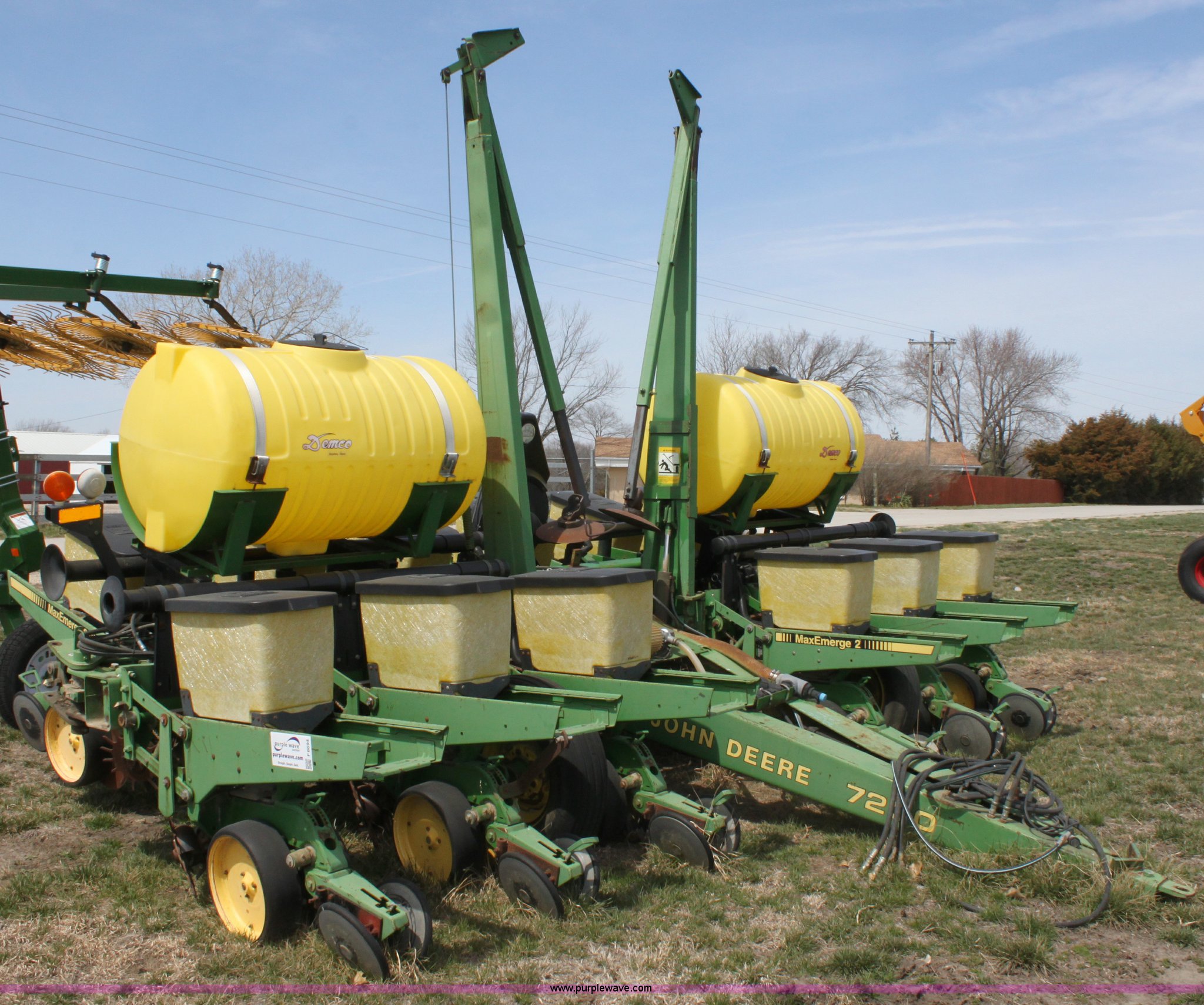 Purple Wave is selling a used Planter in Kansas. This item is a 1991 John Deere 7200 planter with the following: 12 row, 30" spacing, Double disk row cleaners, John Deere 250 monitor, Fertilizer tanks, No delivery system, Corn, soybean, and sorghum disks, Serial H07200B303866, Stock# 76399