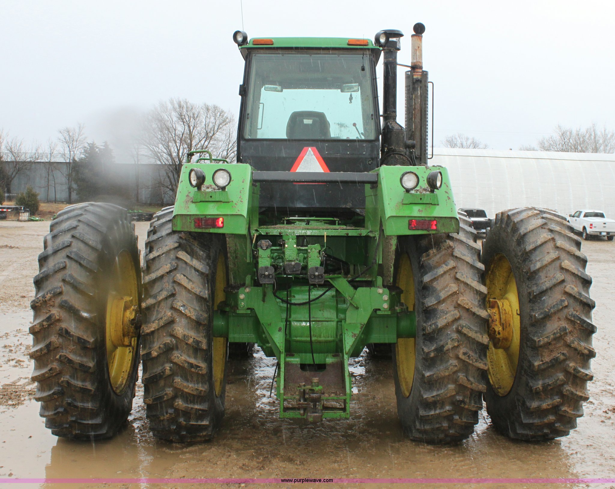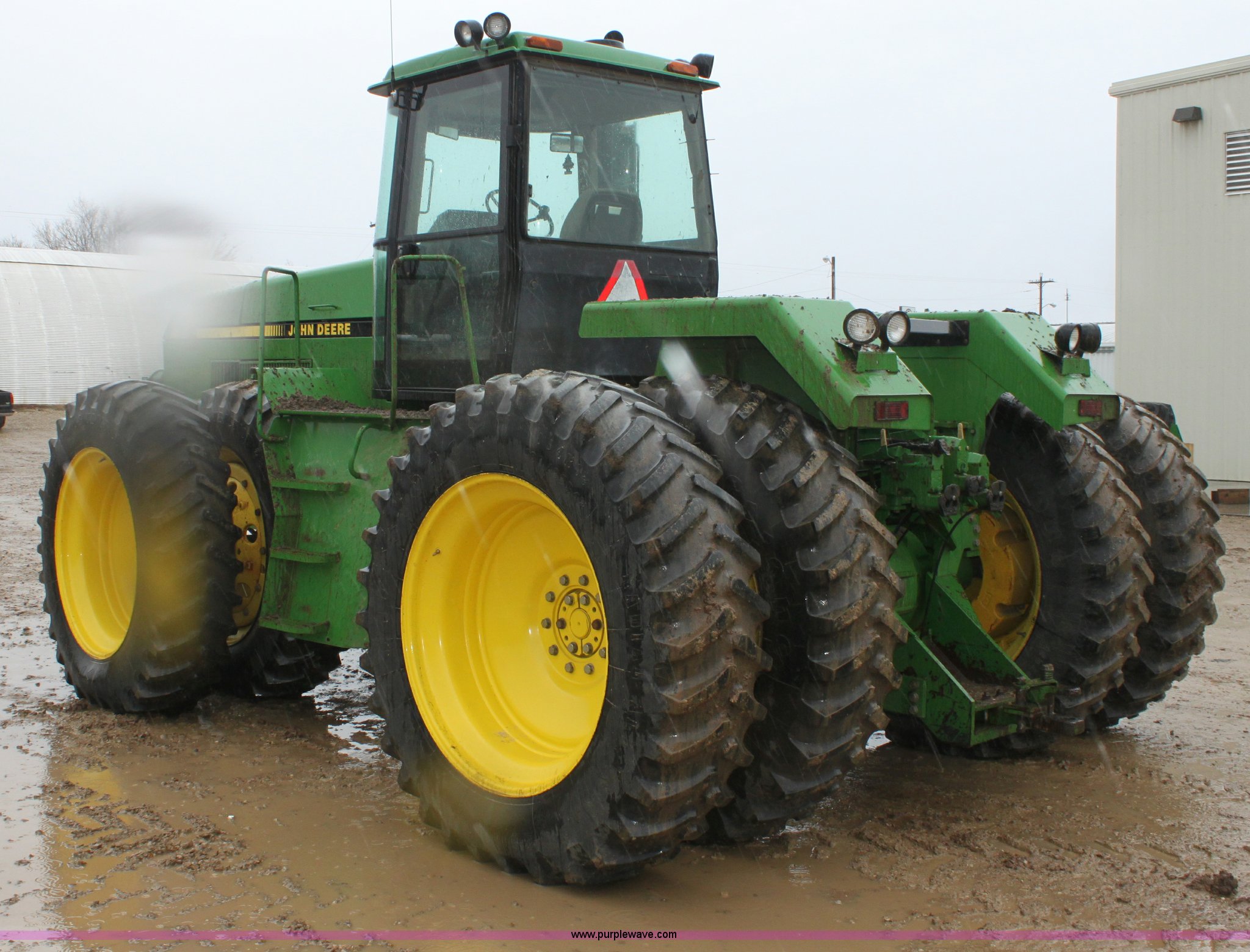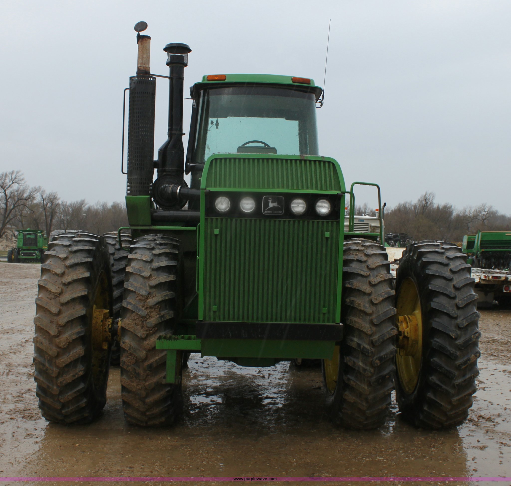 Purple Wave is selling a used Articulated 4-Wheel Drive Tractor in Kansas. This item is a 1992 John Deere 8760 4WD tractor with the following: 8,306 hours on meter, John Deere six cylinder diesel engine, 300 HP, Serial RG6101H103542, Partial powershift transmission, 24F-18R gears, AC and heat, Tilt, AM/FM, Air ride seat, (3) rear hydraulic remotes, 480/80R42 dual tires, Serial RW8760H004340, Stock# 77394