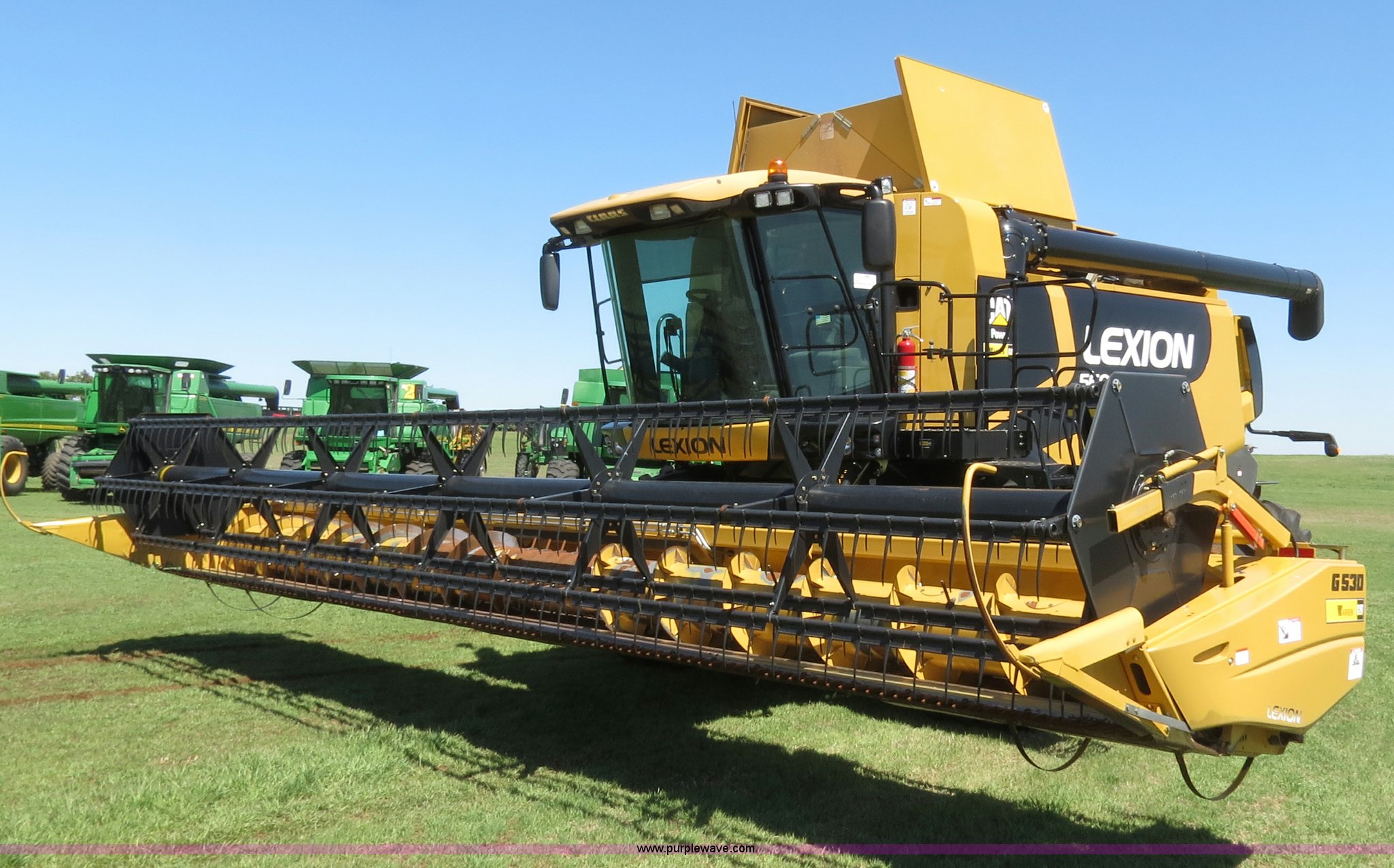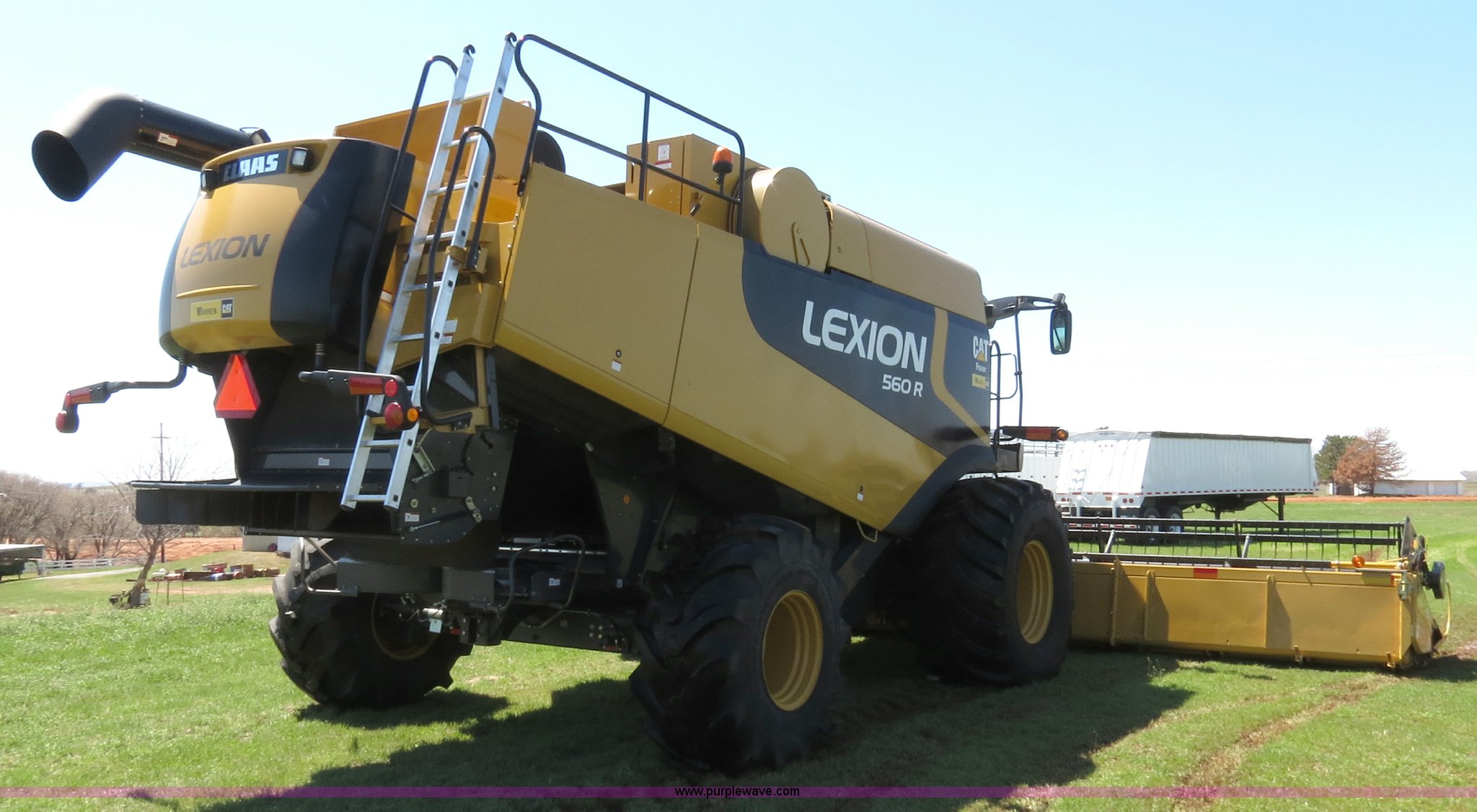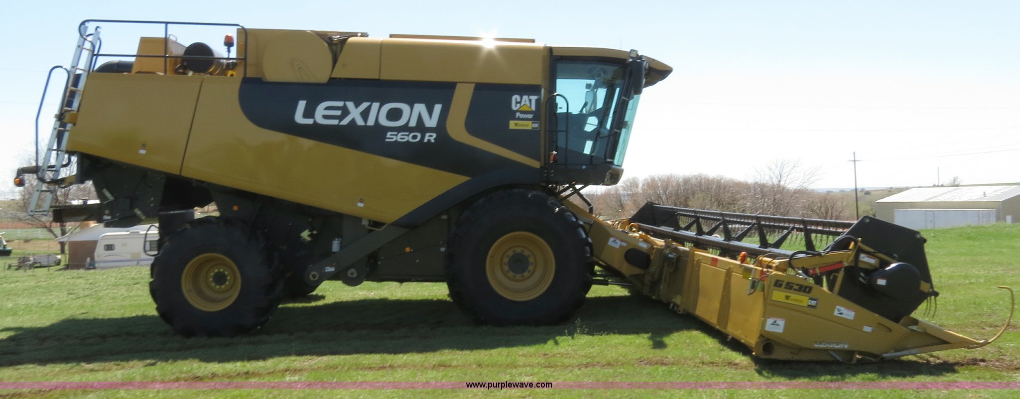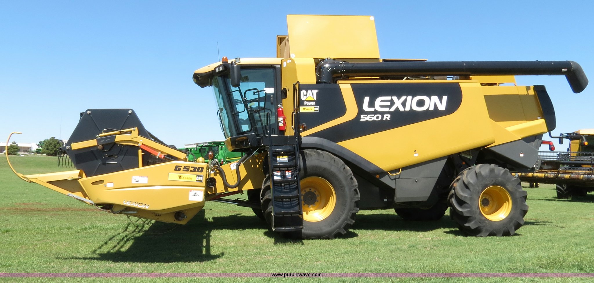 Purple Wave is selling a used Combine in Oklahoma. This item is a 2009 Caterpillar Lexion 560R 2WD combine with the following: 334 engine hours on meter, 272 separator hours on meter, Caterpillar C9 Acert six cylinder turbo diesel engine, 311 HP, Serial JSC08880, Hydrostatic transmission, 3F-3R gears, Single point hookup, Straw chopper, AC and heat, AM/FM/CD, Instructor's seat, Tilt steering wheel, Front shade, Cebis monitor, In-cab printer, Cruise Pilot automatic forward travel control, GPS steering, Laser pilot and auto pilot automatic steering, Quantimeter yield and moisture monitoring, Acre counter, Yield mapping, Straw spreader, 280 bu. bin capacity, 2.8 bu. per second unloading rate, Hydraulic bin extension lift, Header tilt control, 2009 Lexion G530 30' rigid platform header, Full finger auger, Hydraulic fore/aft, Hydraulic reel lift, Poly reel tines, Auto Contour sensors, Serial 7170083, 210 gallon fuel tank, Goodyear Optitrac DT830 900/60R32 front tires, Goodyear Hi-Load Harvest 28LR26 rear tires, 35,275 lbs base combine operating weight, Serial 57800863, Stock# 74868