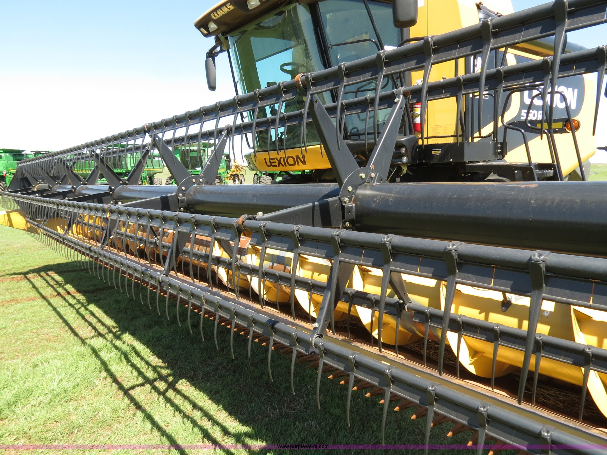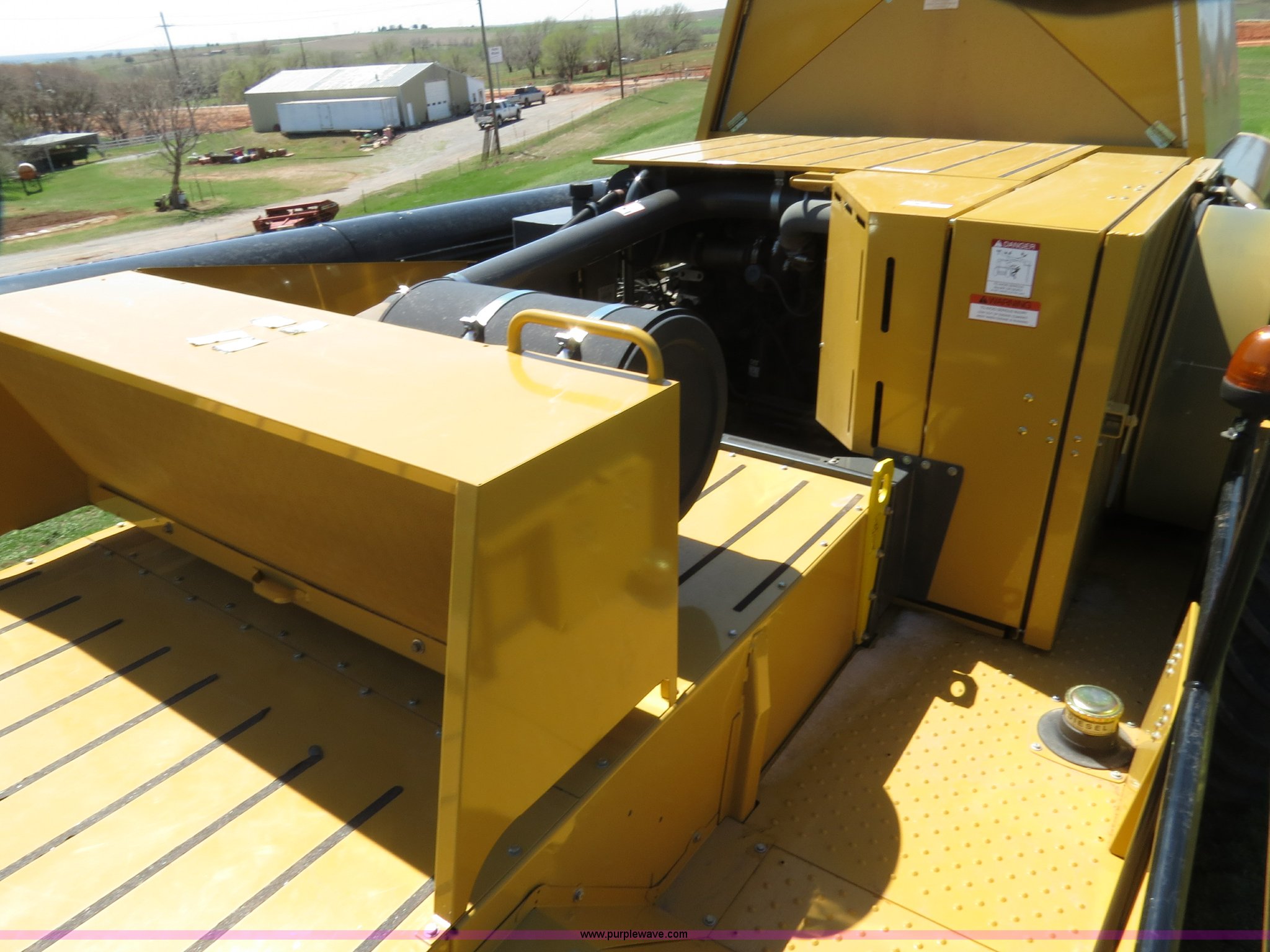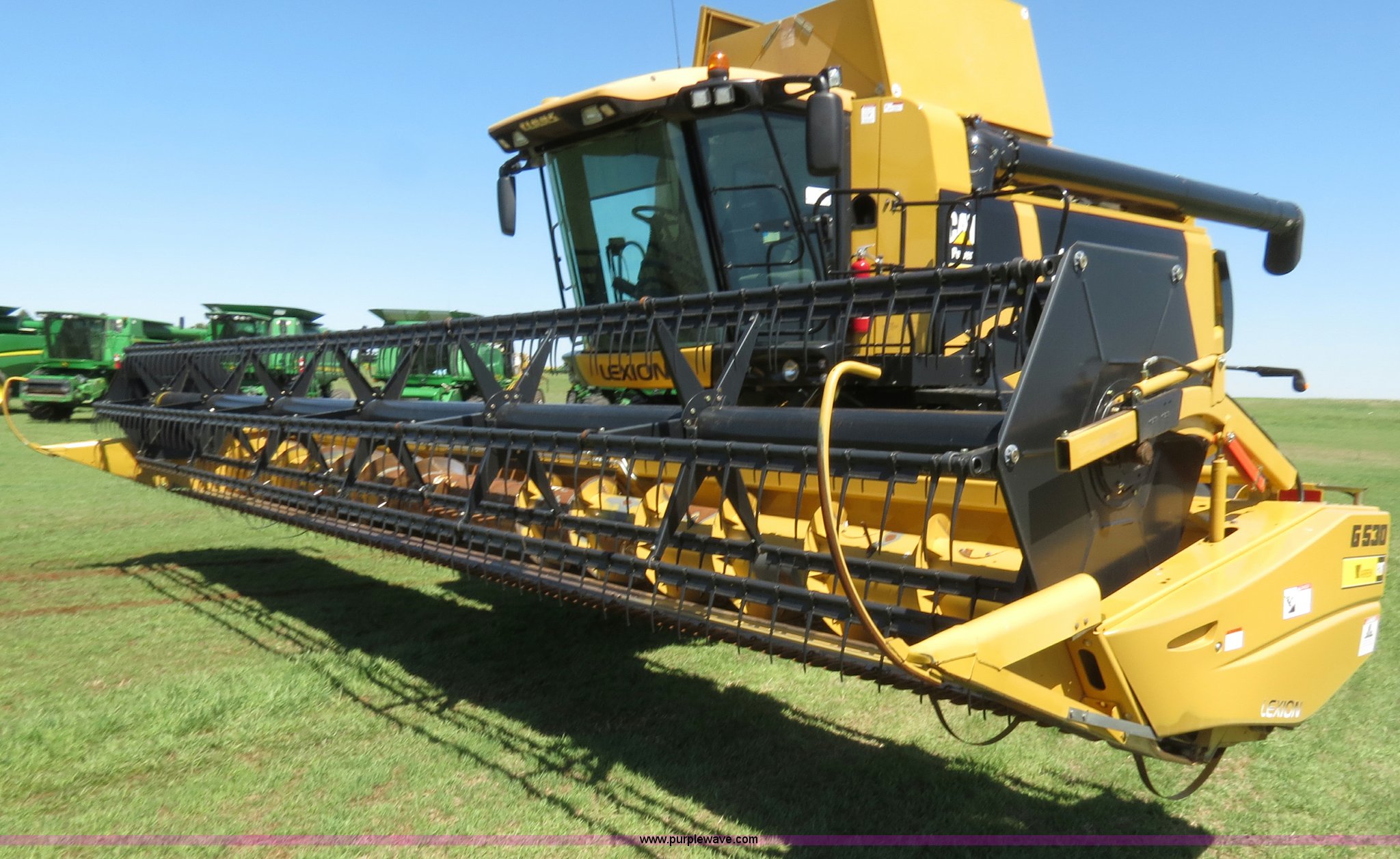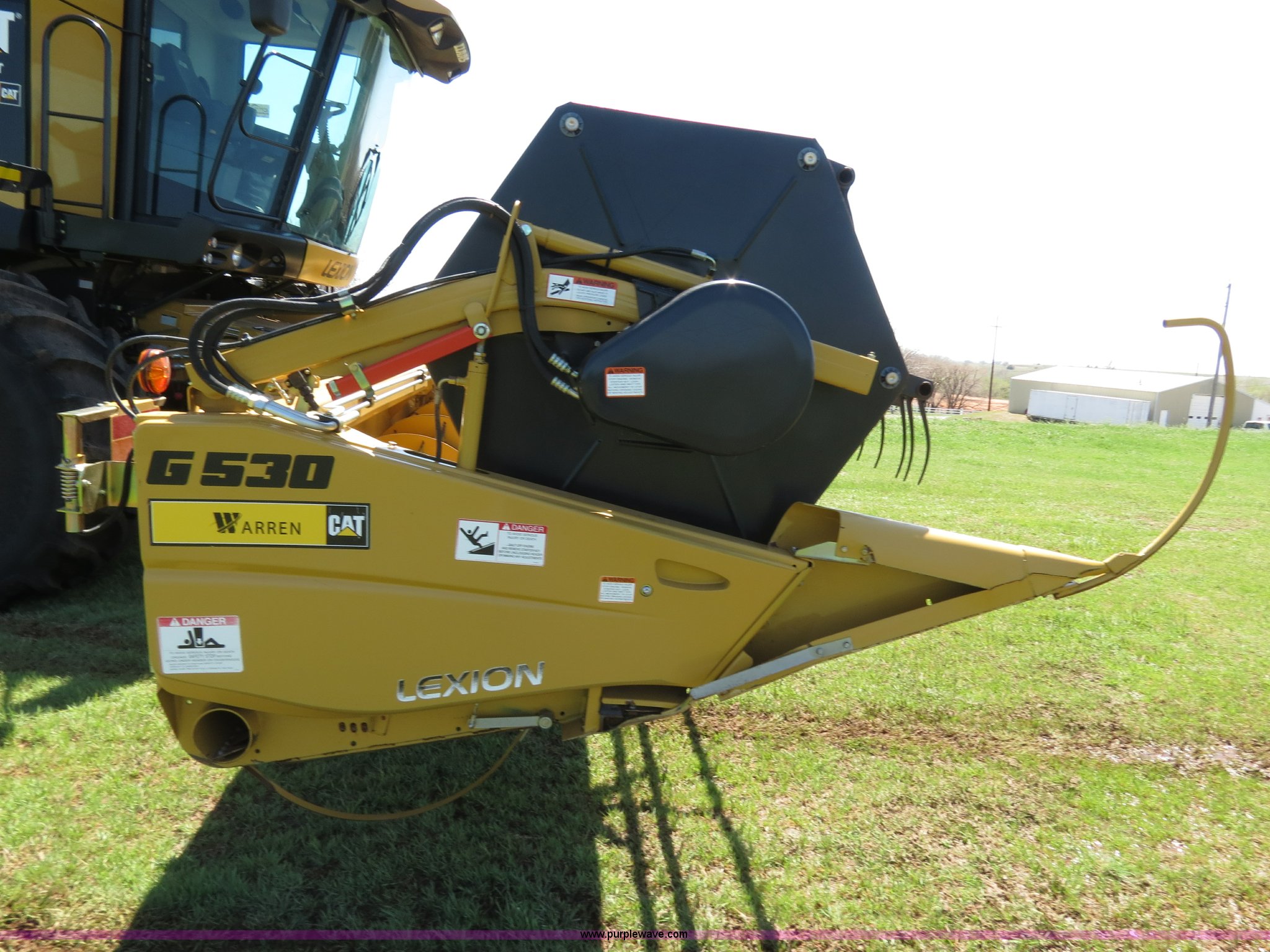Purple Wave is selling a used Combine in Oklahoma. This item is a 2009 Caterpillar Lexion 560R 2WD combine with the following: 334 engine hours on meter, 272 separator hours on meter, Caterpillar C9 Acert six cylinder turbo diesel engine, 311 HP, Serial JSC08880, Hydrostatic transmission, 3F-3R gears, Single point hookup, Straw chopper, AC and heat, AM/FM/CD, Instructor's seat, Tilt steering wheel, Front shade, Cebis monitor, In-cab printer, Cruise Pilot automatic forward travel control, GPS steering, Laser pilot and auto pilot automatic steering, Quantimeter yield and moisture monitoring, Acre counter, Yield mapping, Straw spreader, 280 bu. bin capacity, 2.8 bu. per second unloading rate, Hydraulic bin extension lift, Header tilt control, 2009 Lexion G530 30' rigid platform header, Full finger auger, Hydraulic fore/aft, Hydraulic reel lift, Poly reel tines, Auto Contour sensors, Serial 7170083, 210 gallon fuel tank, Goodyear Optitrac DT830 900/60R32 front tires, Goodyear Hi-Load Harvest 28LR26 rear tires, 35,275 lbs base combine operating weight, Serial 57800863, Stock# 74868