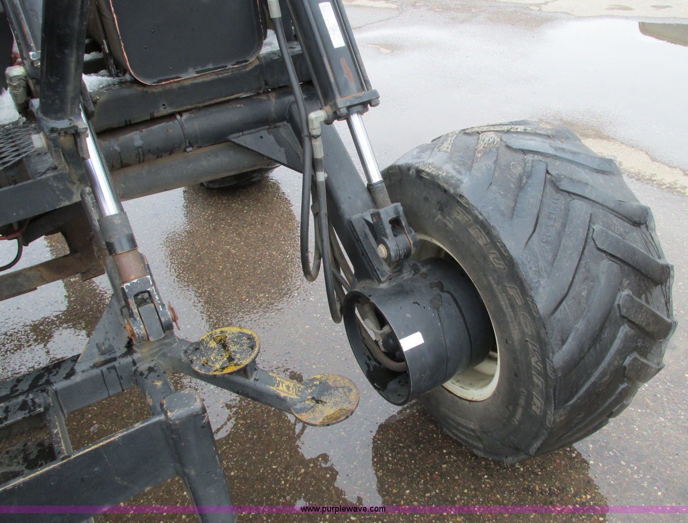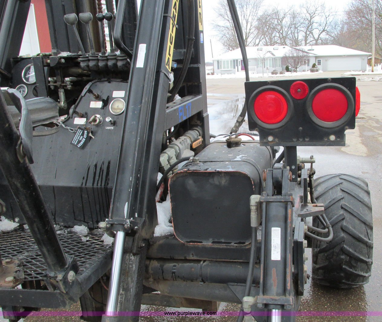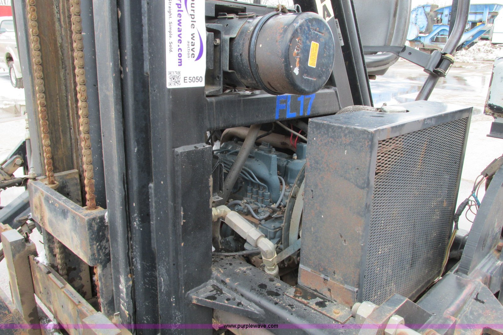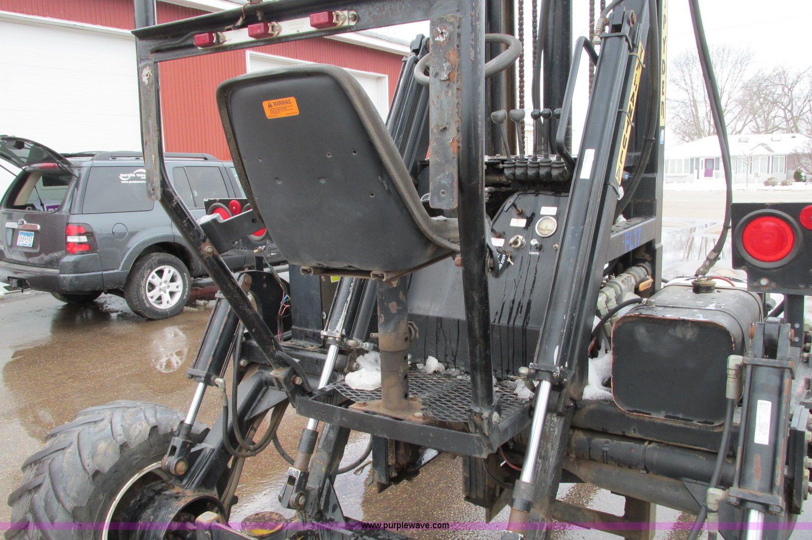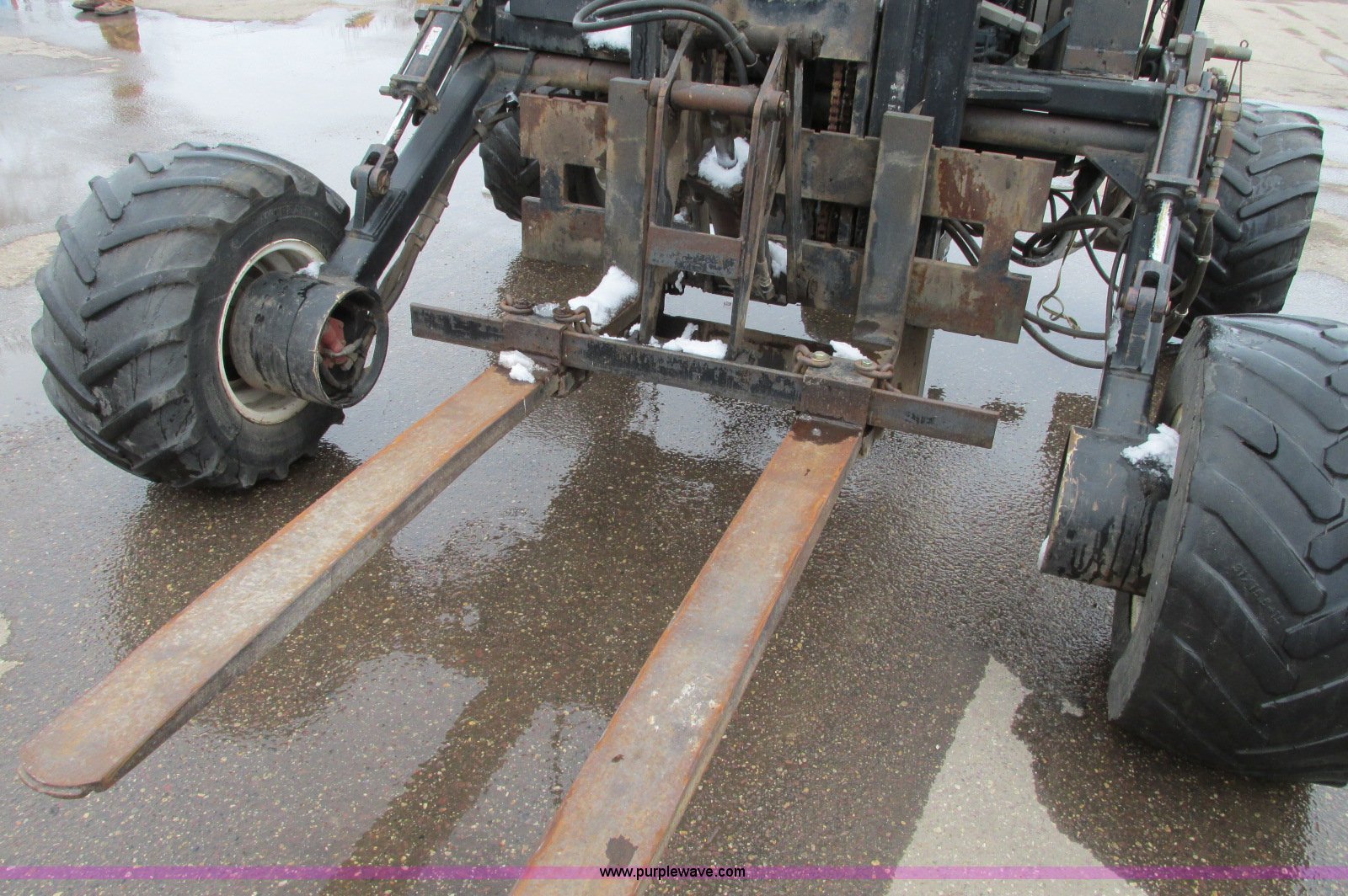 Purple Wave is selling a used Cushion Tire or Pneumatic Forklift in Minnesota. This item is a Spyder Tarantula 555KDC forklift with the following: 212 hours on meter, Kubota V2203-E diesel engine, Four wheel drive, ROPS, Work lights, Strobe light, Auxiliary lights, Straight mast, 176" maximum lift height, 5,500 lbs maximum lift capacity, Adjustable forks, 31 x 15.15NHS front tires, 18.5-8.5-8 rear tires, 7,200 lbs. base operating weight, Previously used with item E5049., Serial T332473