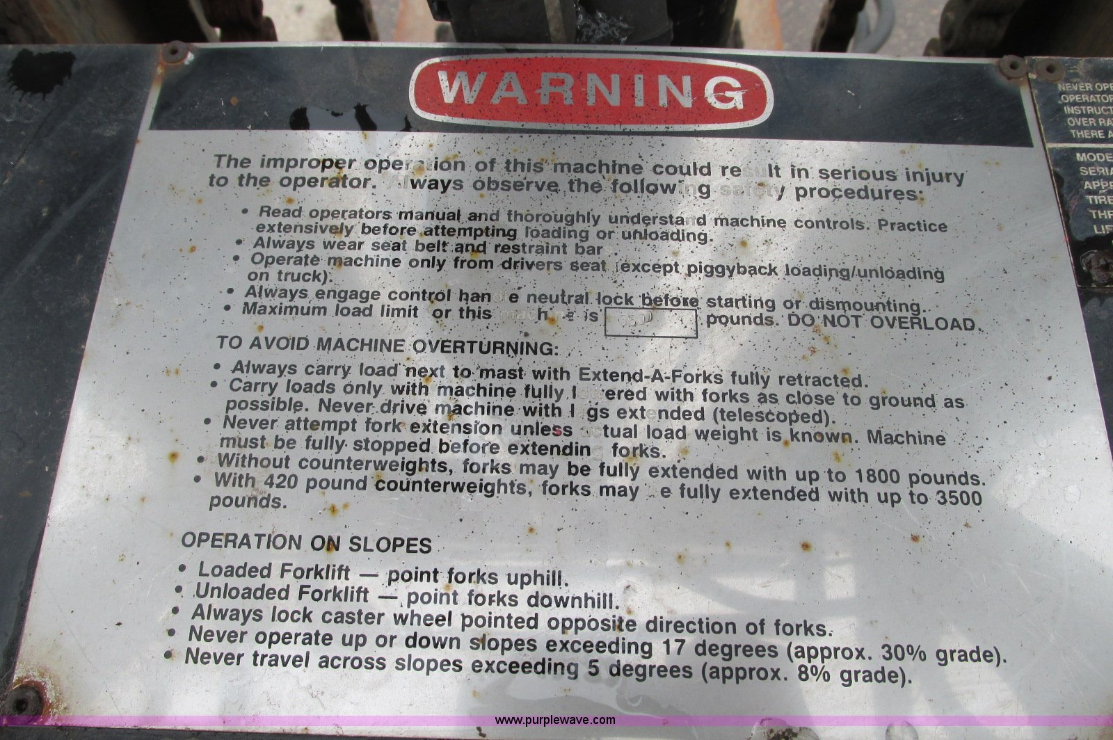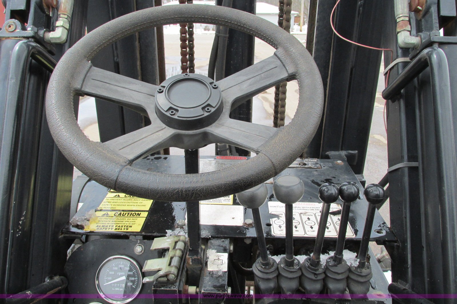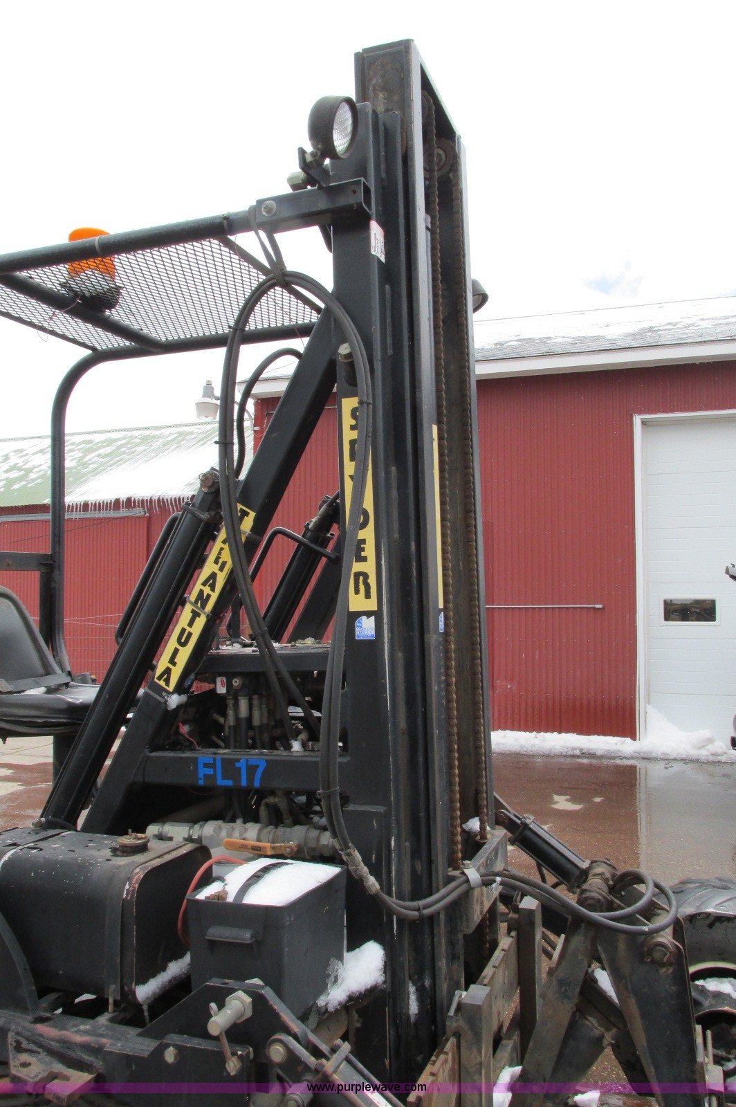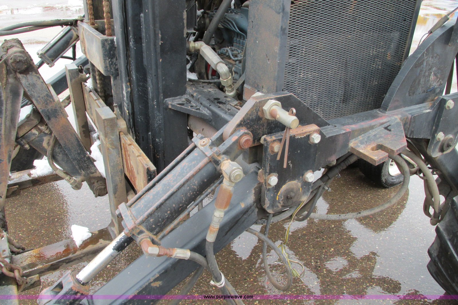Purple Wave is selling a used Cushion Tire or Pneumatic Forklift in Minnesota. This item is a Spyder Tarantula 555KDC forklift with the following: 212 hours on meter, Kubota V2203-E diesel engine, Four wheel drive, ROPS, Work lights, Strobe light, Auxiliary lights, Straight mast, 176" maximum lift height, 5,500 lbs maximum lift capacity, Adjustable forks, 31 x 15.15NHS front tires, 18.5-8.5-8 rear tires, 7,200 lbs. base operating weight, Previously used with item E5049., Serial T332473