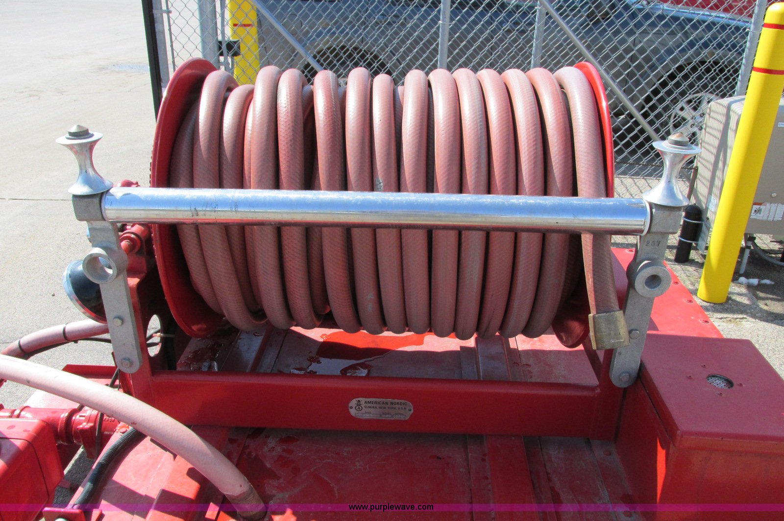 American Nordic H61 brush fire unit. Holiday water tank Approximately 250 gallon capacity, Hose reel 1.5" hose, Approximately 100'L, Nordic 2/3 HP 12V hose rewind motor Model A5BSX010, Serial E-82, 3" hose connections, Pressure gauge, Primary pump motor Model 252415, Type D146-01, Code 79091311, Side tool storage Velcro cover, Serial 1358. Shipping quotes available. DCI Environmental Inc.. 7217 W 128th Street. Savage, MN 55378