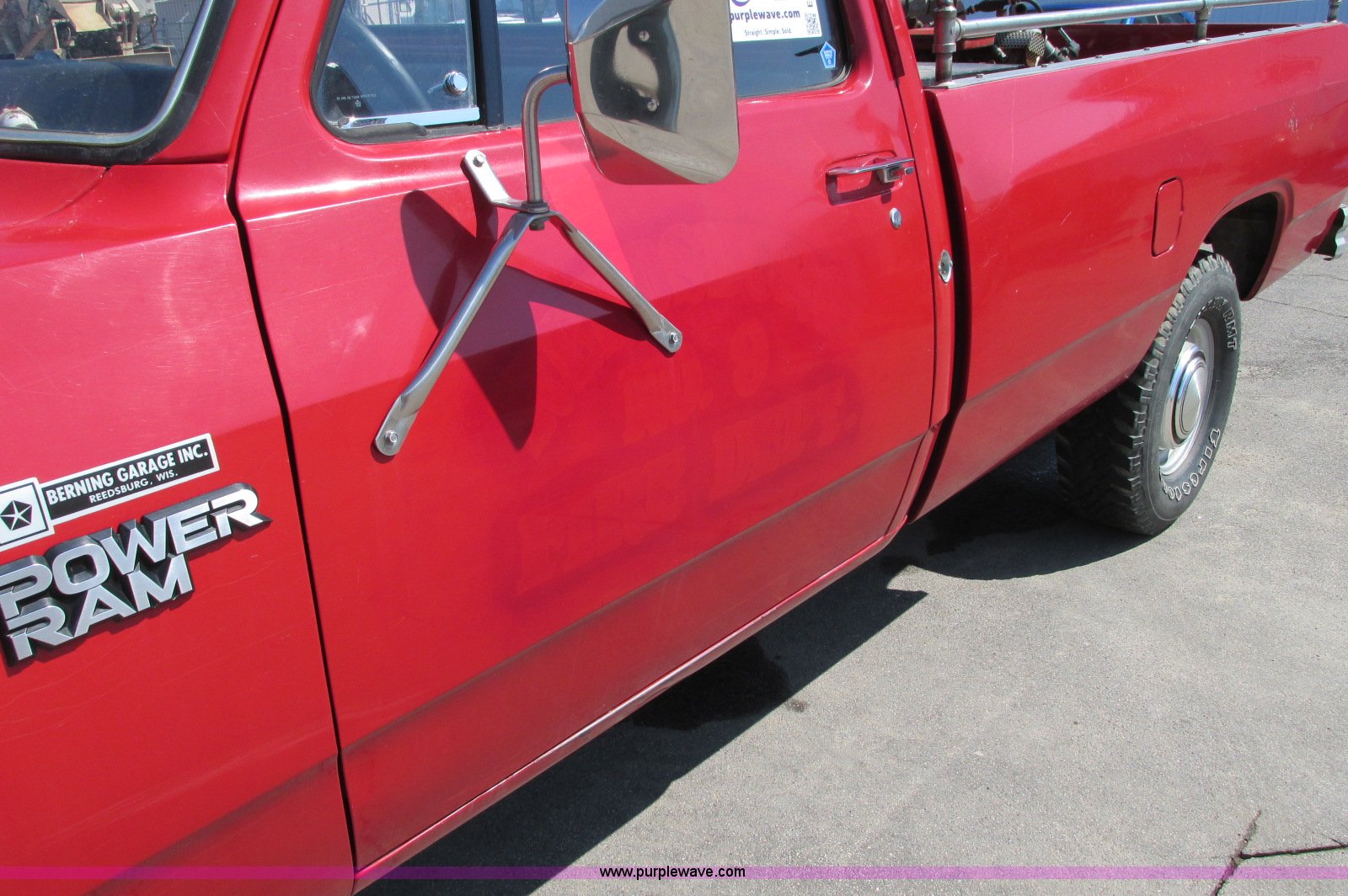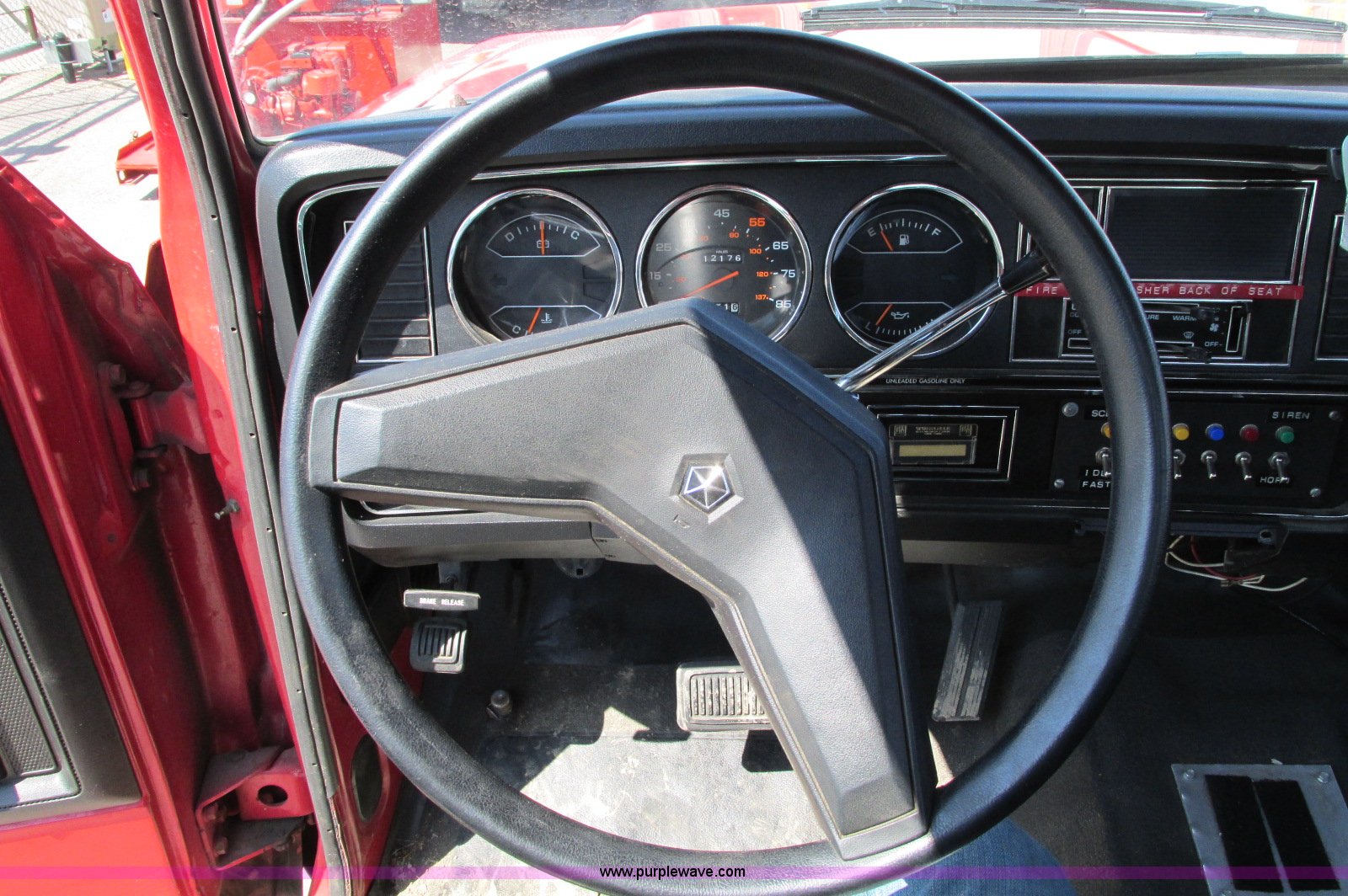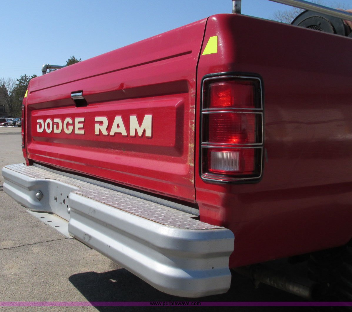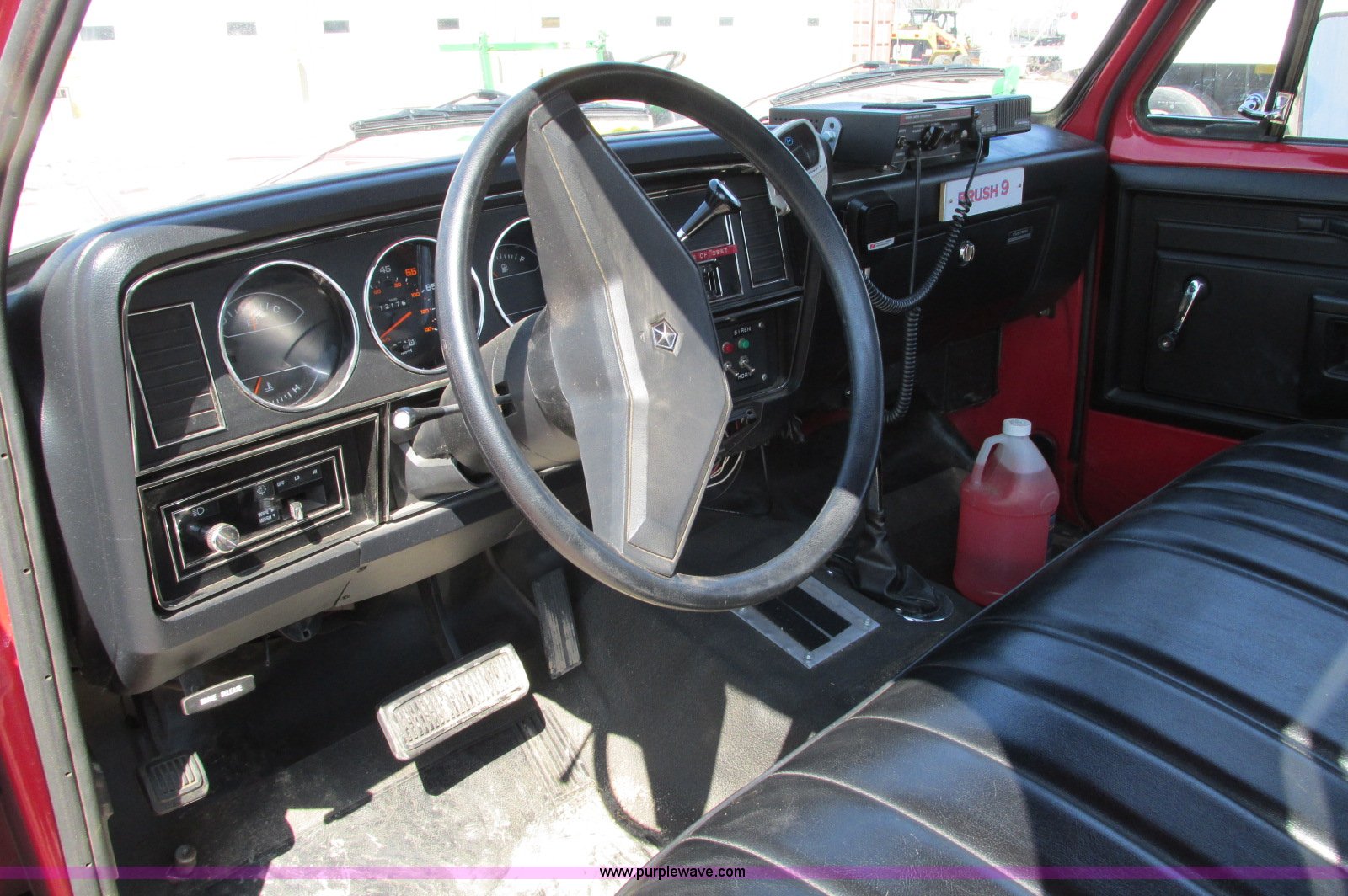 Purple Wave is selling a used Passenger Vehicle in Minnesota. This item is a 1983 Dodge Power Ram 250 Custom pickup truck with the following: 12,176 actual miles, 5.2L V8 OHV 16V gas engine, Automatic transmission, Four wheel drive, Heat, Manual windows and locks, Vinyl interior, Federal Signal Corperation PA300 radio, Motorola Max Trac radio, In cab light and siren controls, Code 3 strobe light bar, Brush fire unit, Hannay hose reel, Model EF32-19-21RT, Serial 723685, 1.5" hose, Approximately 100'L, WS Darley 18 HP IC reel motor, WS DArley 1.5 AGE pump, Serial 25773, PSI gauge, 2" intake valve, Dual output valves, 1.25" and 1.75", Approximately 200 gallon tank, Front tow hooks, Long bed, LT265/75R16 M/S tires, Hood release broken, Body scratched, Pump motor unknown operating condition, No fuel tank for brush fire unit