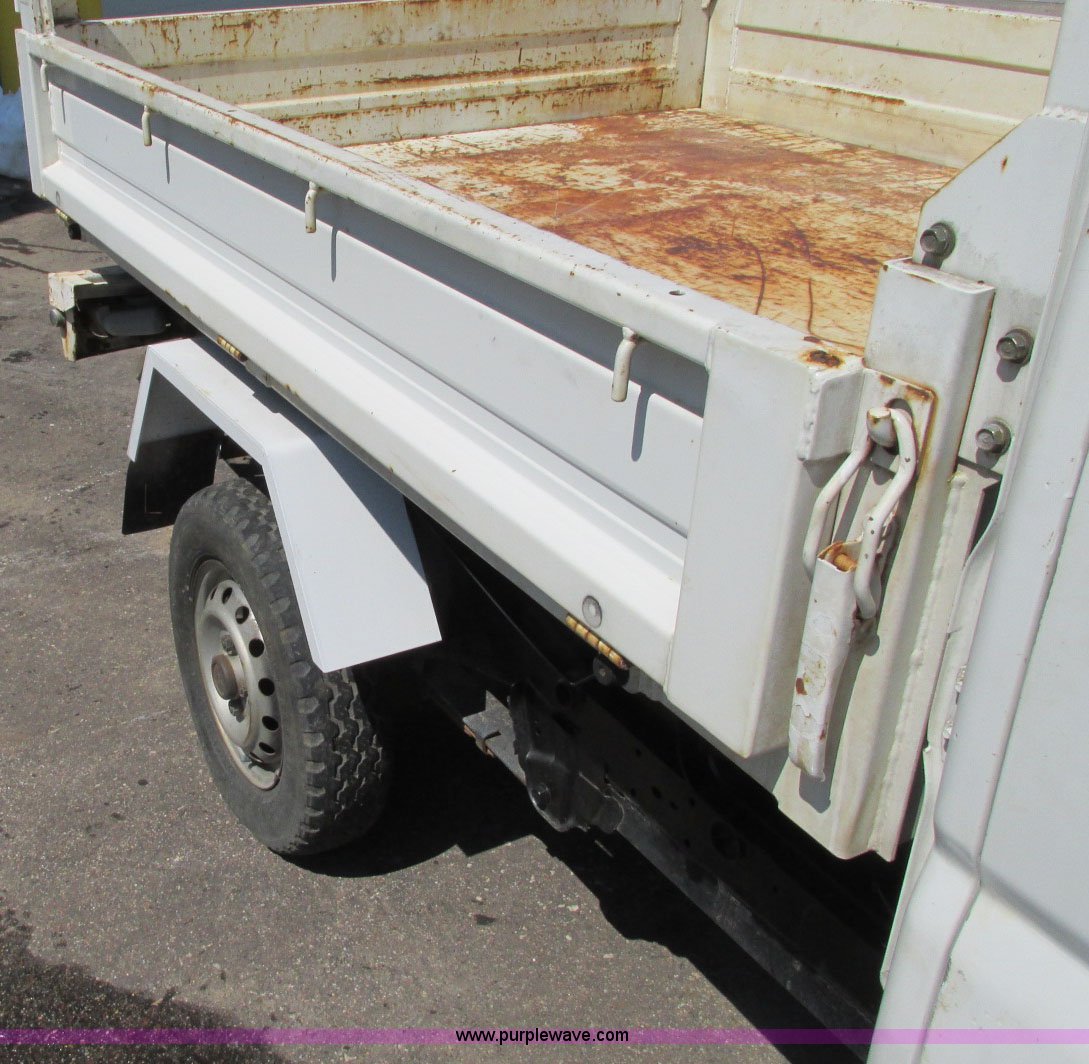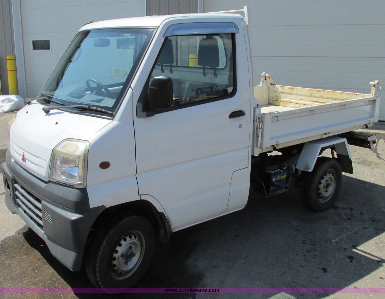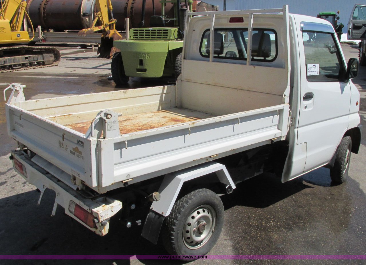 Purple Wave is selling a used Utility Vehicle in Minnesota. This item is a 1999 Mitsubishi minicab truck with dump bed with the following: 30,507 kilometers on odometer, Model GD-U62TYNSA1, Fuel injected, Five speed manual transmission, Hi-Lo, Four wheel drive, Heat, Manual windows and locks, 72"L x 57"W hydraulic dump box, 10" fold down sides, Headache rack, Head and taillights, 145R12LT06PR tires, Chassis No. U62T-0002324