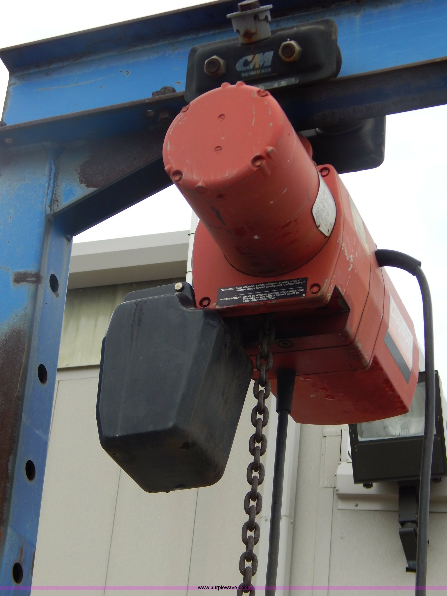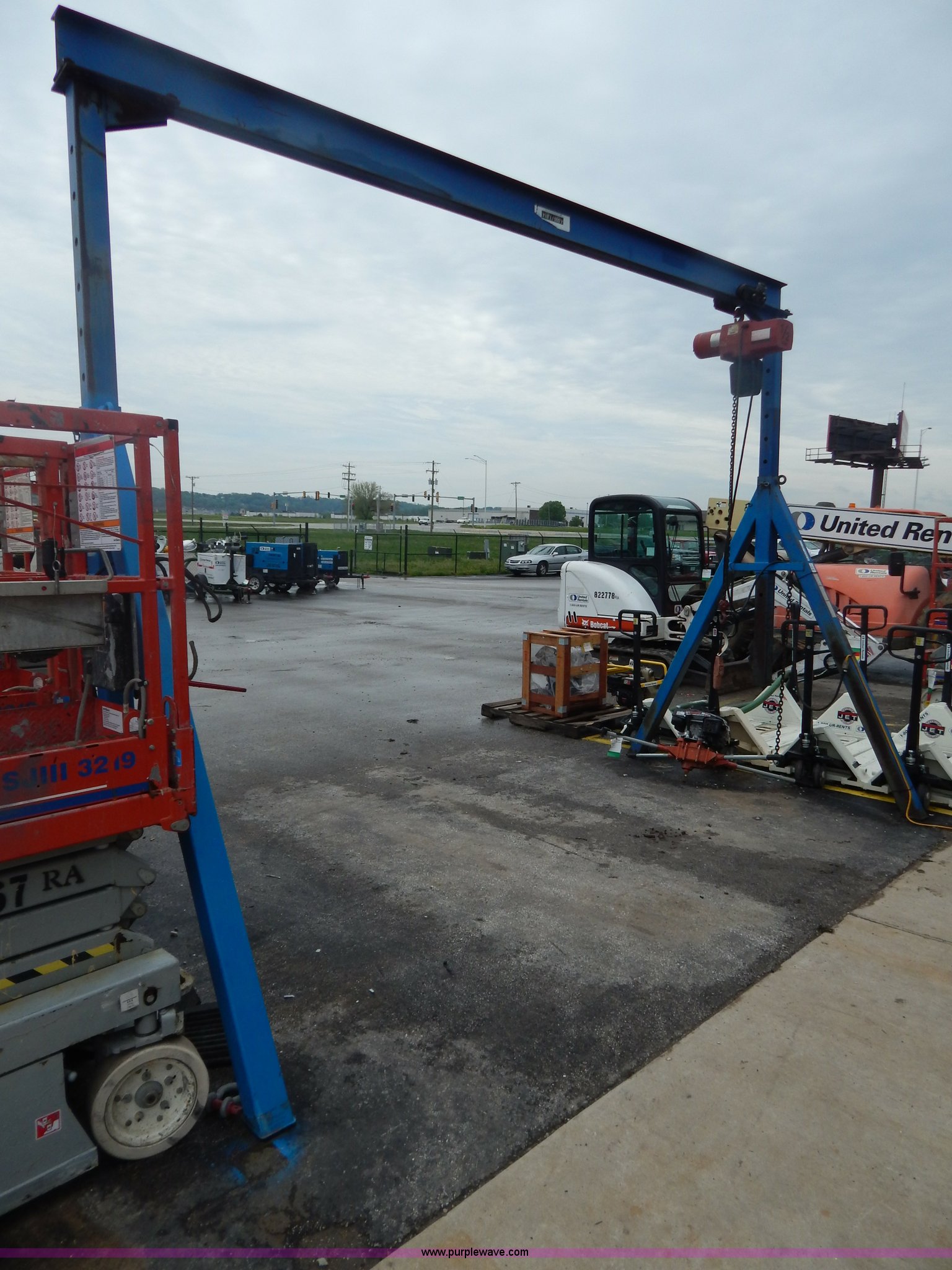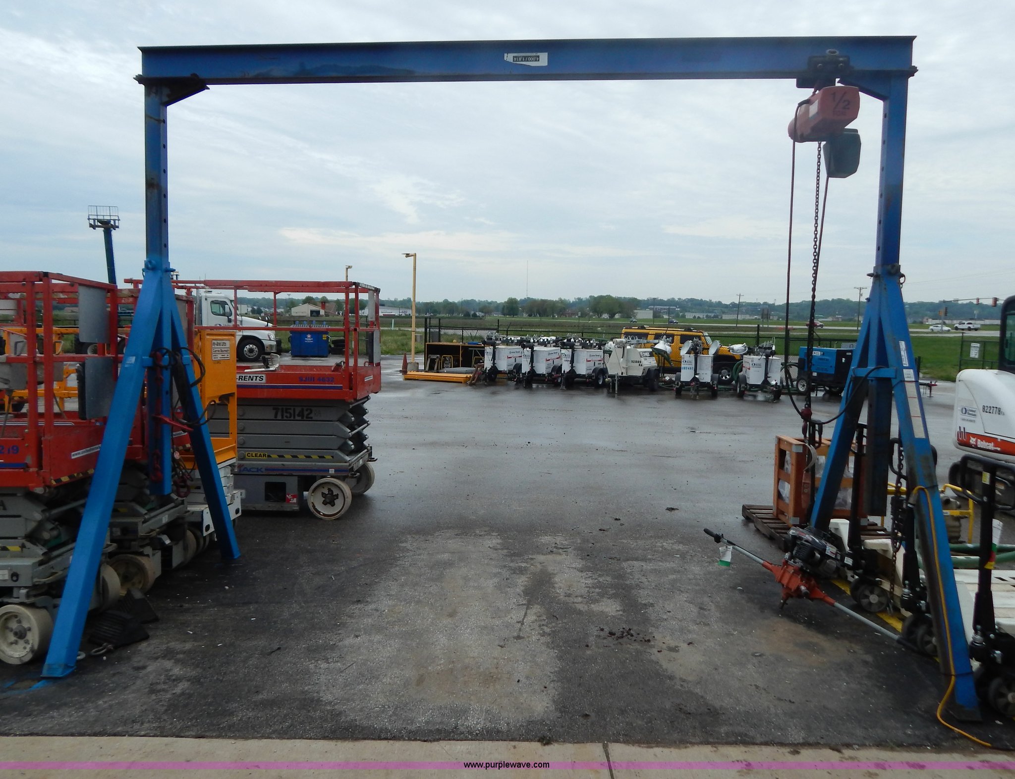 Purple Wave is selling a used Tools in Illinois. This item is a Gentry crane with the following: 4,000 lb capacity, Adjustable height, 1/2 ton, 120V chain hoist, Chains and boomers not included